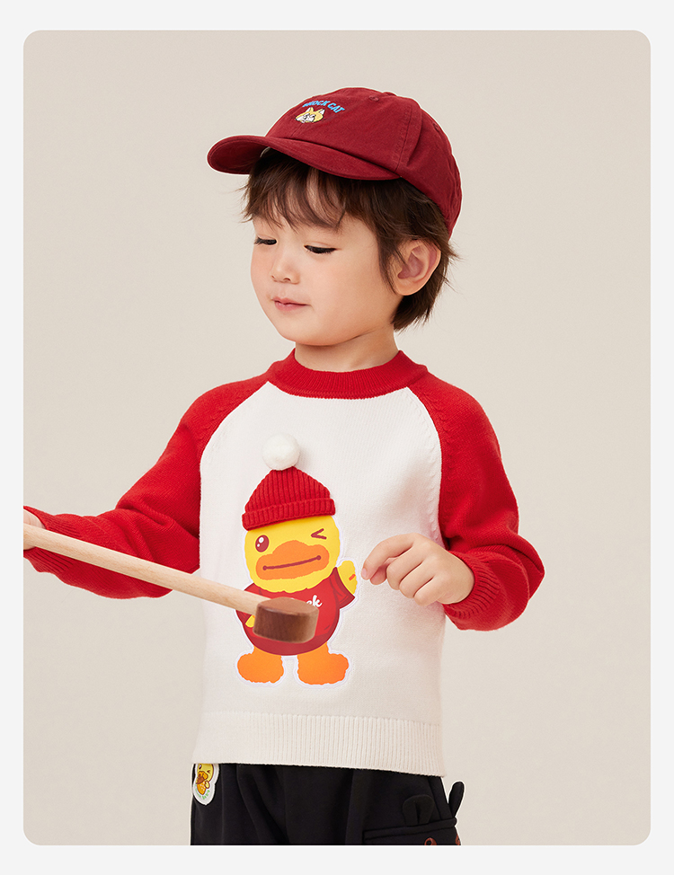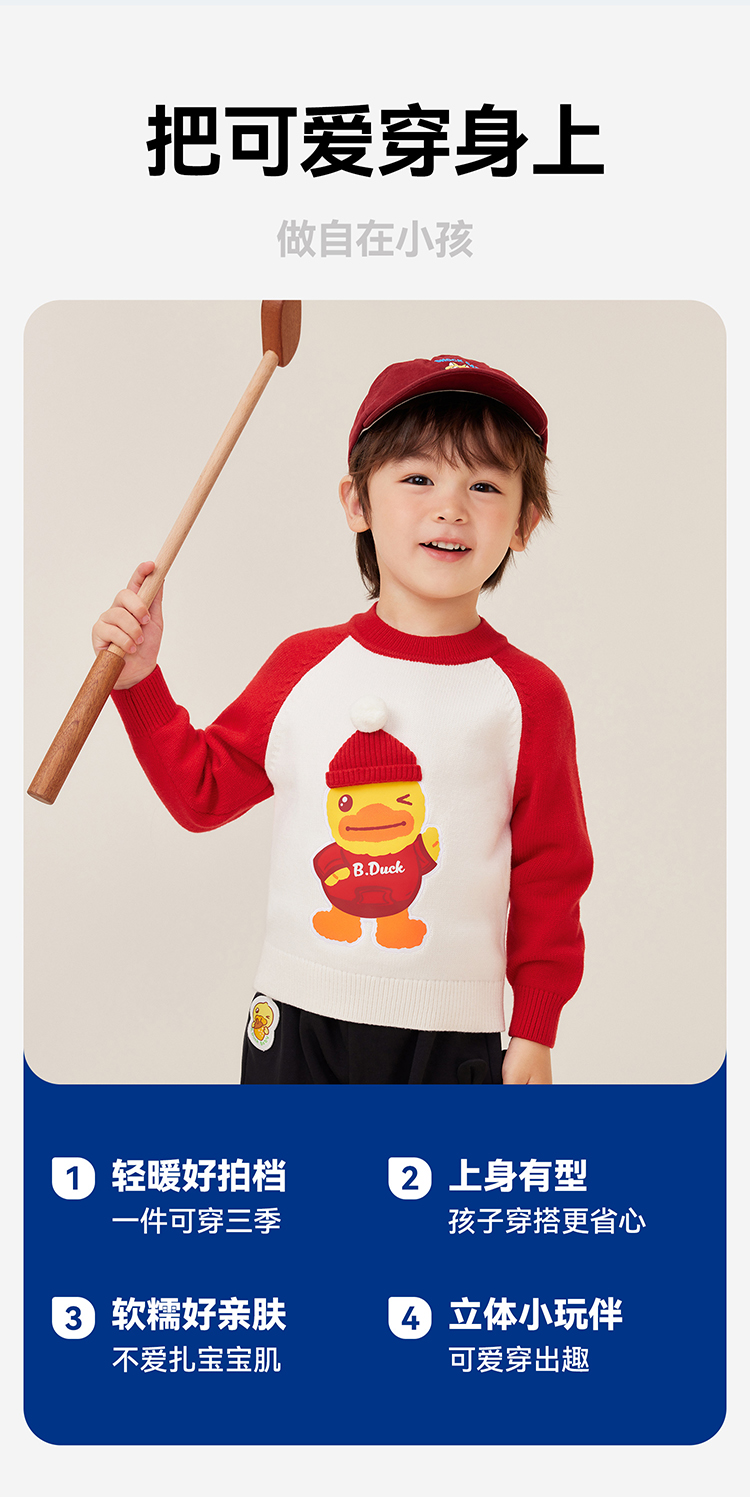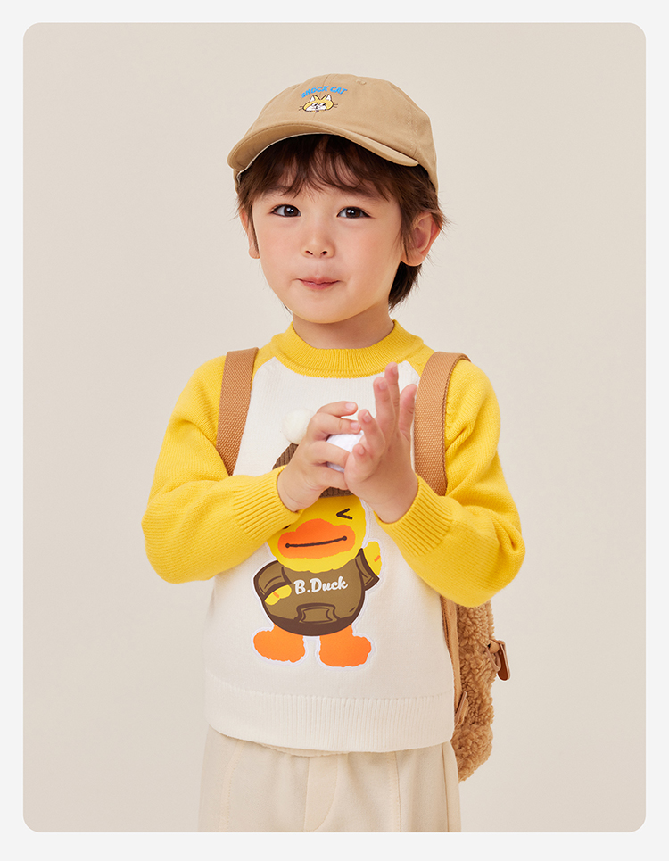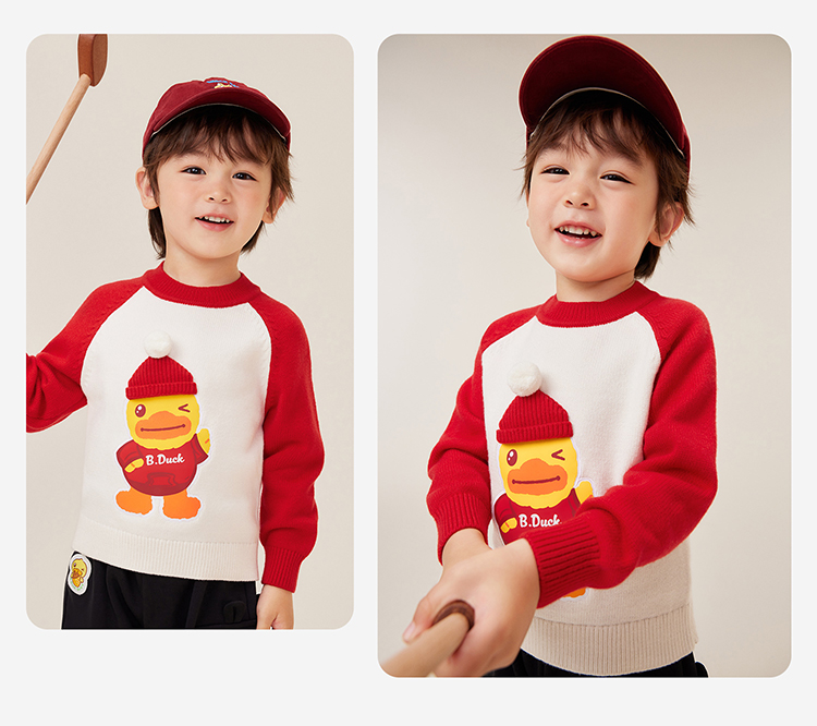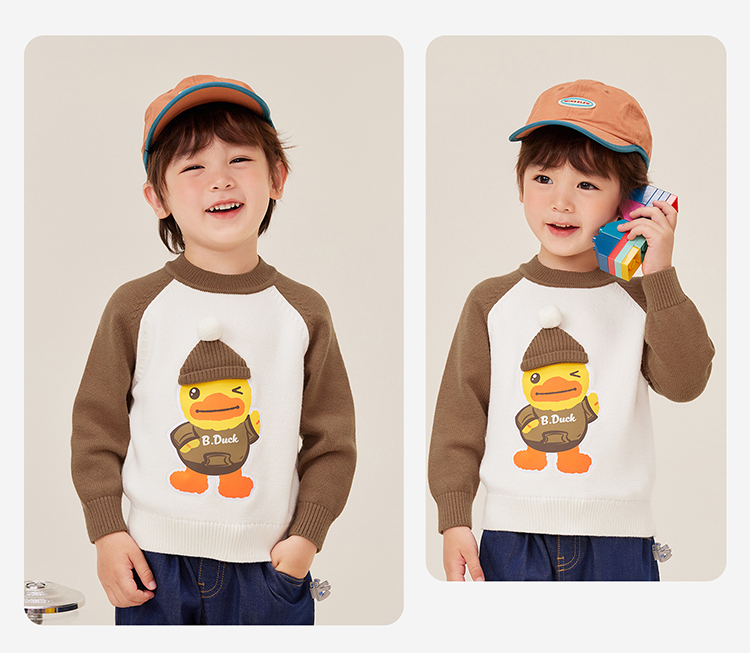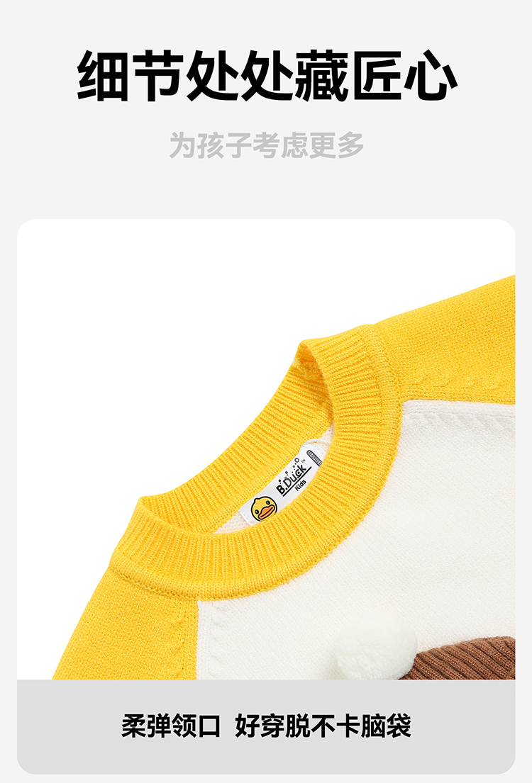 B.Duck小黄鸭童装冬季男童卡通圆领套头针织衫冬季男童休闲105-150 BF5512926
