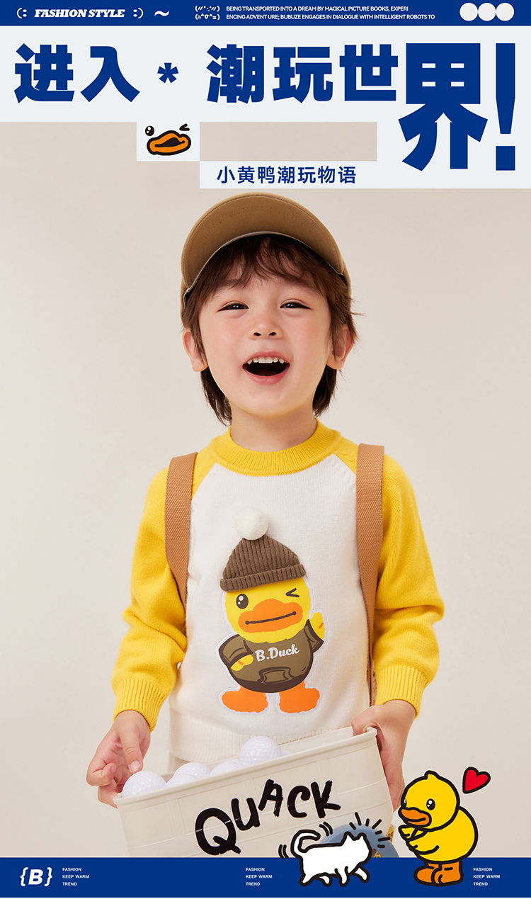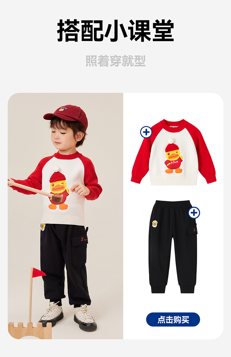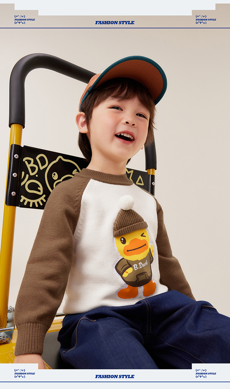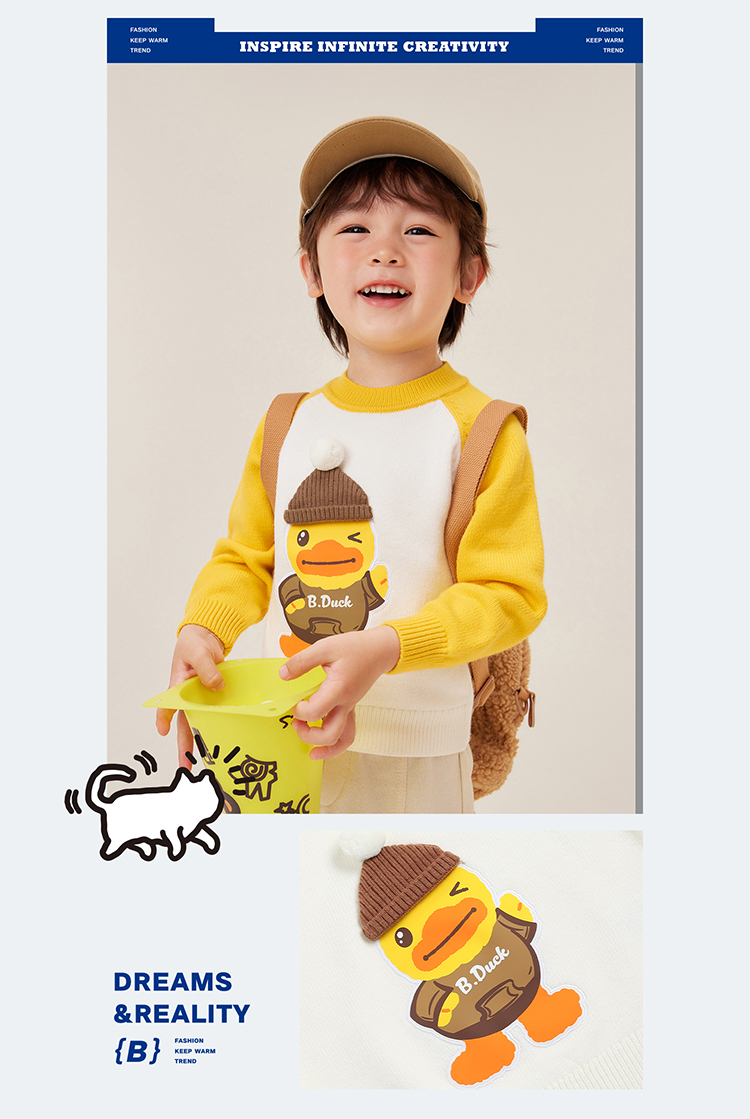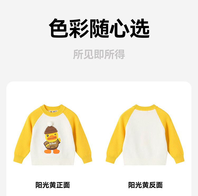 B.Duck小黄鸭童装冬季男童卡通圆领套头针织衫冬季男童休闲105-150 BF5512926