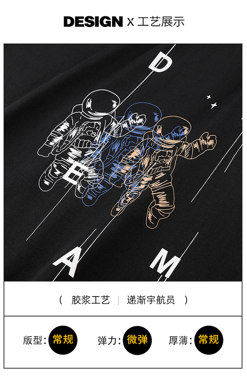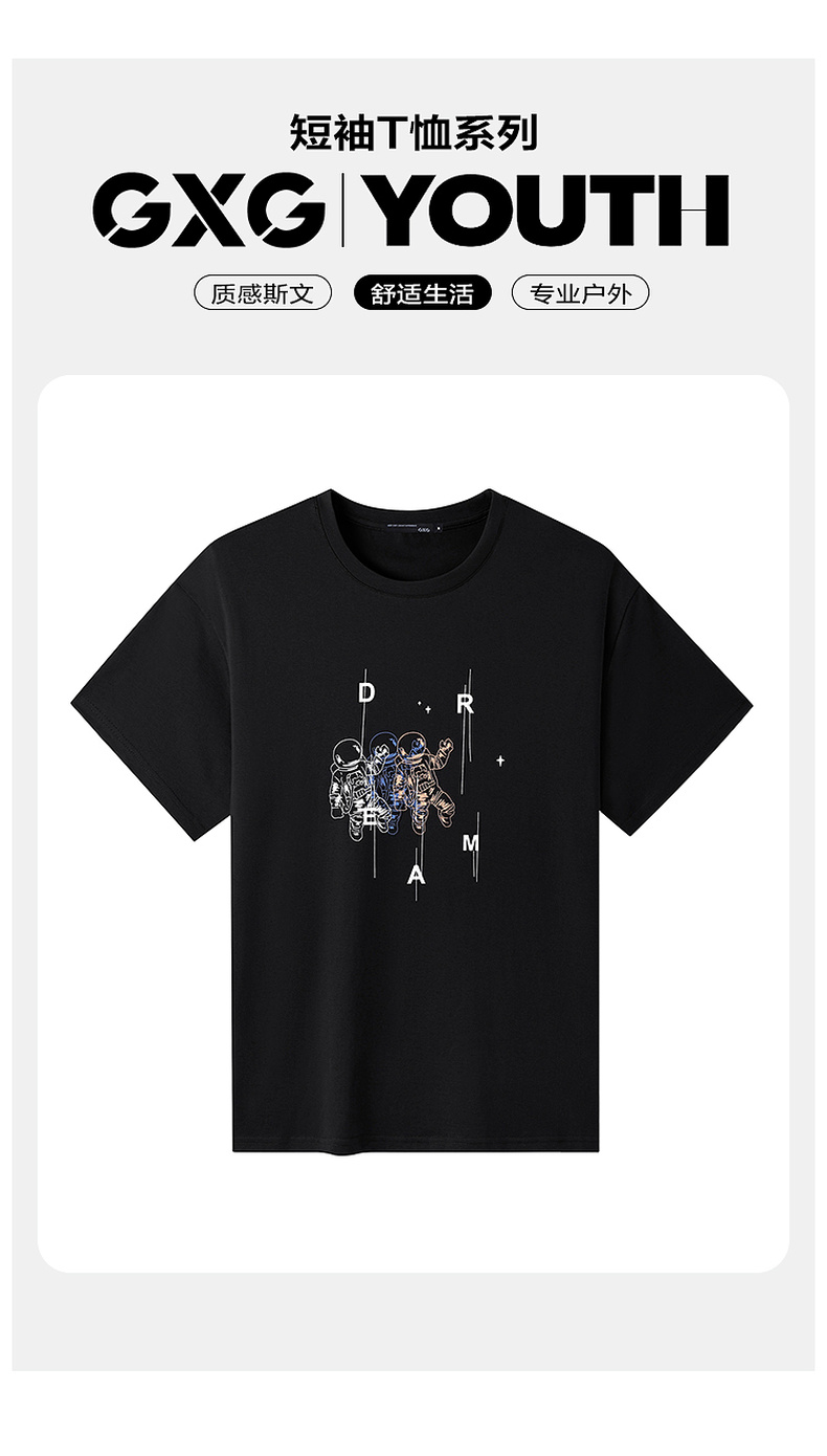 GXG男装【三色宇航员】夏季时尚潮流印花男款纯棉圆领短袖t恤K&C