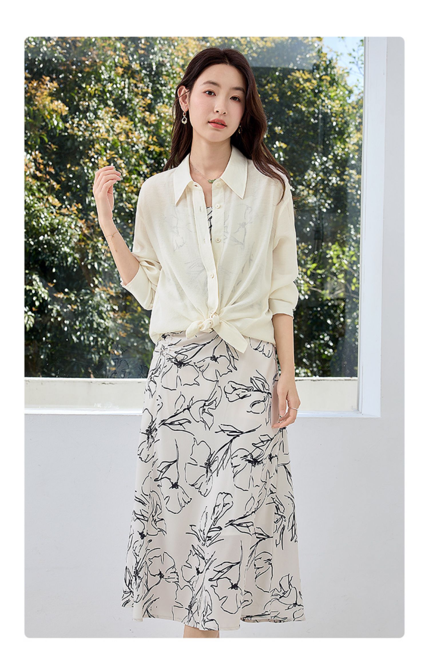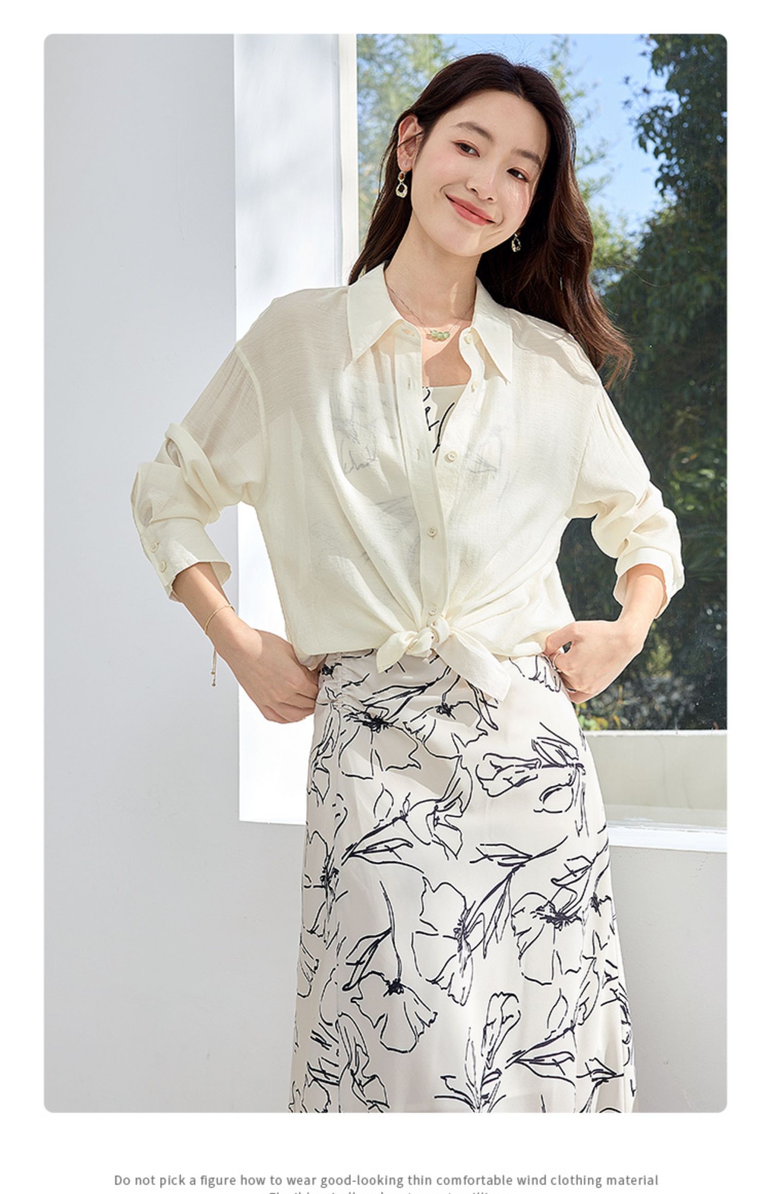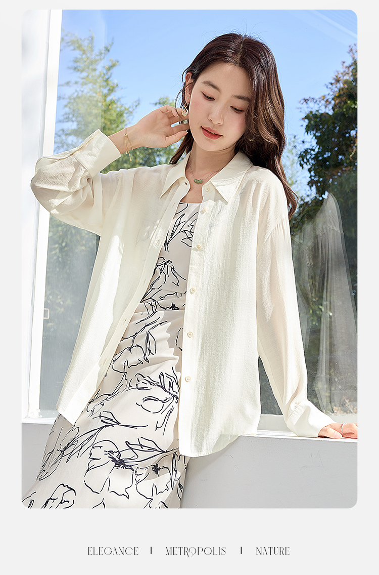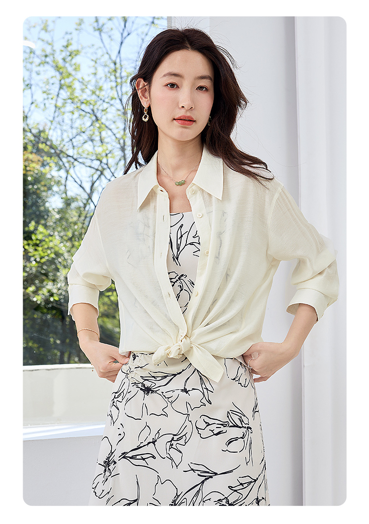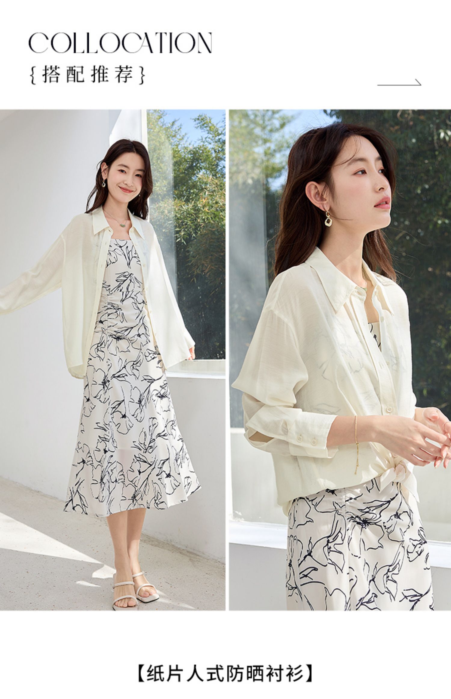 【专属特价】熙世界防晒衣薄纱外穿女夏季2025新款垂感薄透宽松落肩长袖衬衣