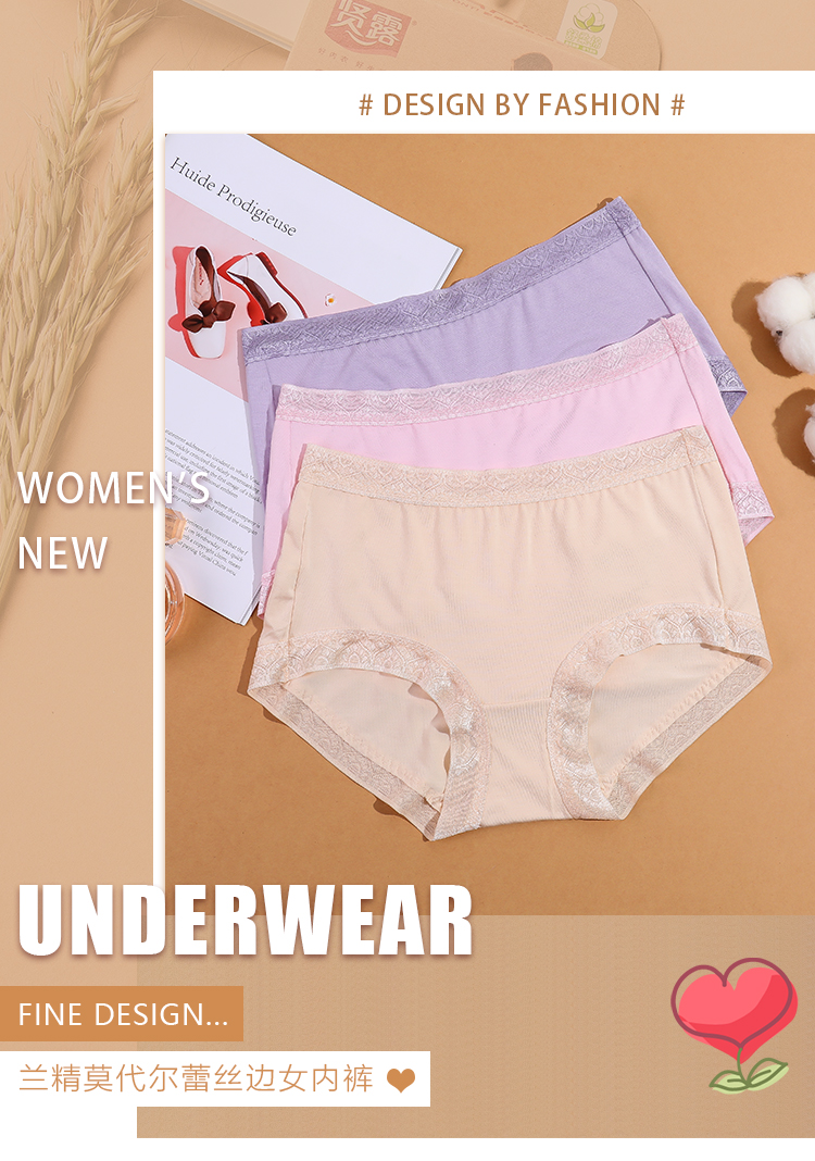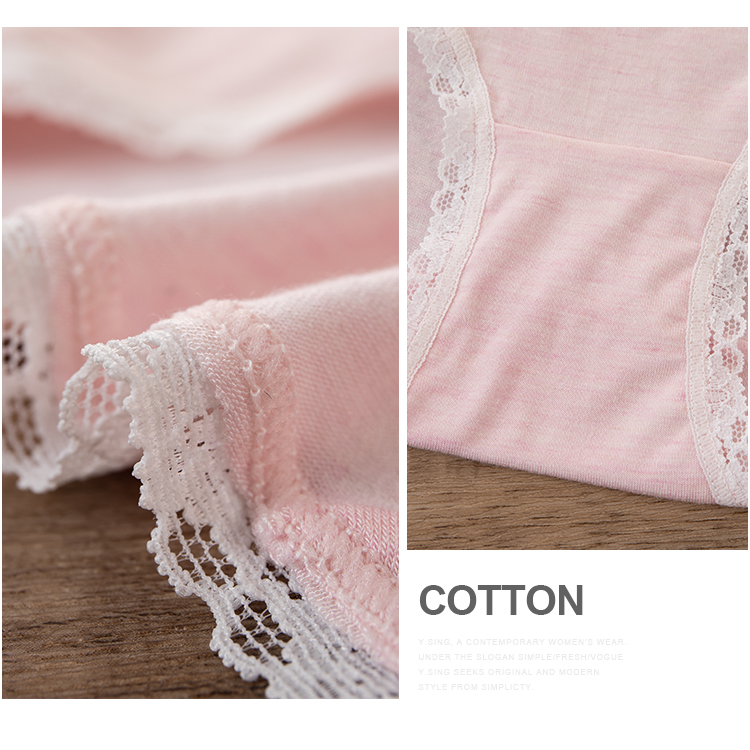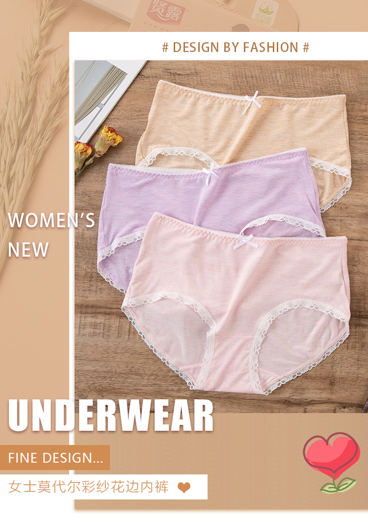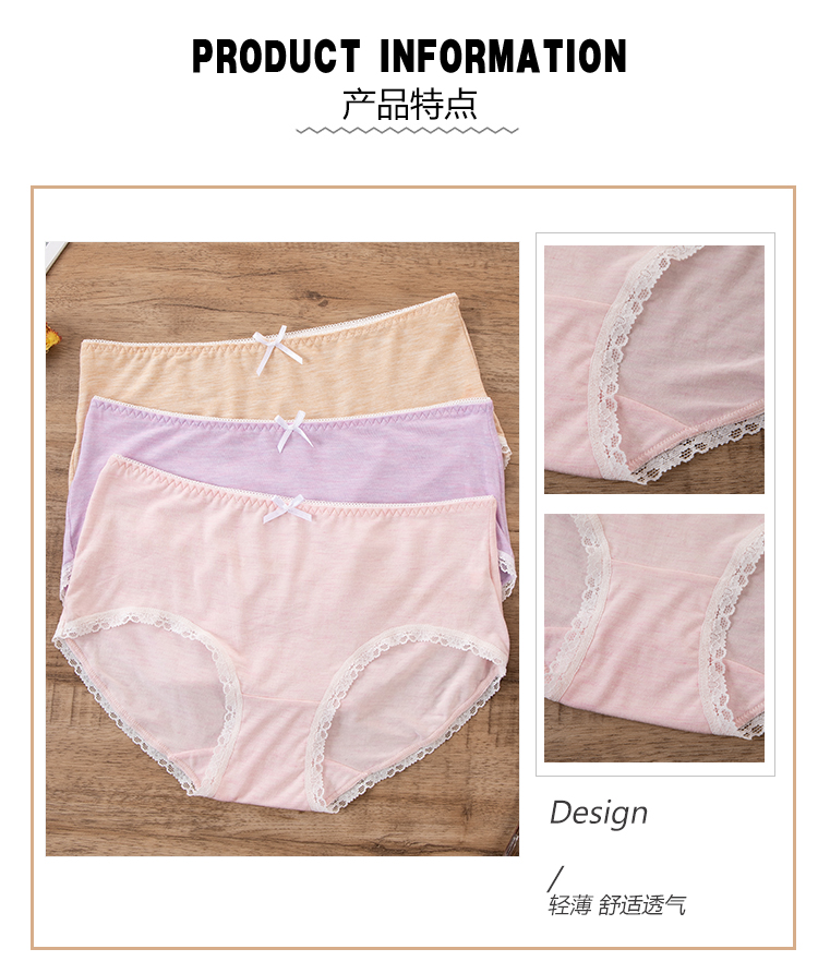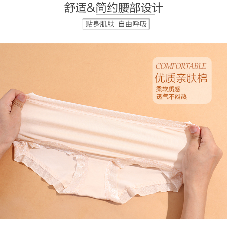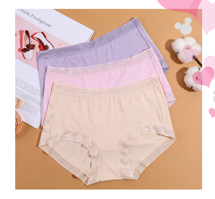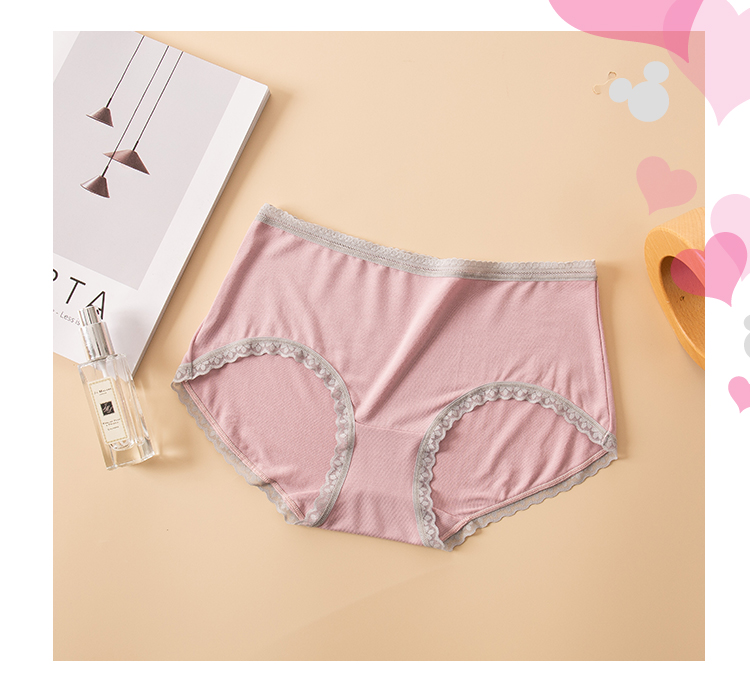 【两条盒装】女士兰精莫代尔蕾丝边净色撞色经典彩纱内裤2877/2873/2890