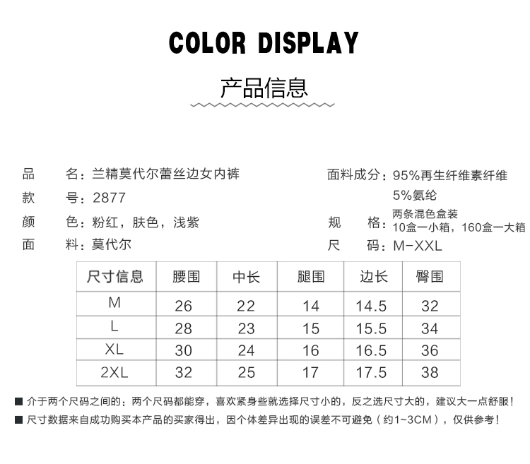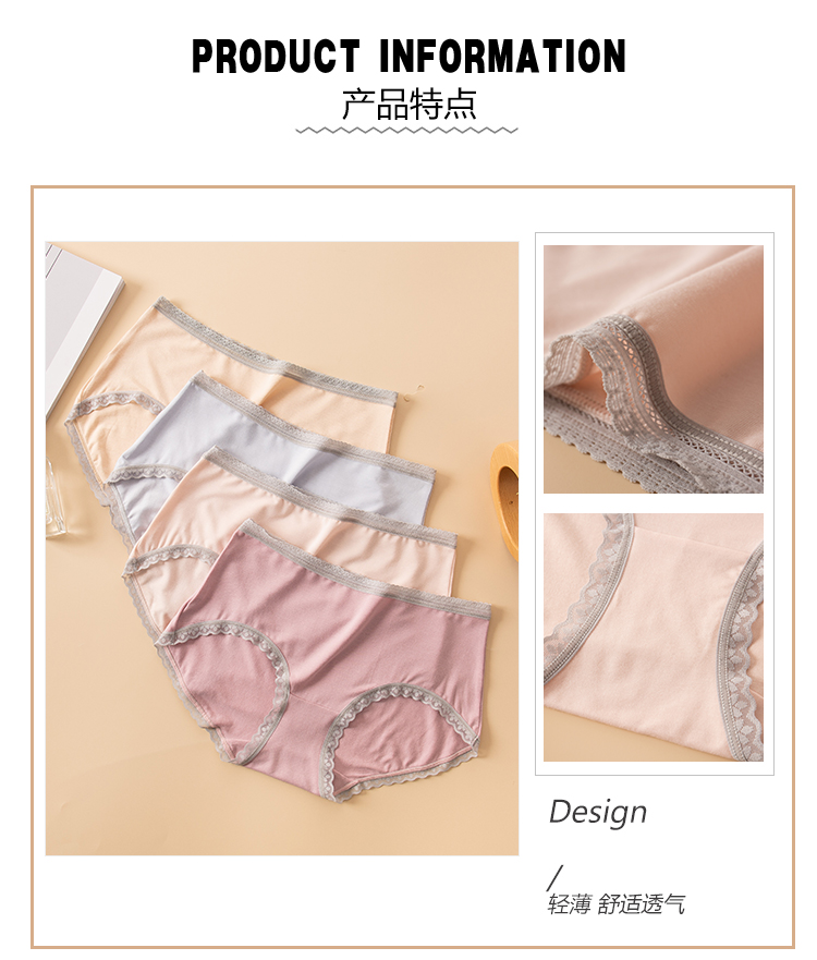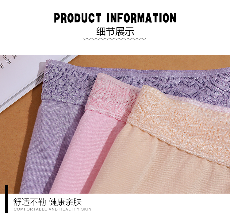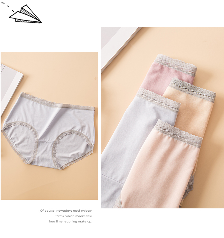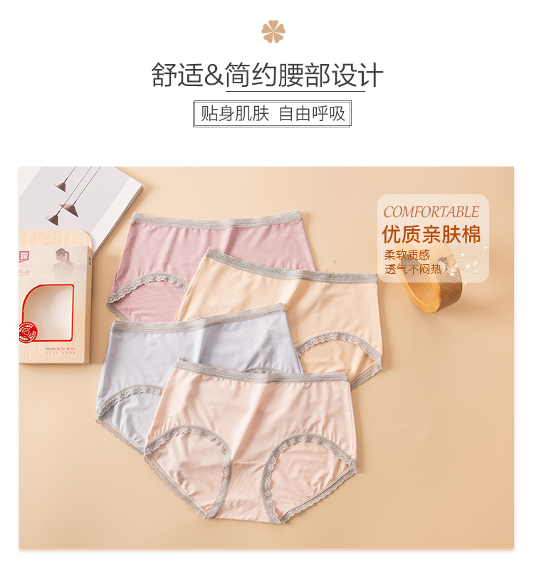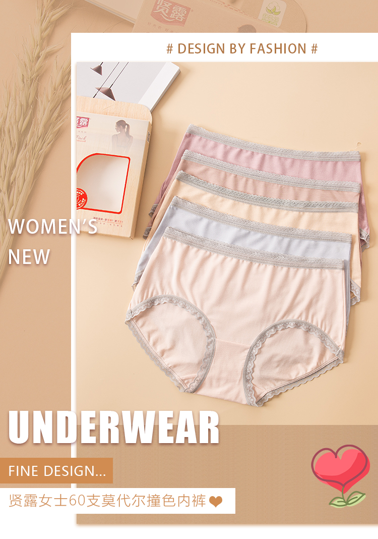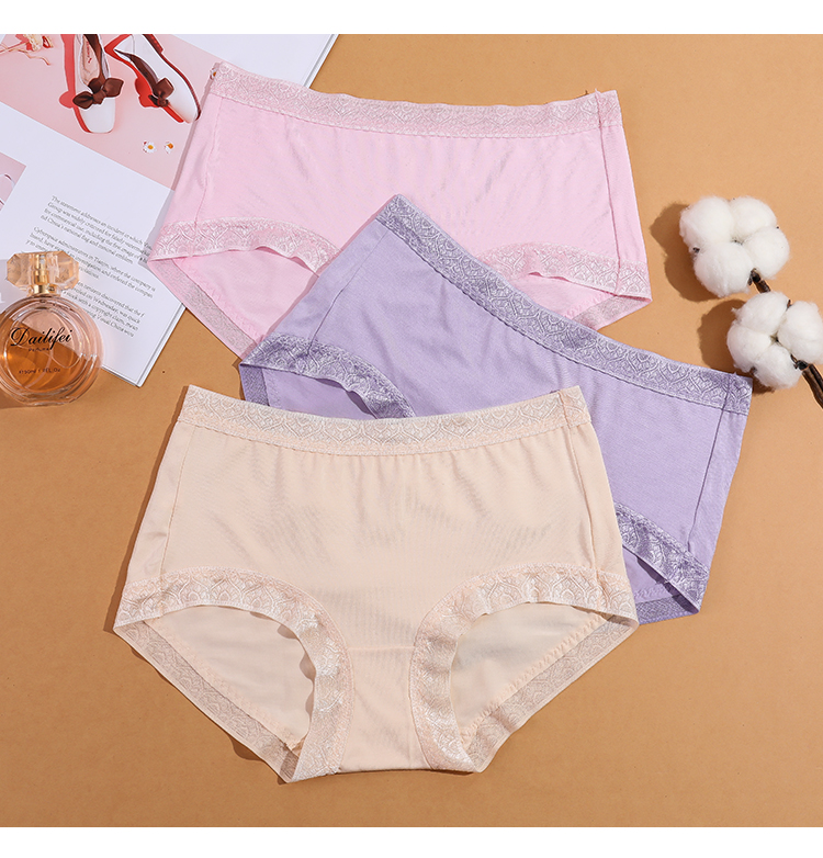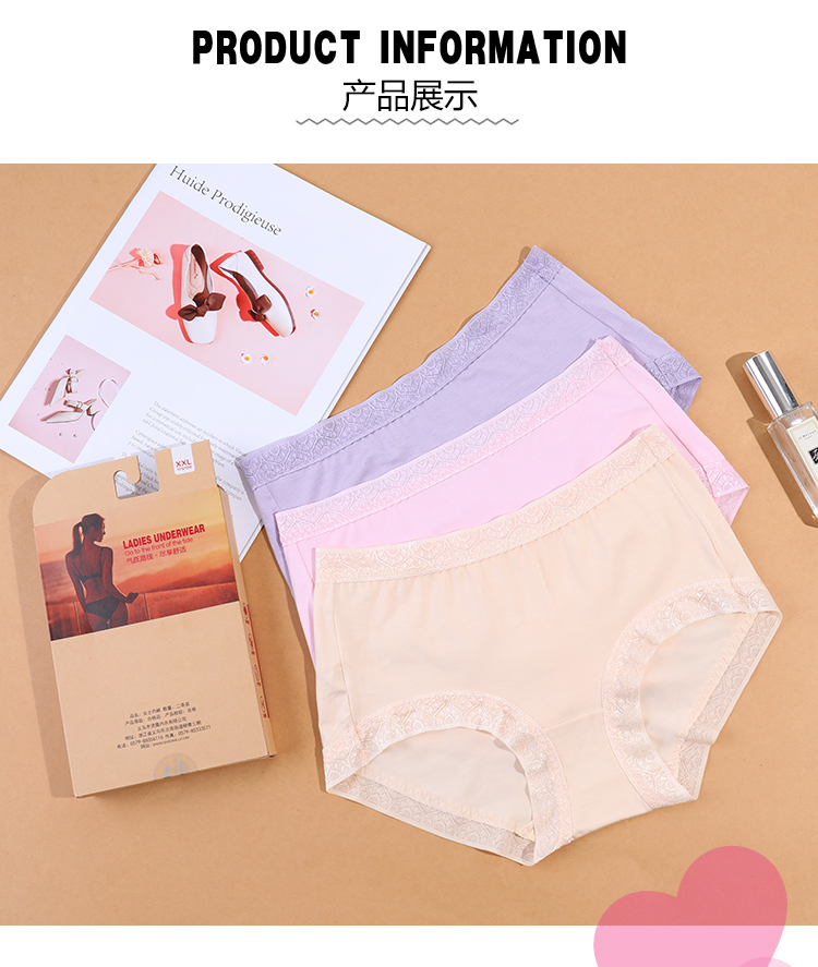 【两条盒装】女士兰精莫代尔蕾丝边净色撞色经典彩纱内裤2877/2873/2890