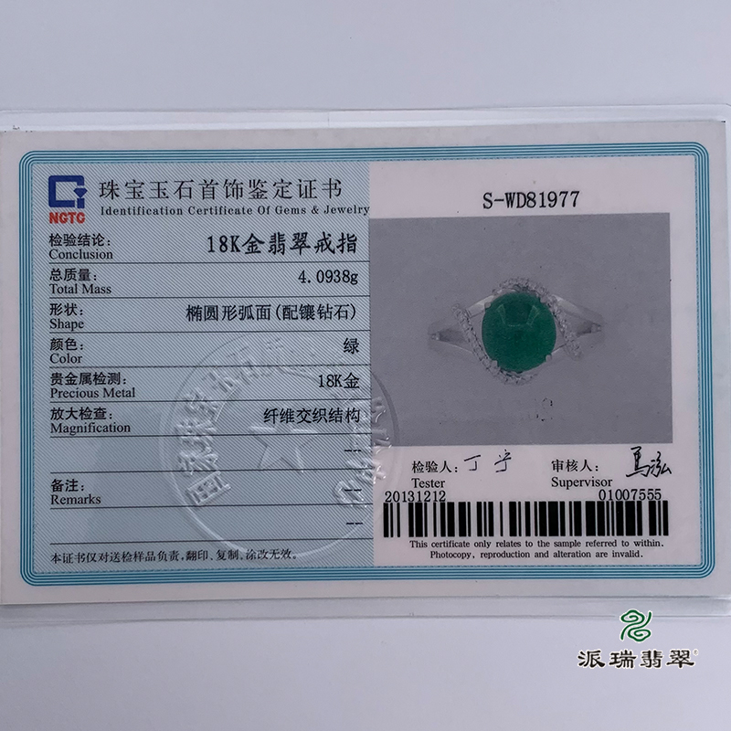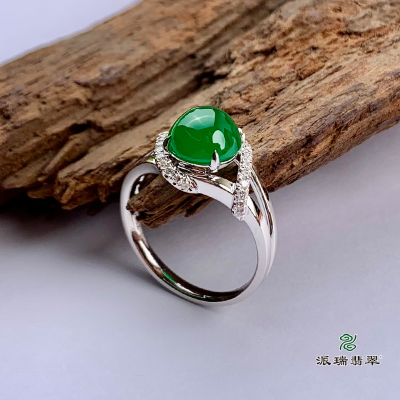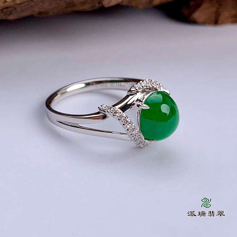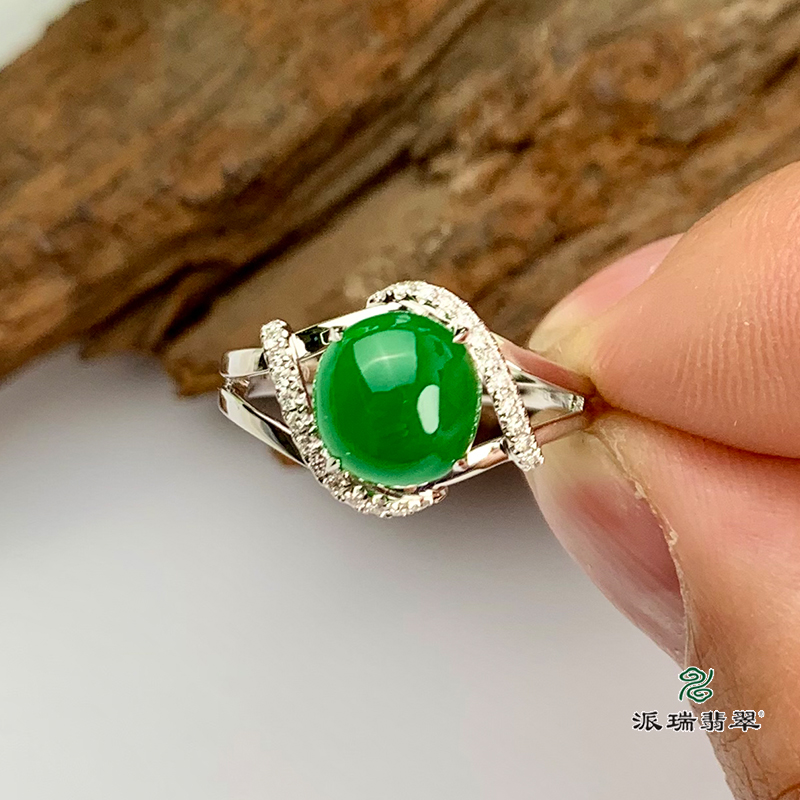 派瑞翡翠 18k金翡翠戒指 冰种 无色