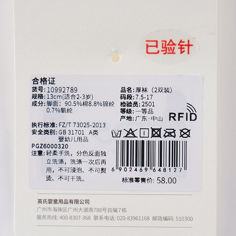 英氏-鞋袜类(冬)C9英针厚袜(2双装)花灰
