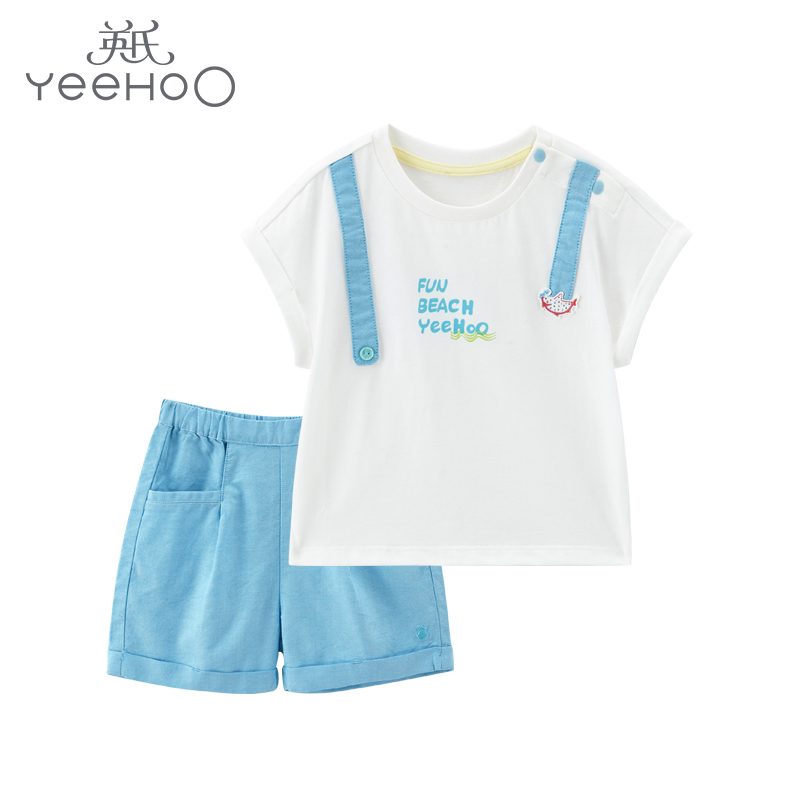 英氏-童衣类(夏)E1外着英针衣裤套白73CM
