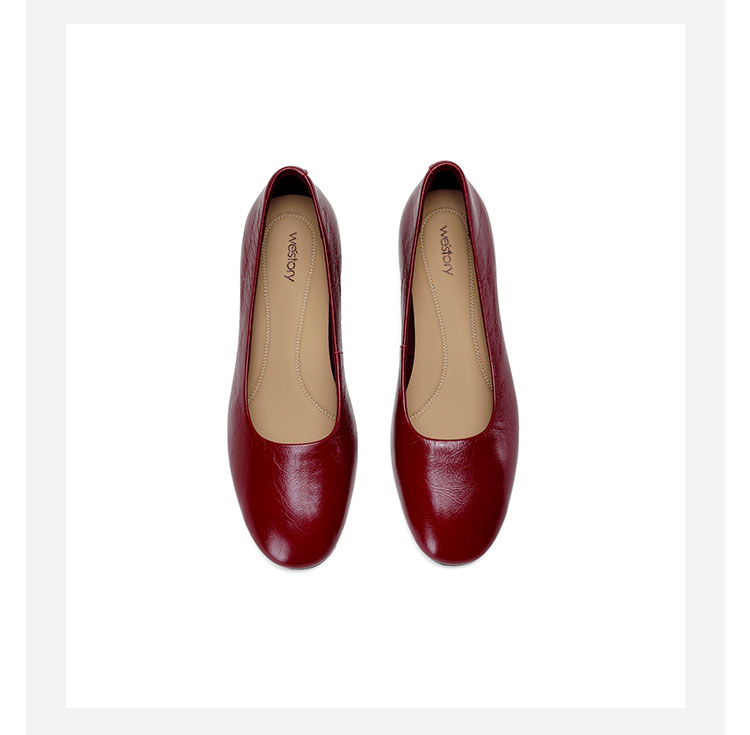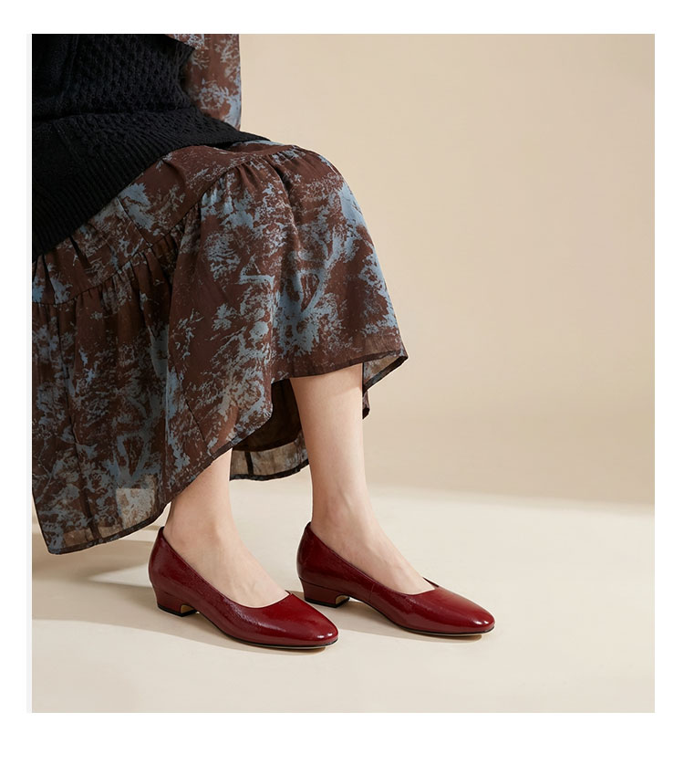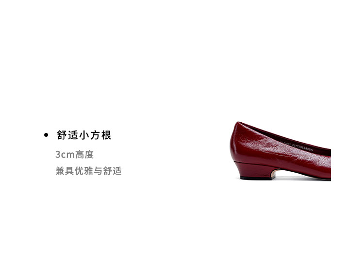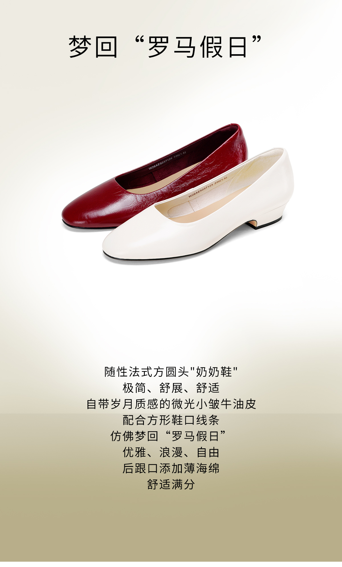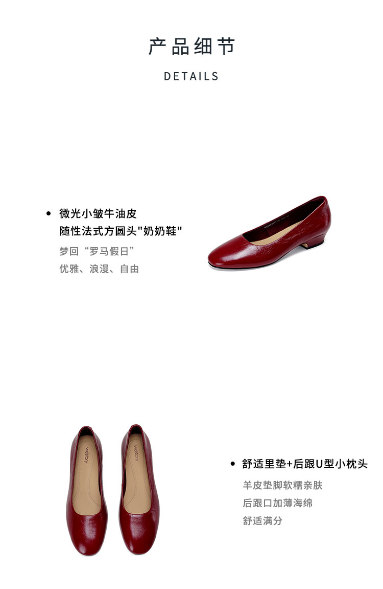 Westory2026年春季方圆头低跟牛油皮奶奶鞋百搭通勤浅口鞋W26AE50371