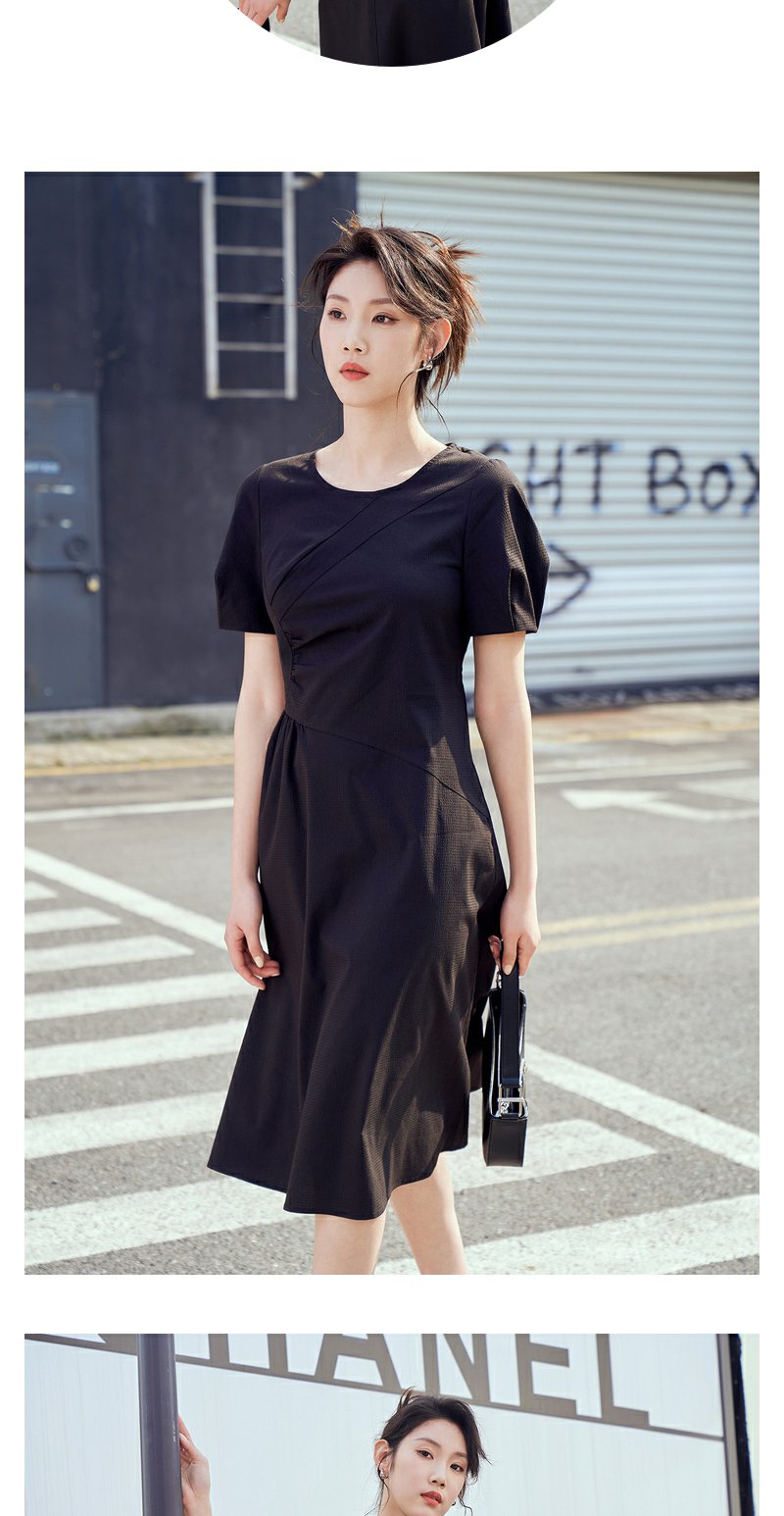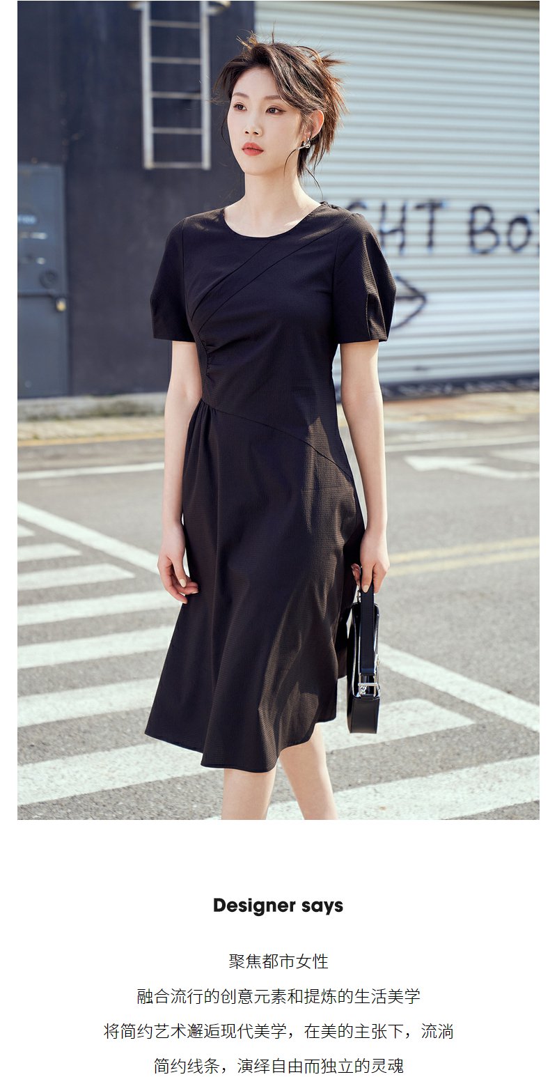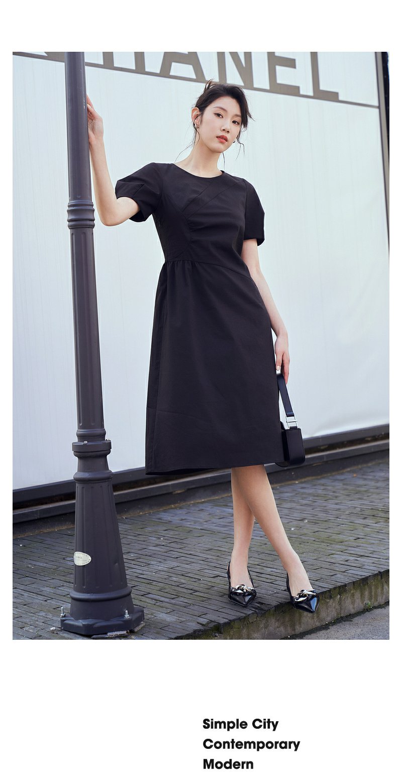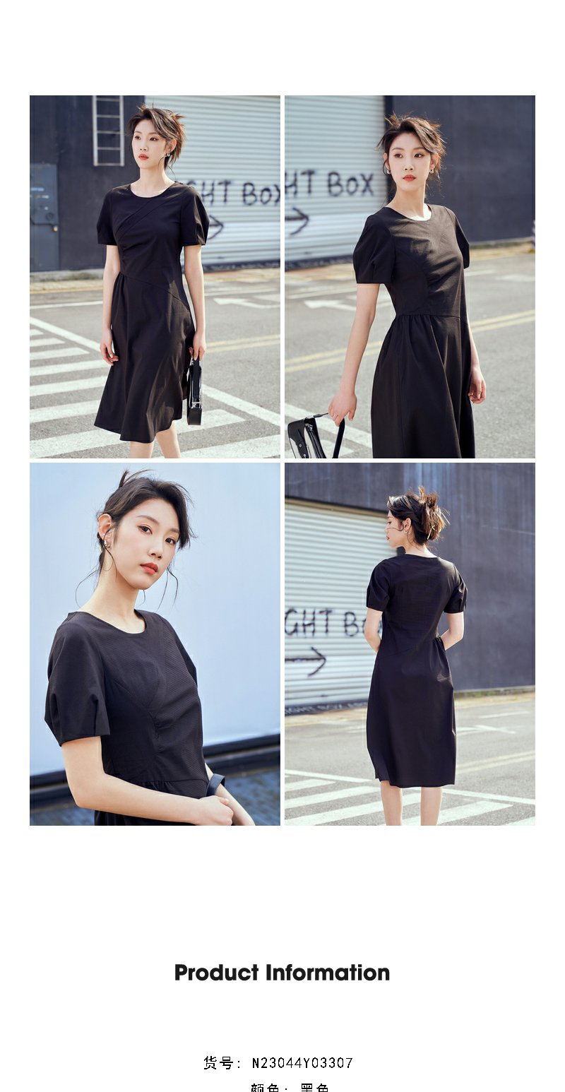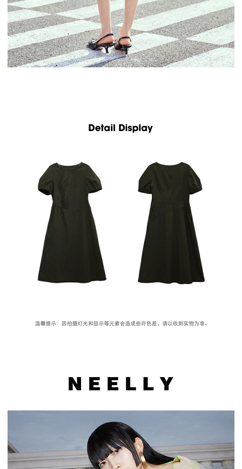 NEELLY纳俪商场同款复古泡泡袖连衣裙女收腰夏季新款中长款收腰裙N23044Y03307