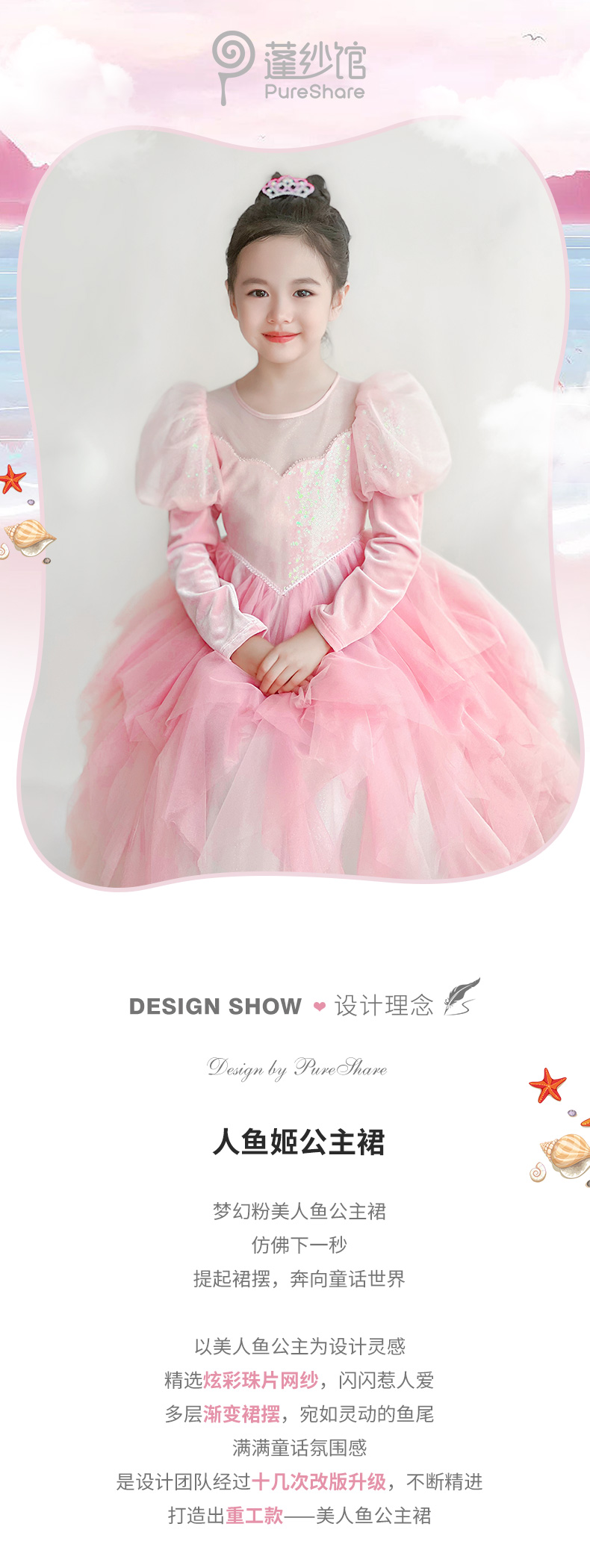【云优选】pureshare蓬纱馆 女童连衣裙蓬蓬公主裙演出气质时装周走秀款——人鱼姬公主裙