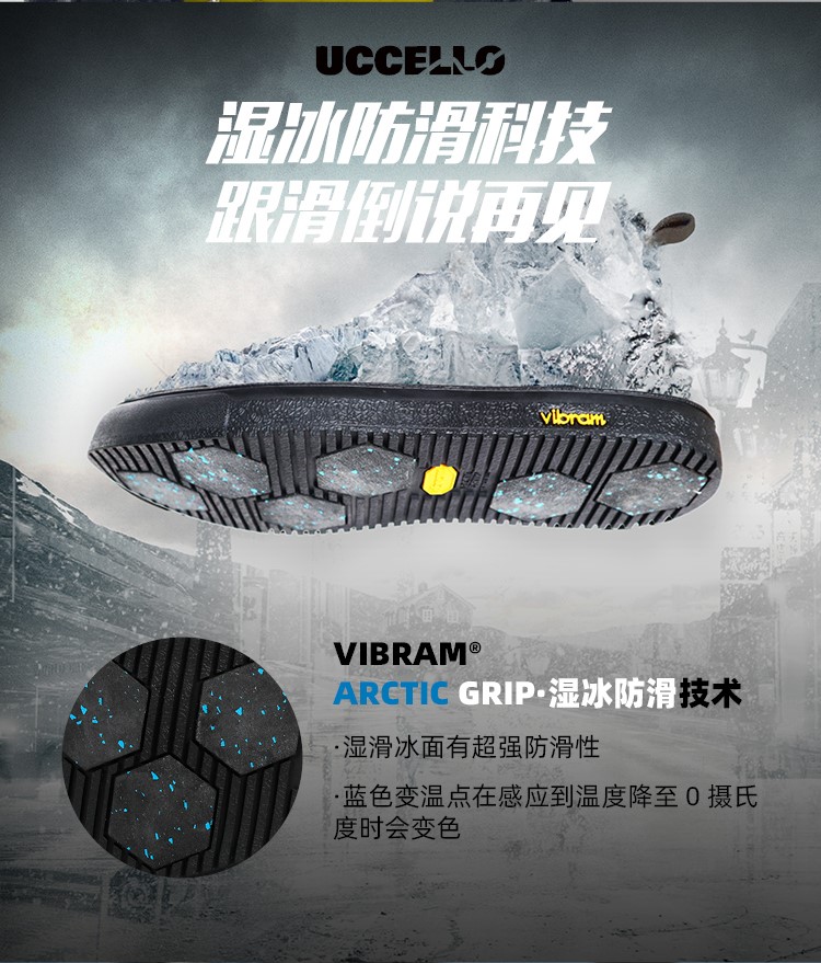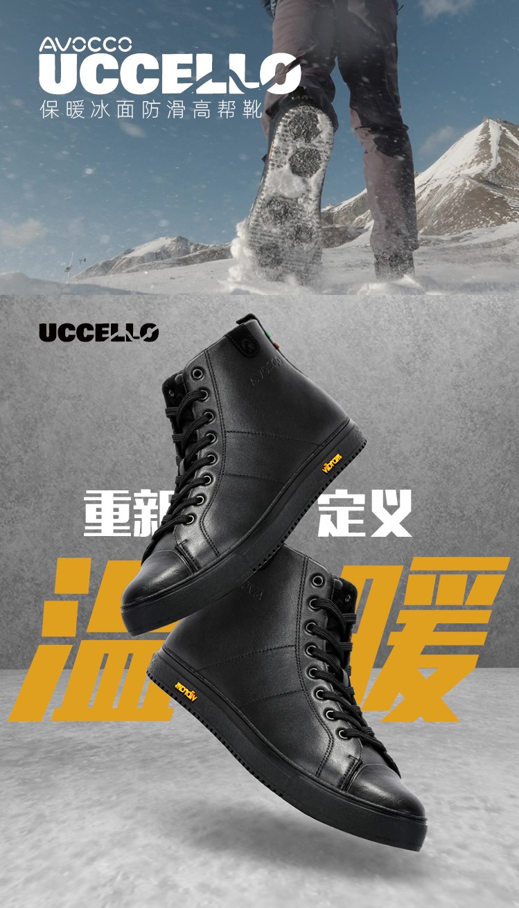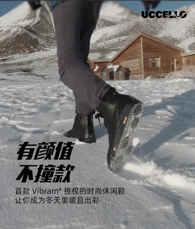 Vibram冰面防滑AVOCCO冬款UCCELLO系列加绒保暖小皮鞋