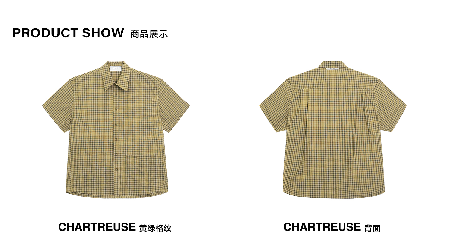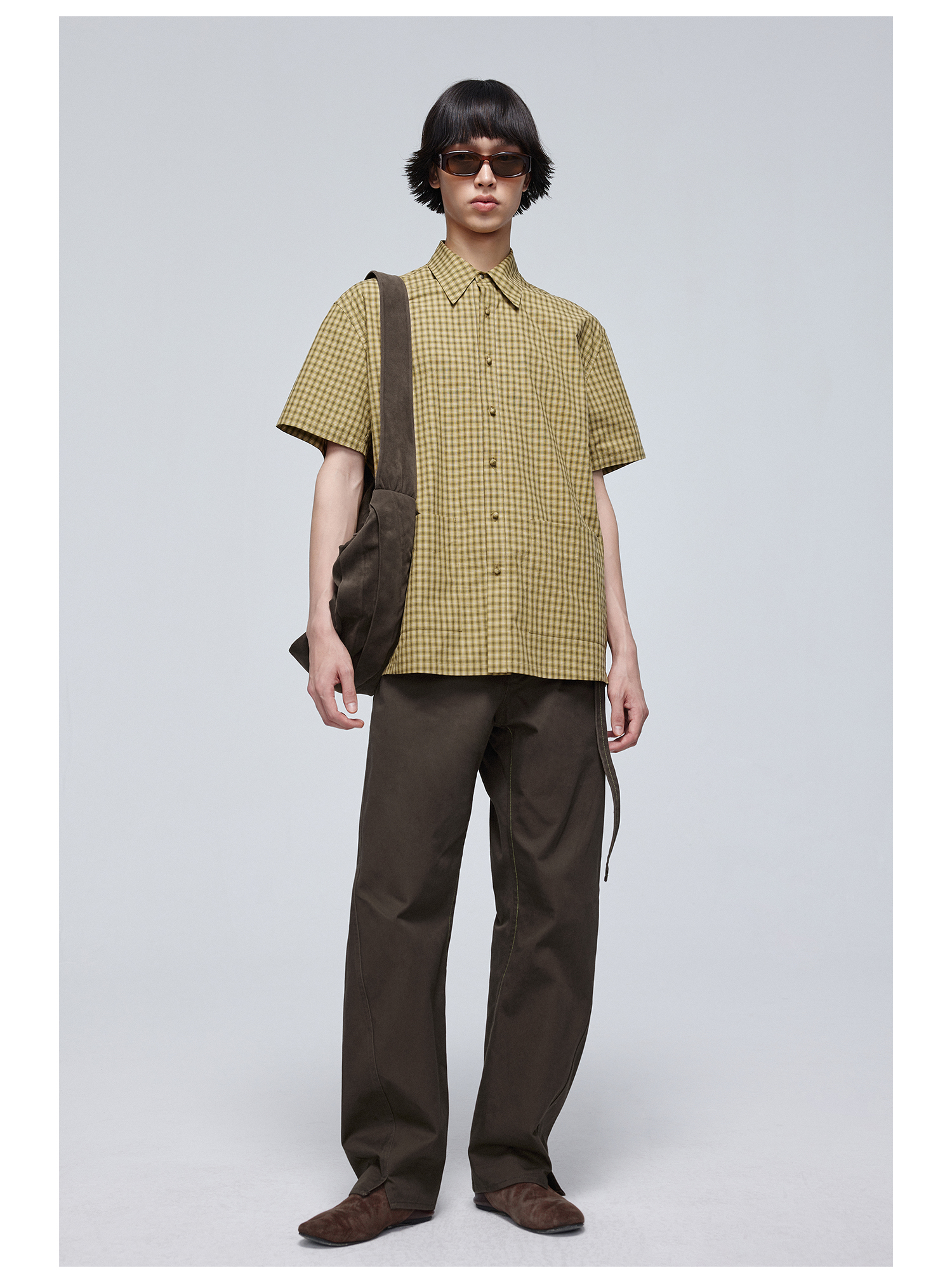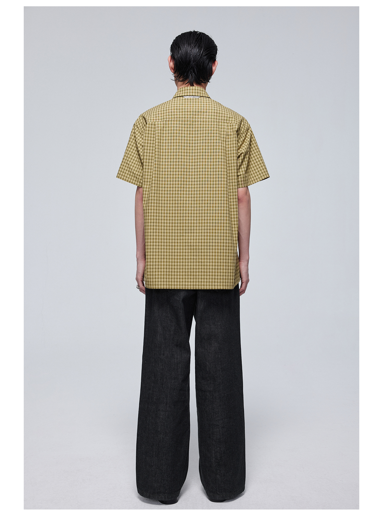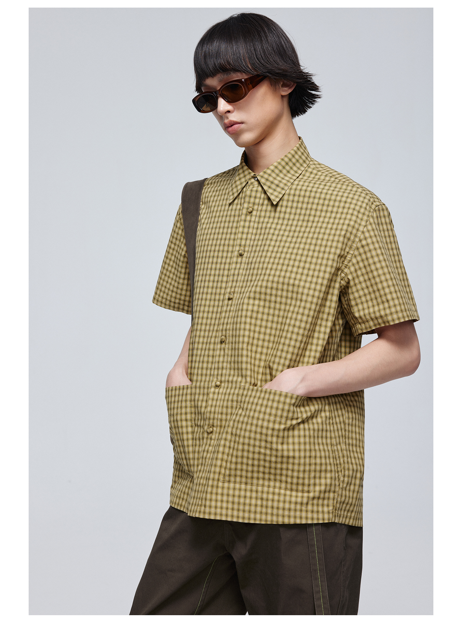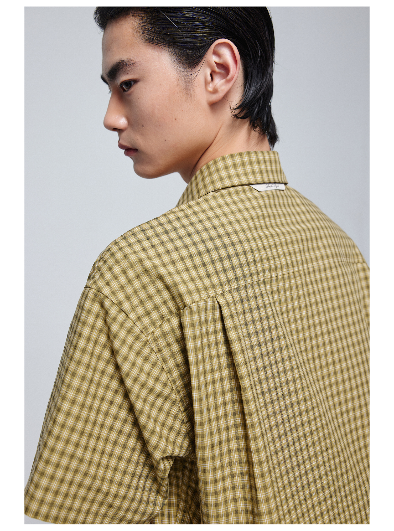 Simple Project/Y24117/黄绿格纹布包扣双褶侧缝插片短袖衬衫