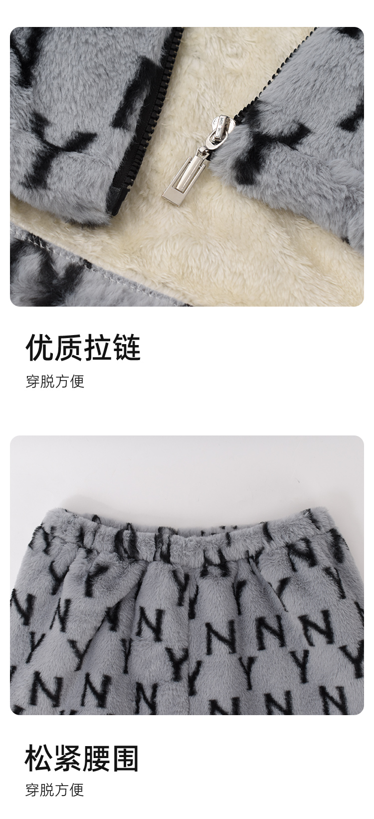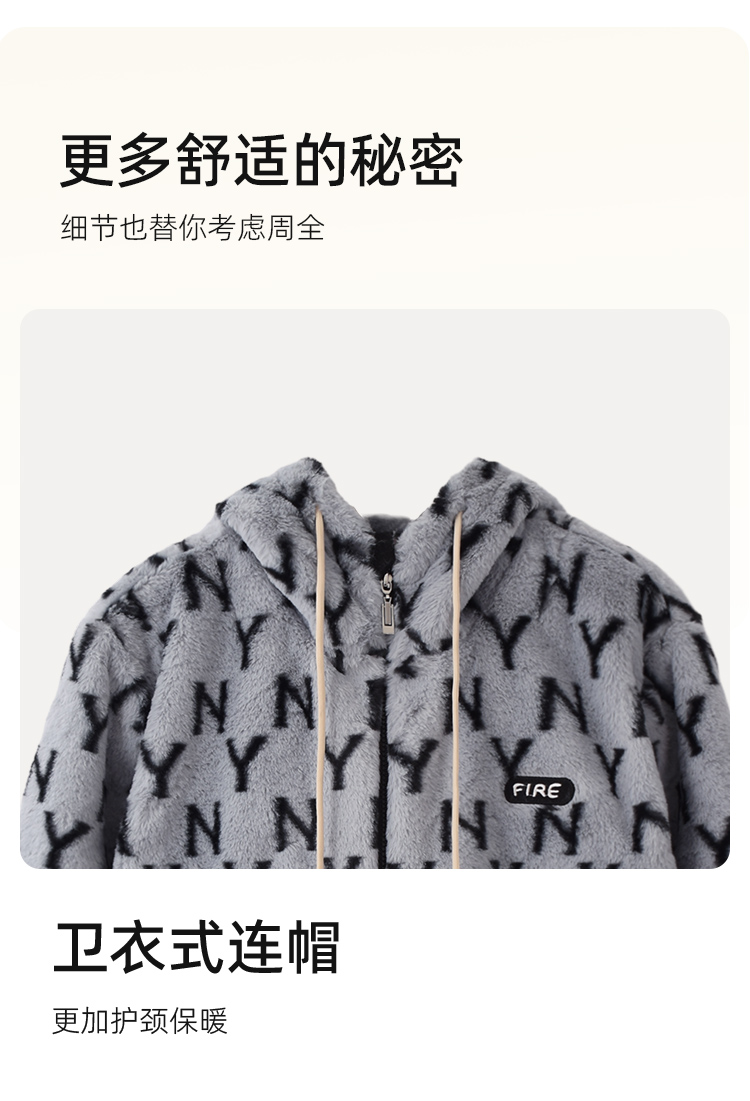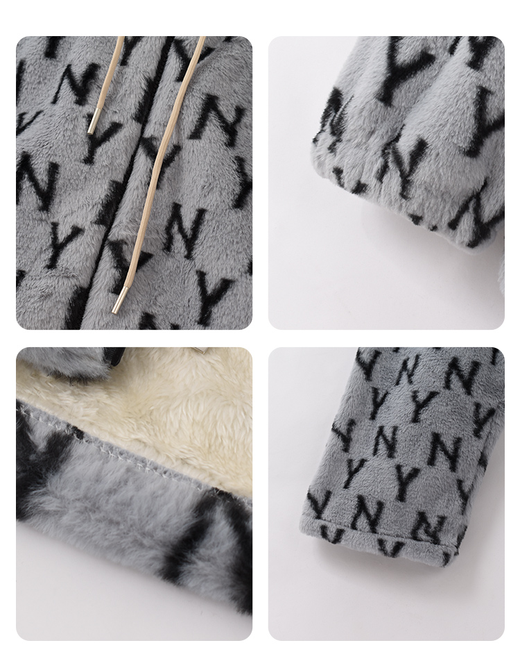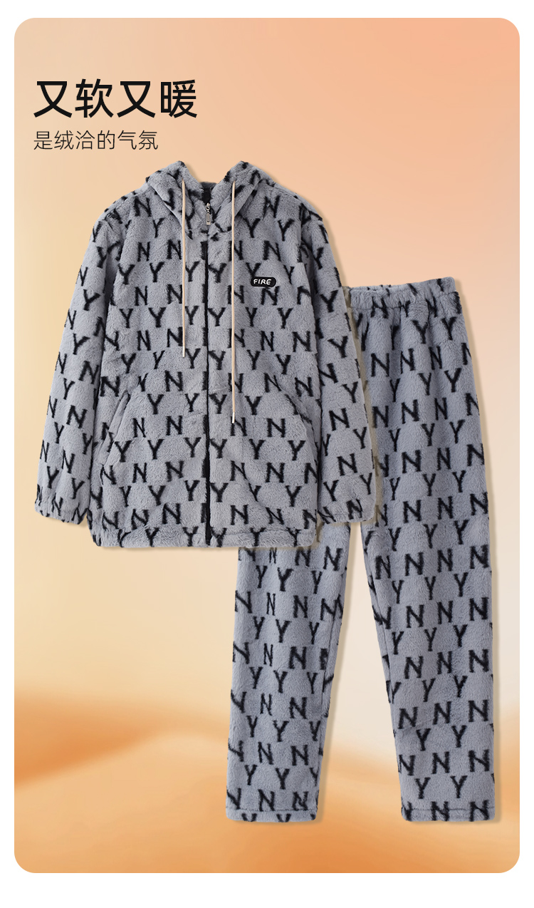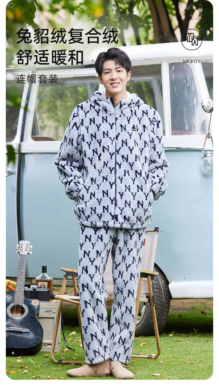 秋冬男士兔貂绒加绒家居服连帽开衫可外穿套装潮流字母睡衣JJT90025