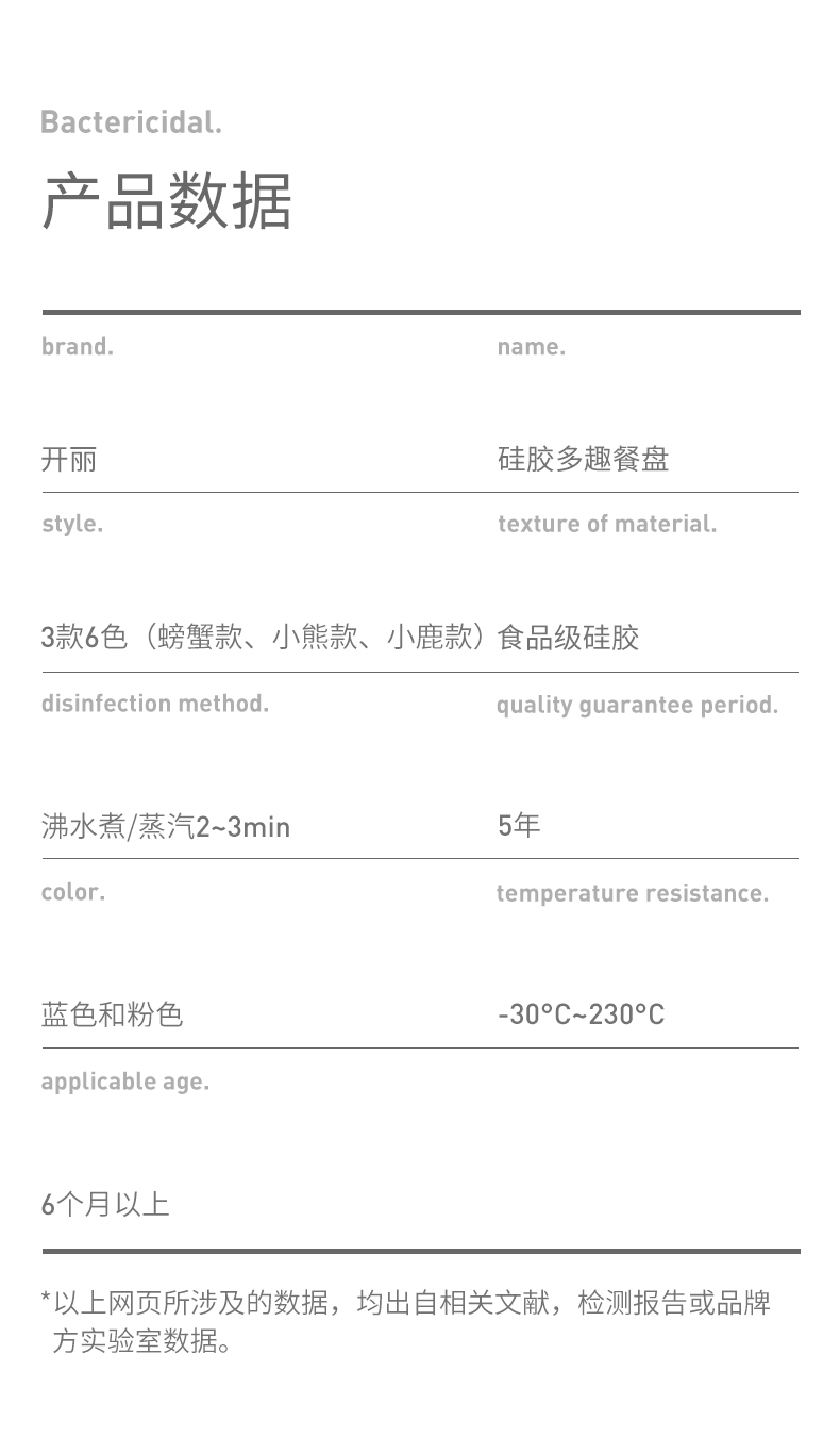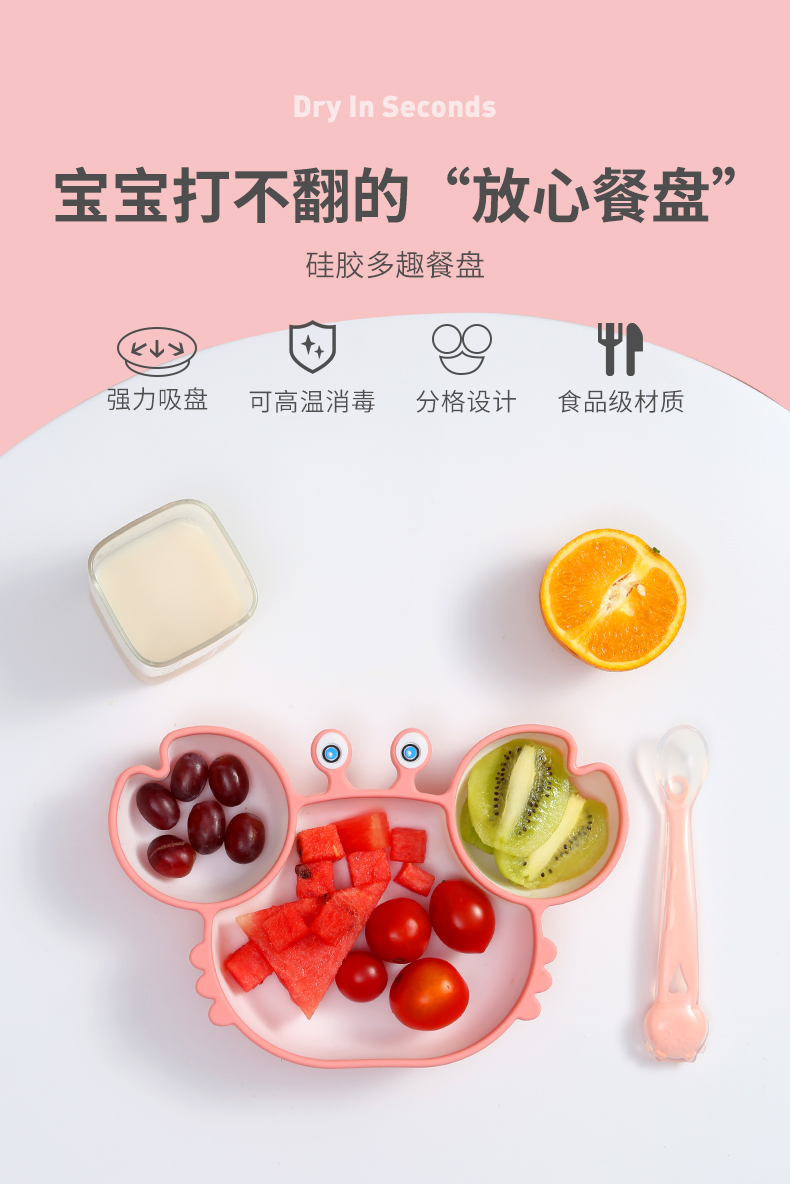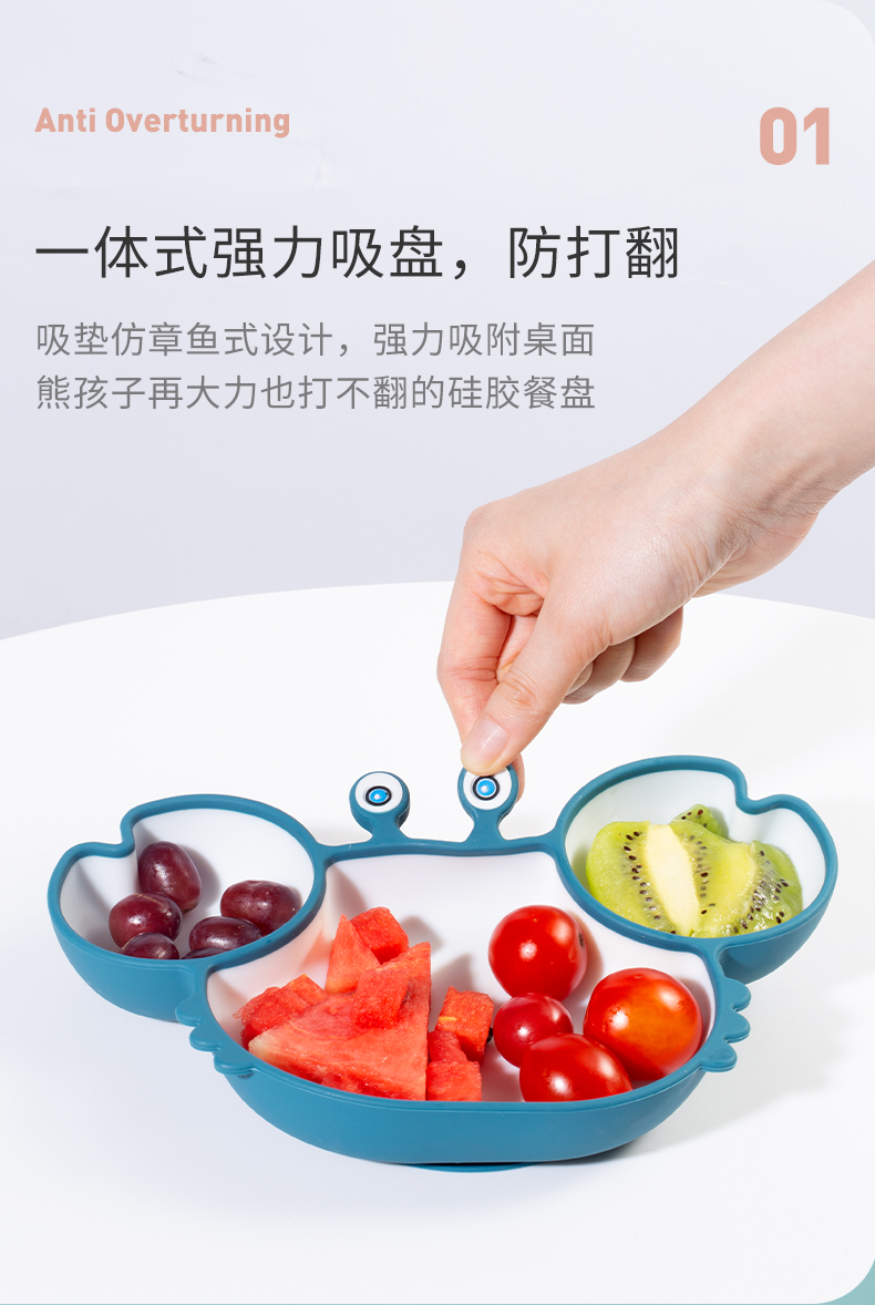 【开丽】宝宝餐盘婴儿童餐具卡通液体硅胶吸盘式学吃饭训练辅食碗分格