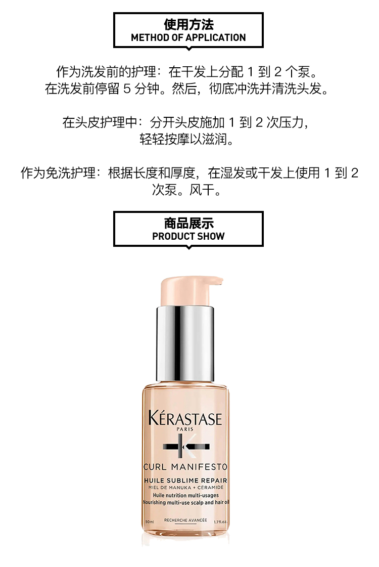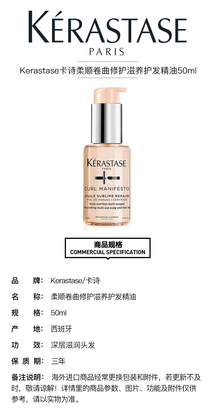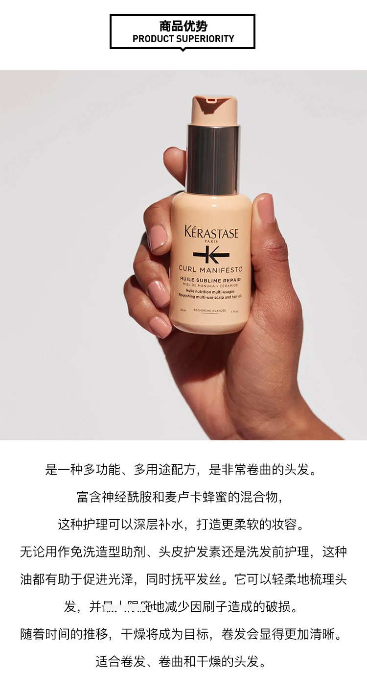 Kerastase卡诗柔顺卷曲修护滋养护发精油50ml