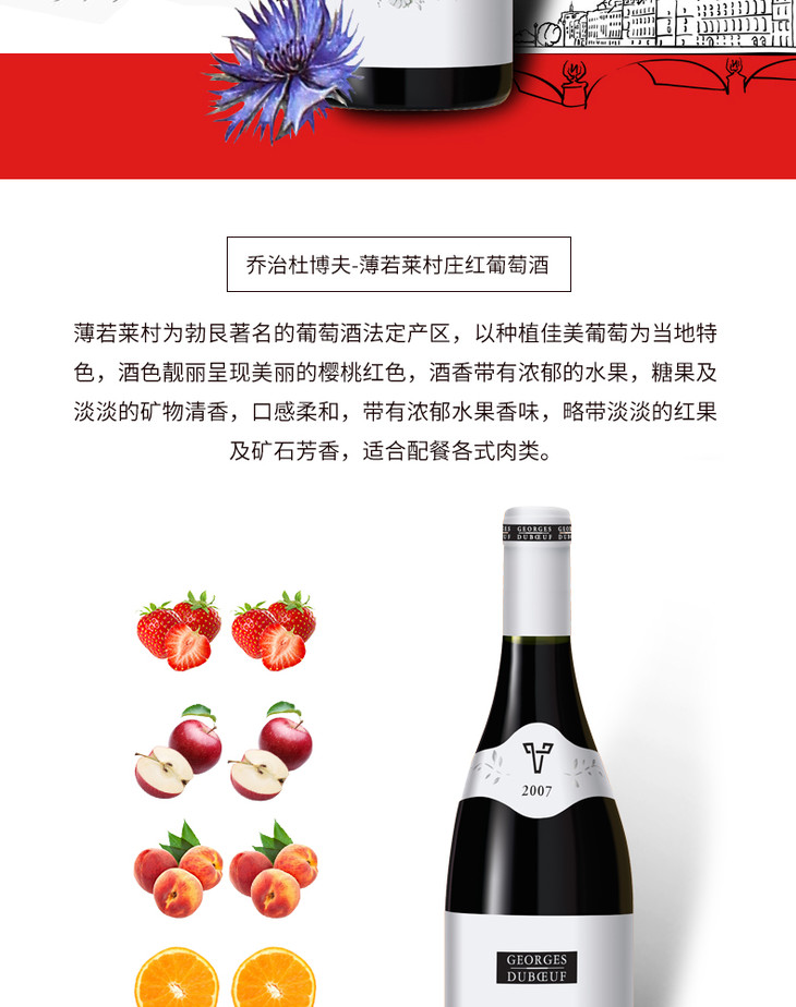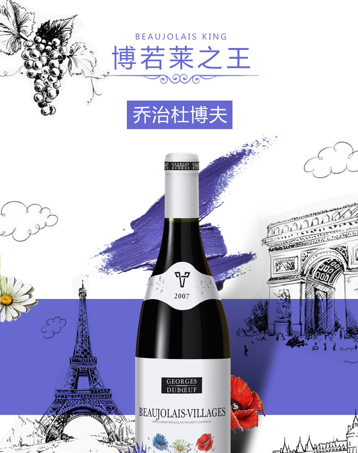法国原瓶进口红酒 乔治杜博夫-薄若莱村庄红葡萄酒 Georges Duboeuf - Beaujolais Villages 单支装750ml
