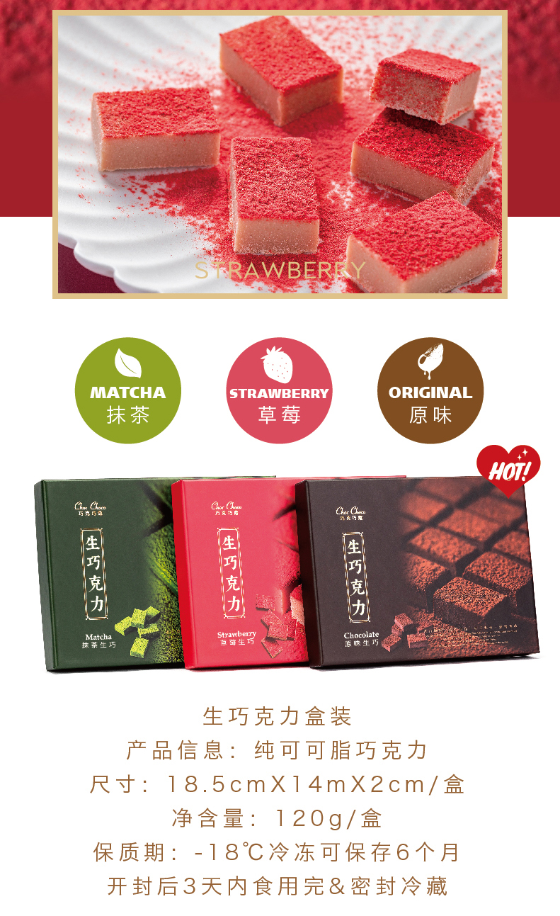 【女神节】巧克巧蔻 生巧克力 120g(原味 抹茶味 草莓味)