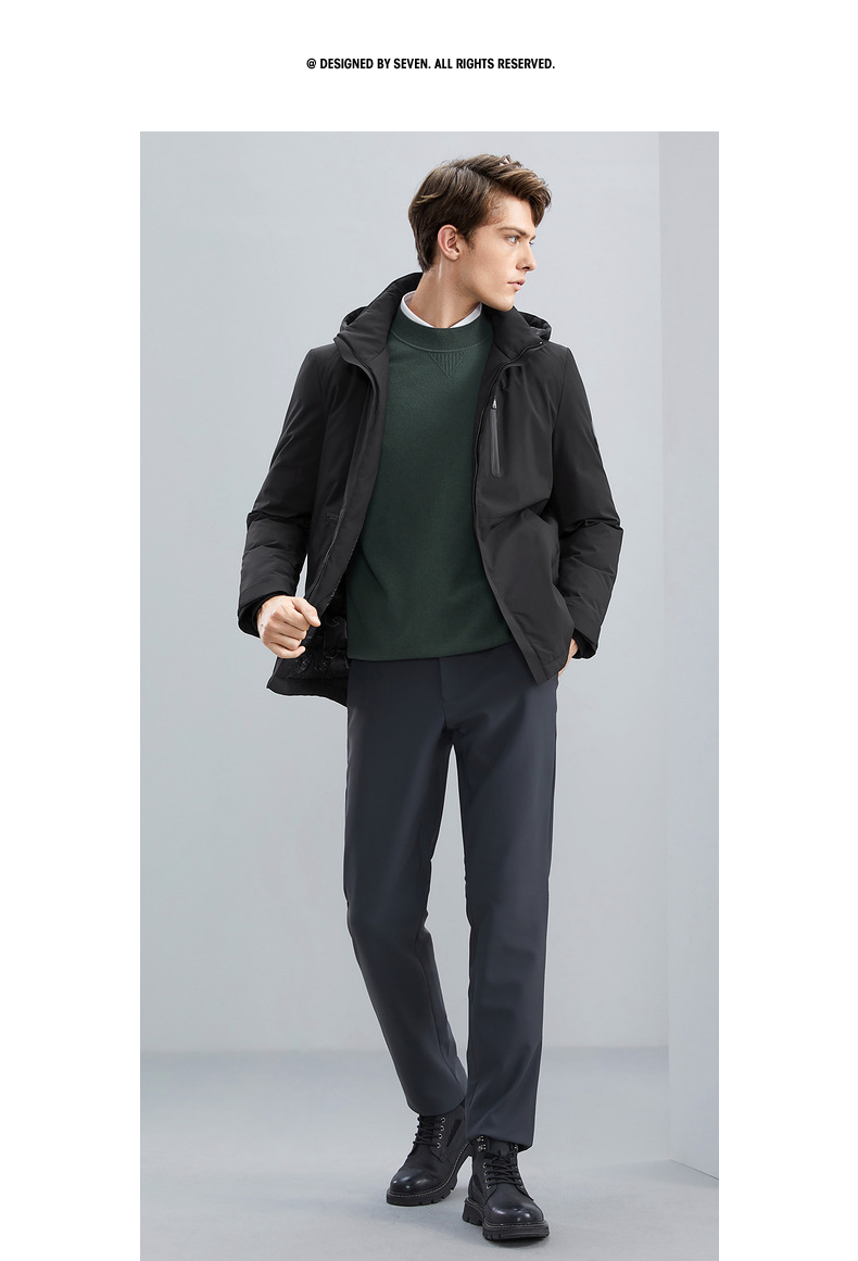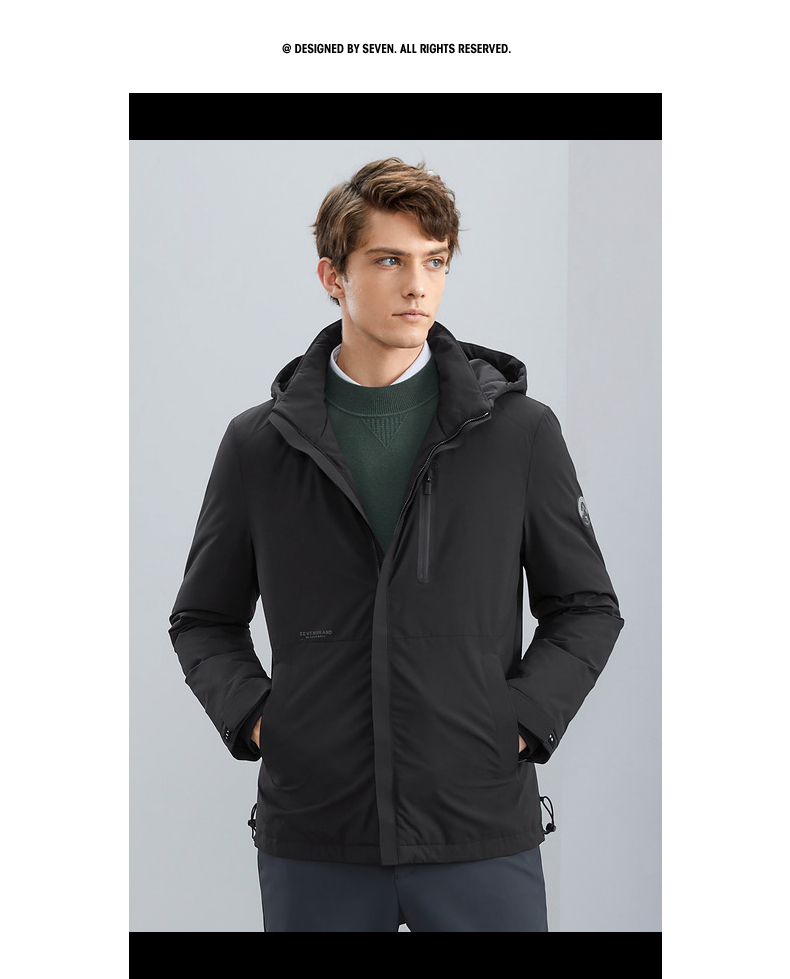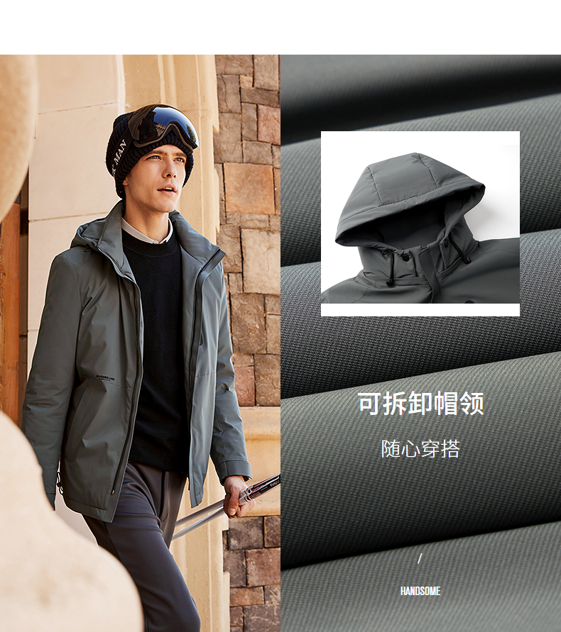 【可拆卸帽】柒牌男士羽绒服冬季新款时尚休闲白鸭绒保暖外套 125E70110