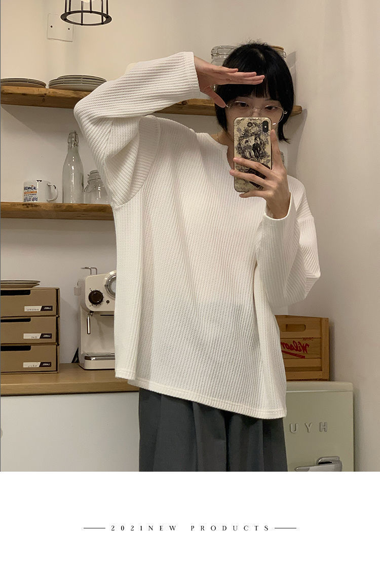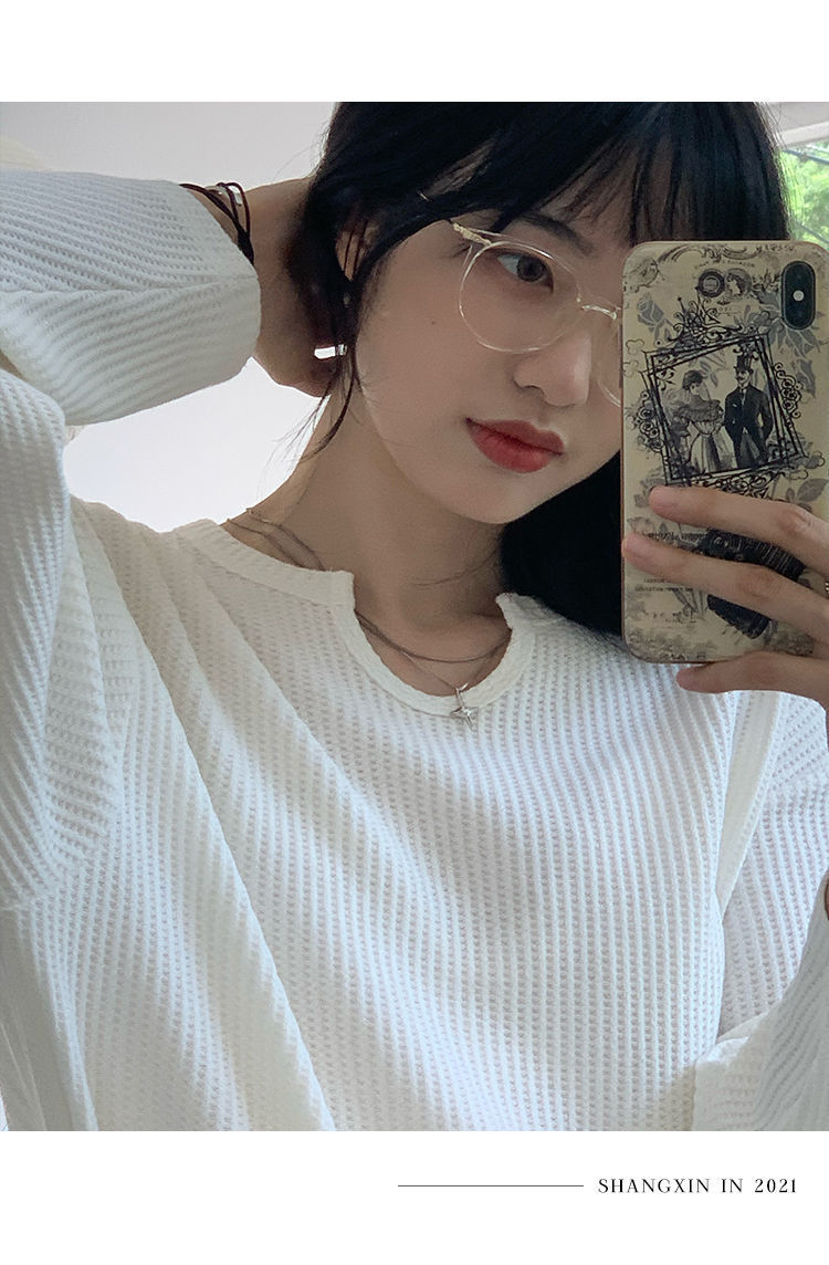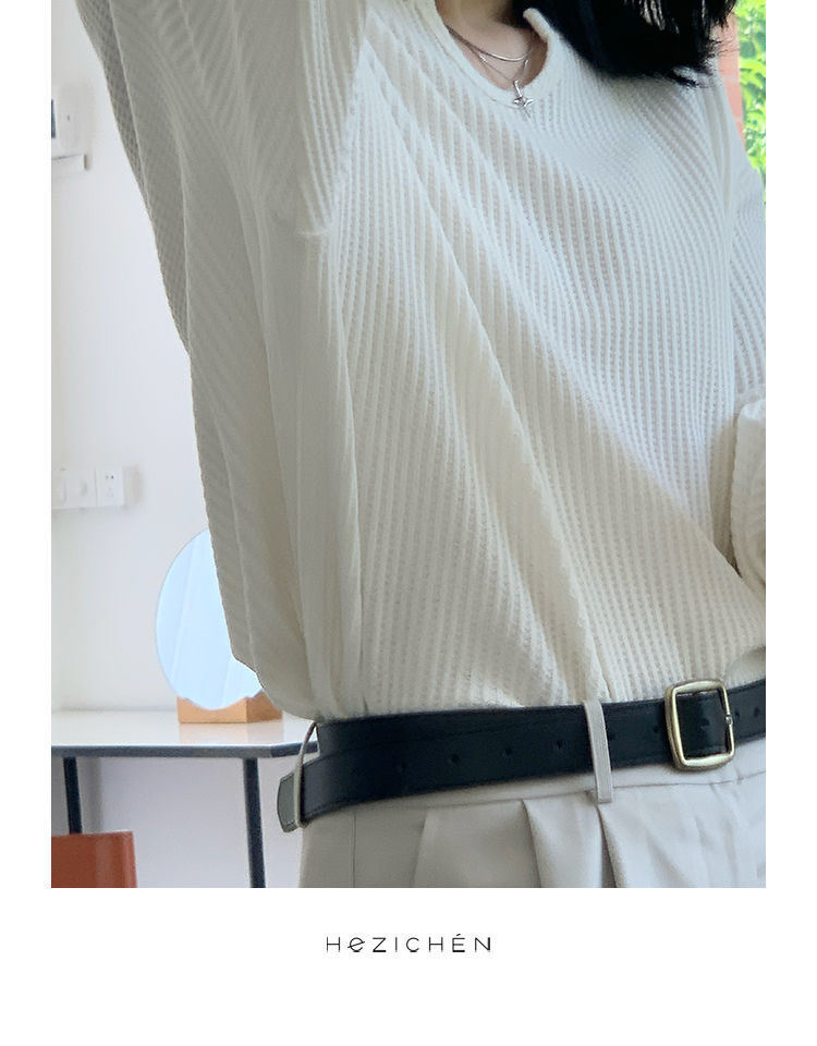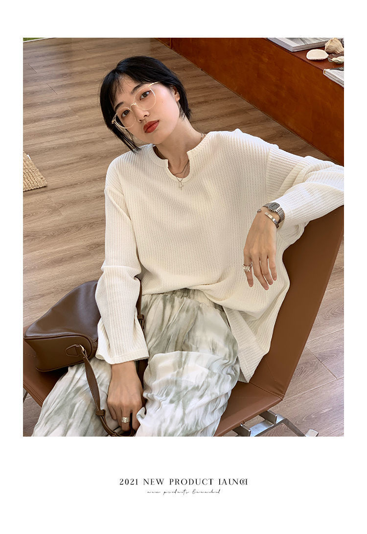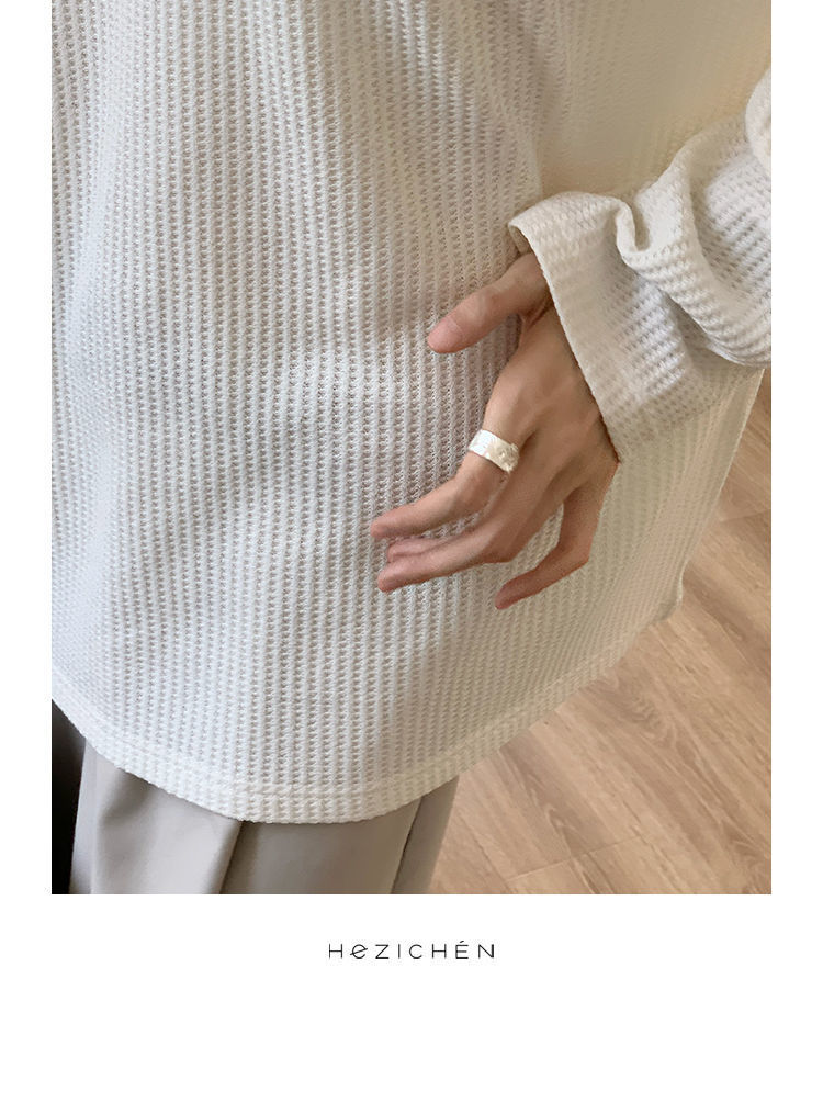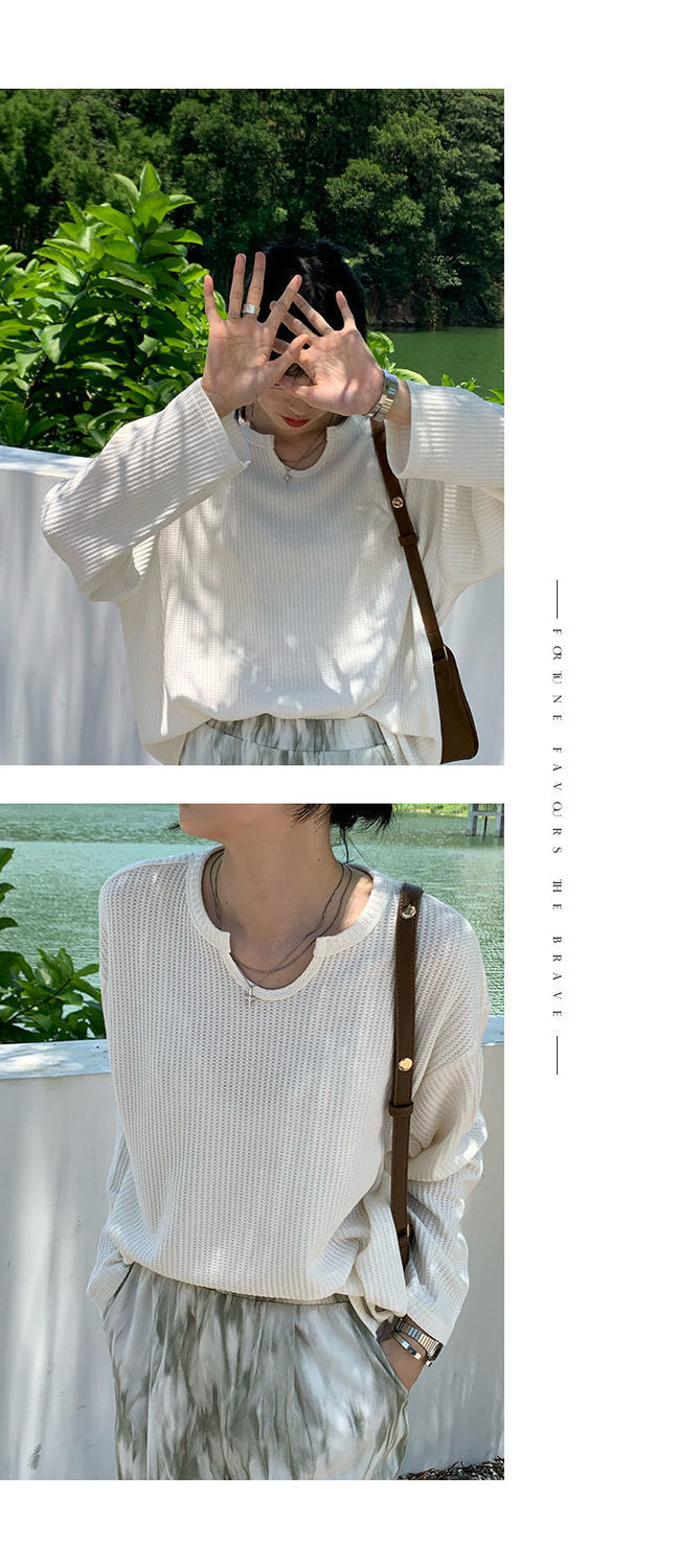 【早秋季日系慵懒风上衣】设计感小众薄款宽松显瘦长袖华夫格针织衫