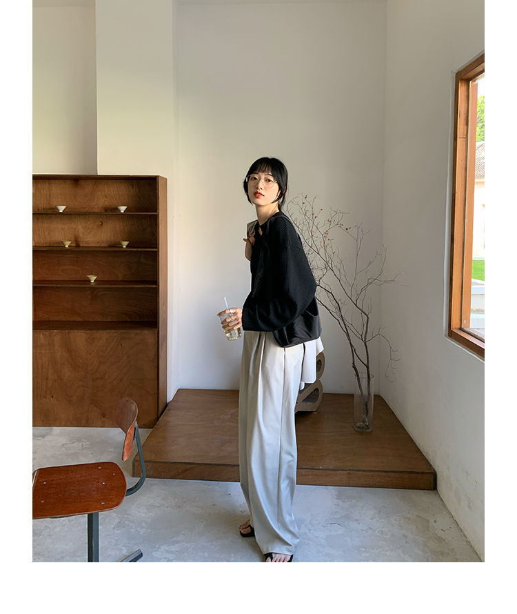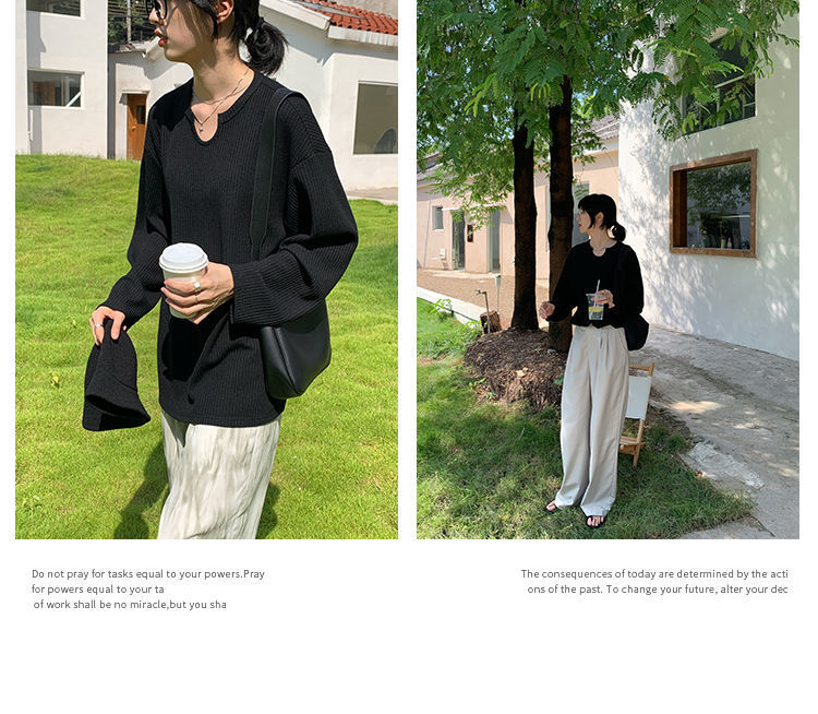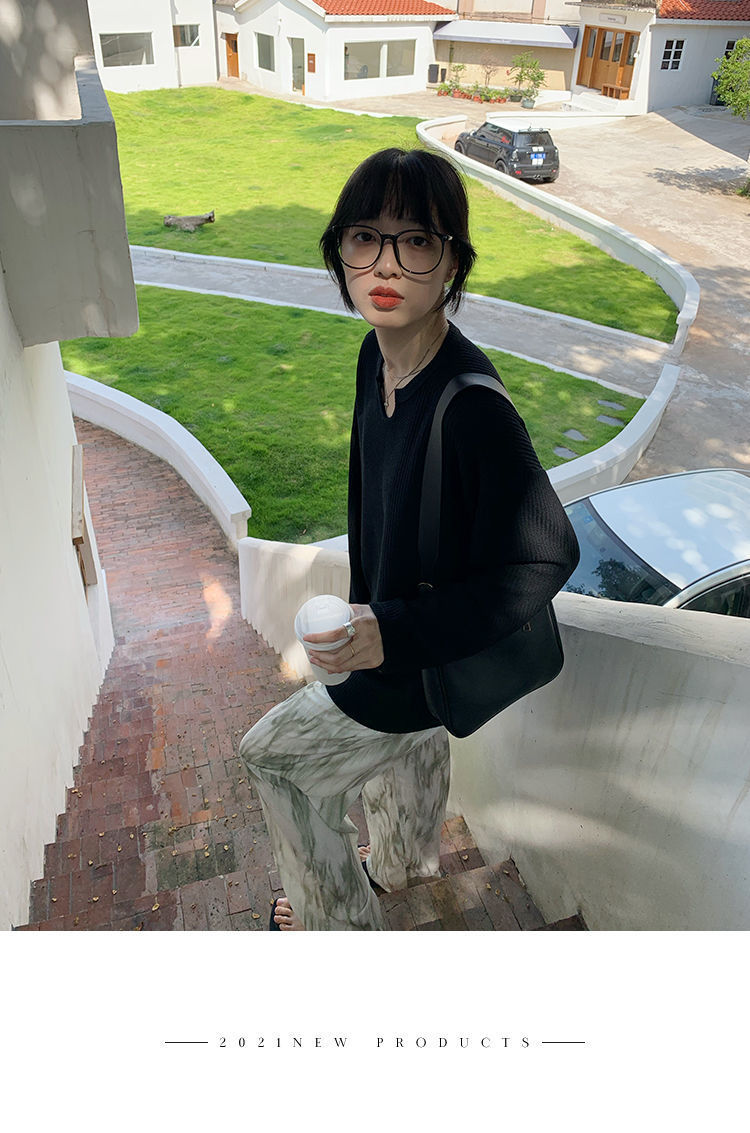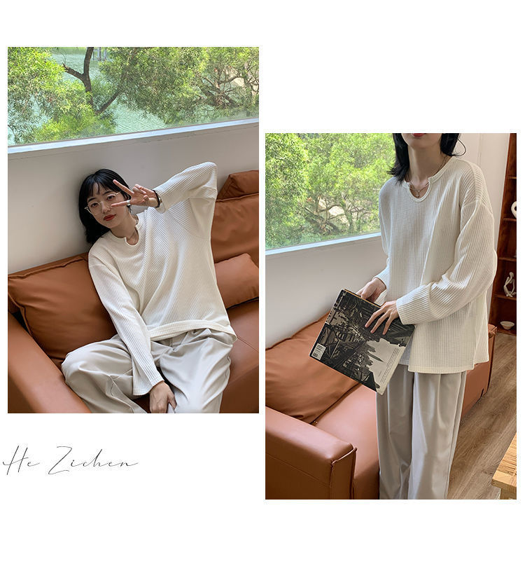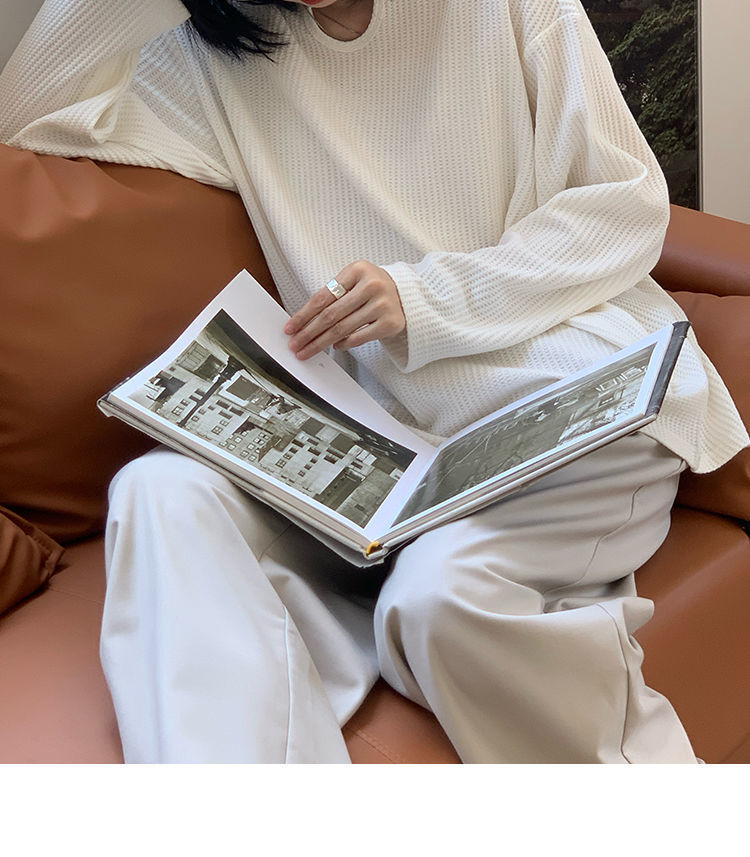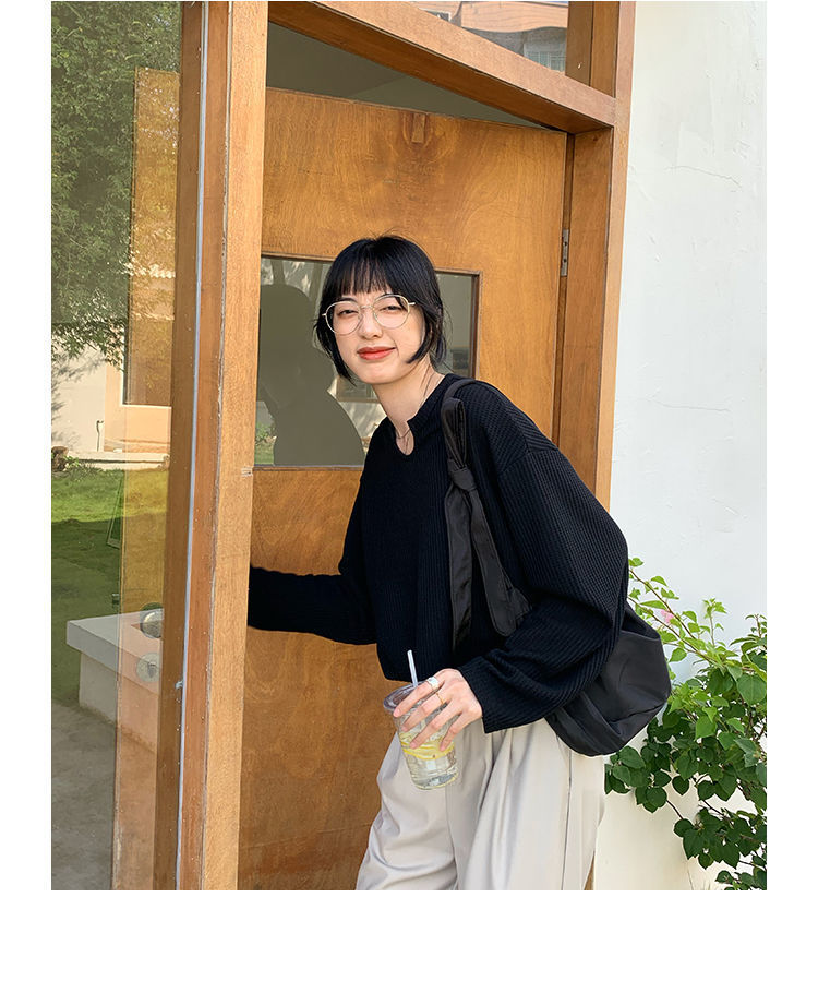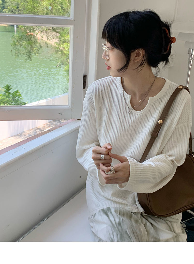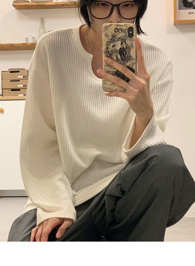 【早秋季日系慵懒风上衣】设计感小众薄款宽松显瘦长袖华夫格针织衫