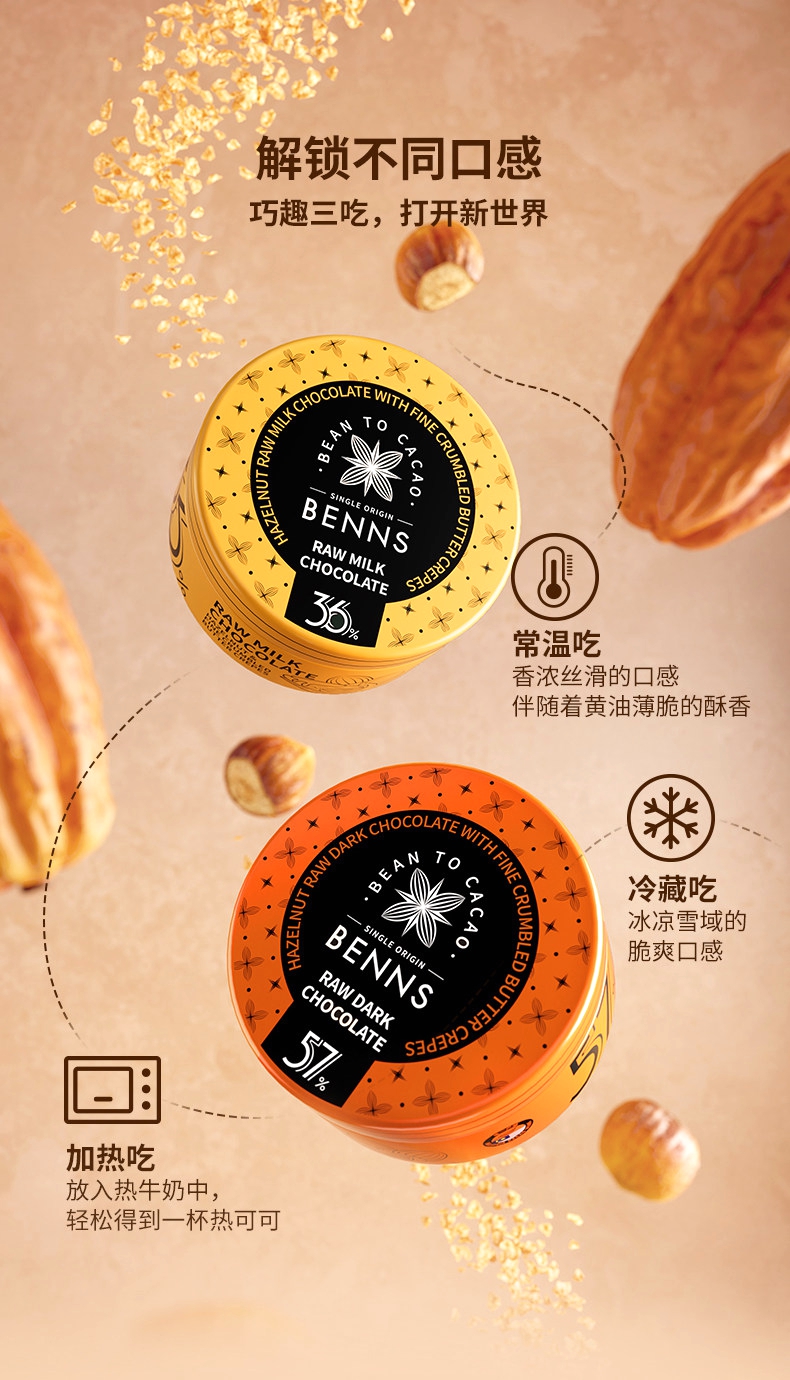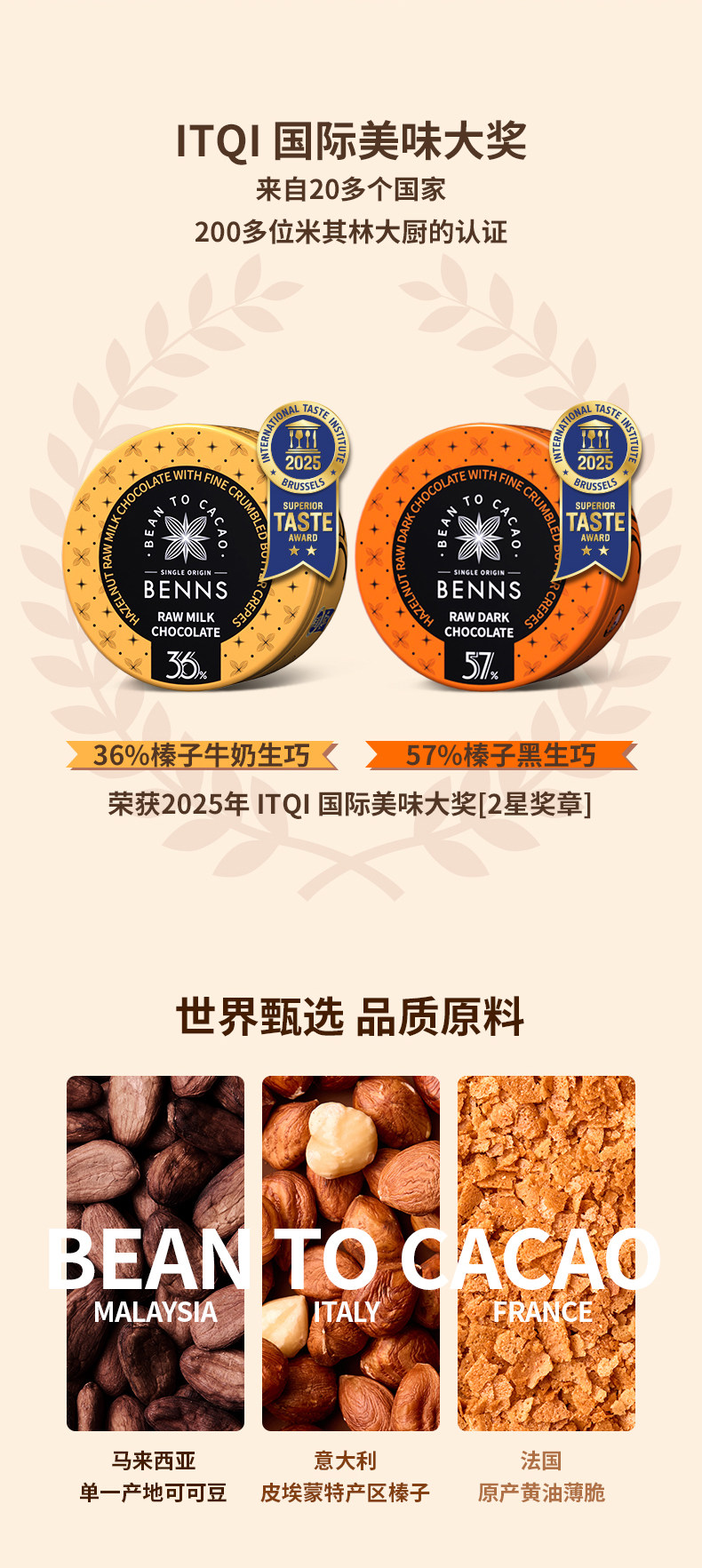 贝纳丝榛子黄油薄脆牛奶生巧/生巧克力制品102g /045594/045595 纯净品质 臻享纯粹口感