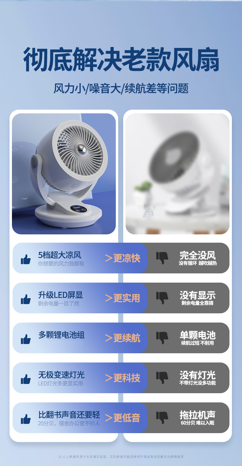 心选丨【桌面循环电风扇】台式办公室桌面空气循环扇 宿舍壁挂风扇usb触控数显小风扇