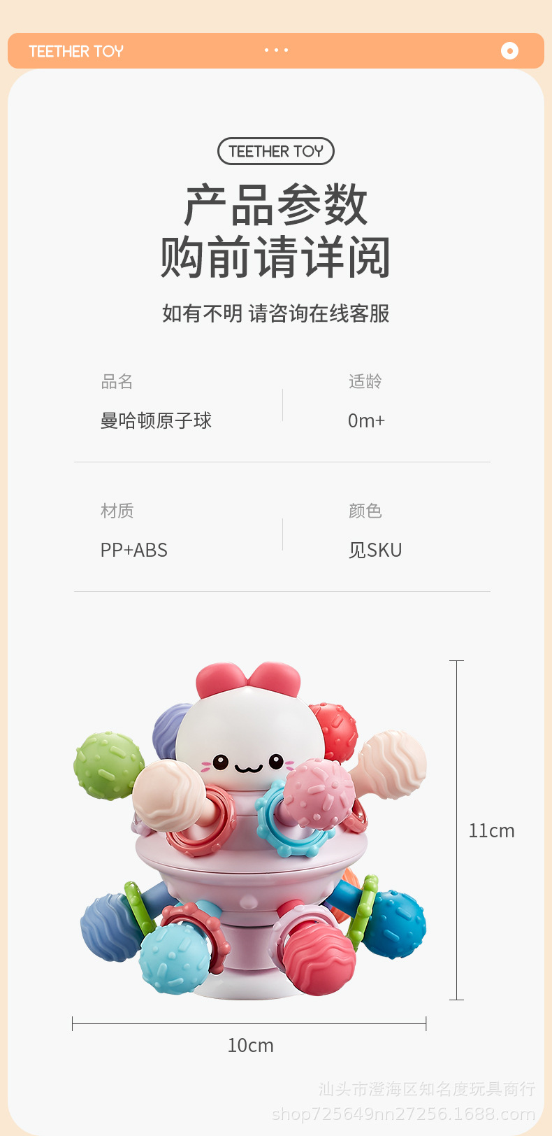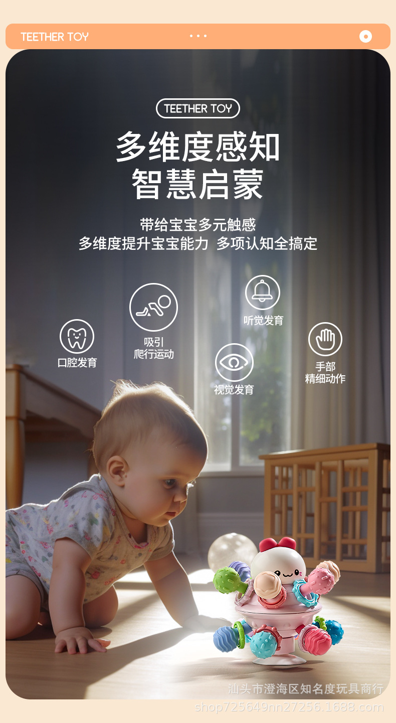曼哈顿手抓球婴儿益智早教可咬牙胶磨牙棒宝宝玩具0一1岁3到6个月