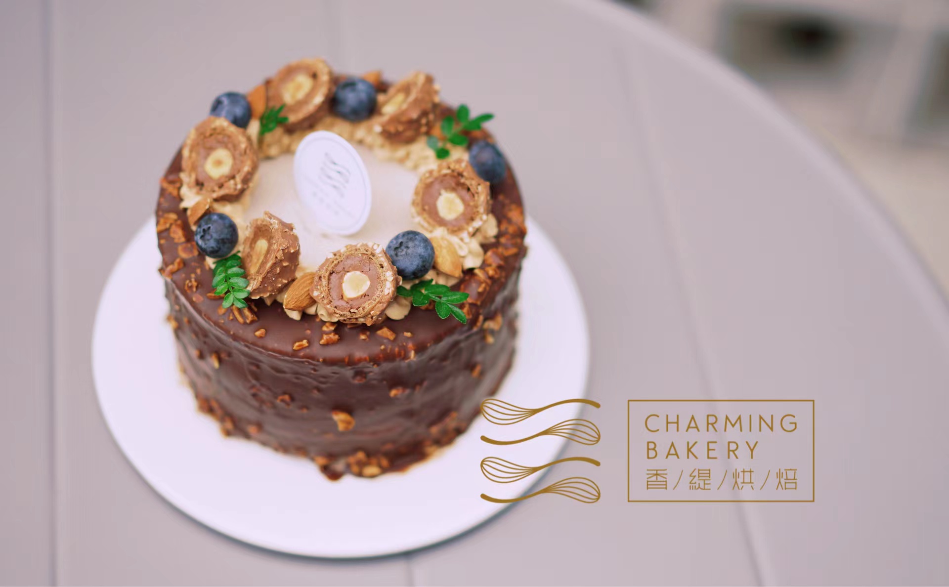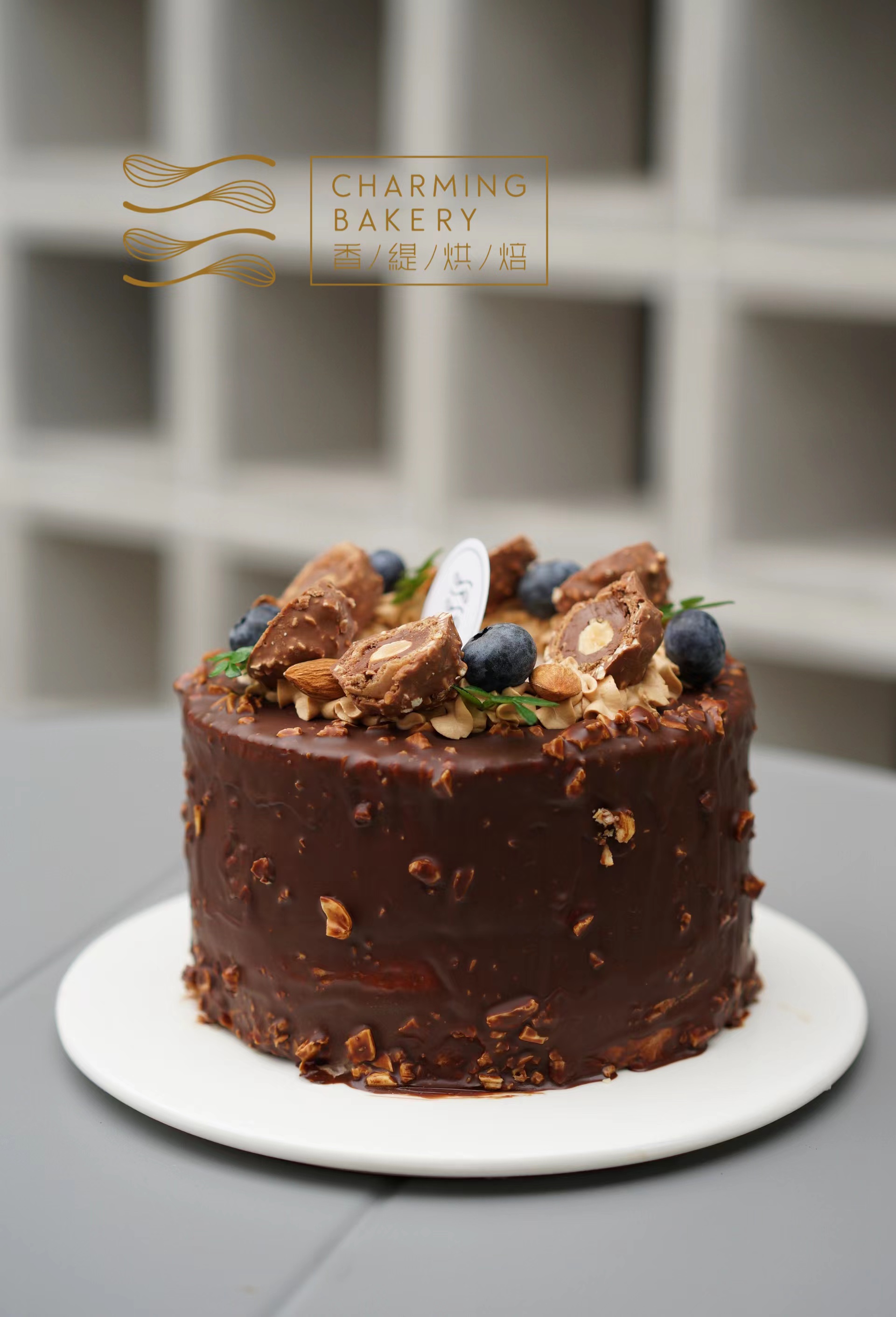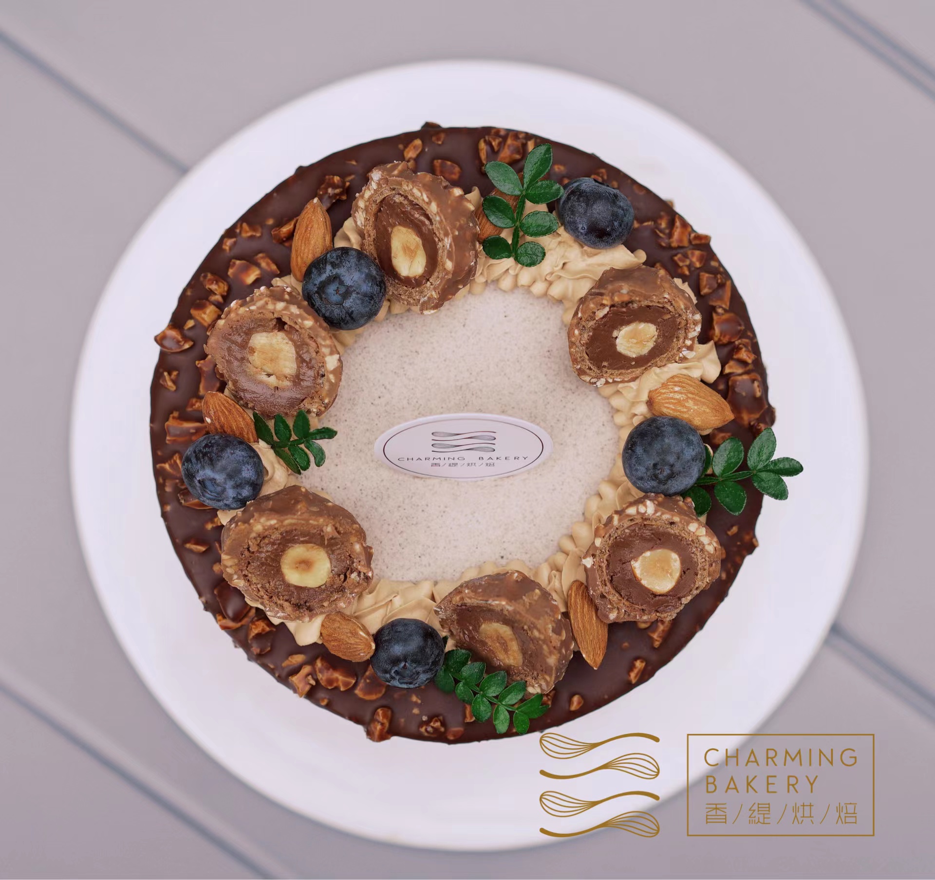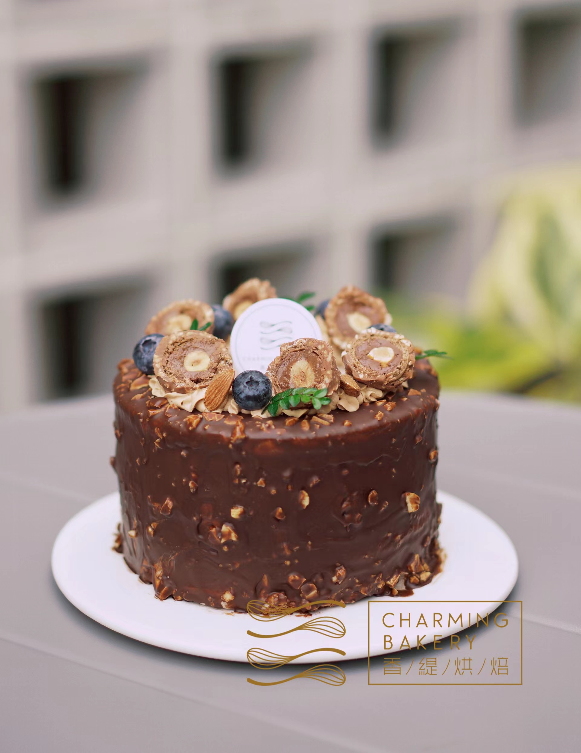 外层再铺满坚果脆皮巧克力淋面