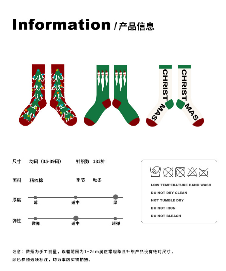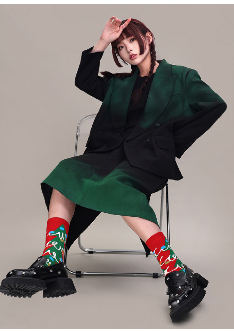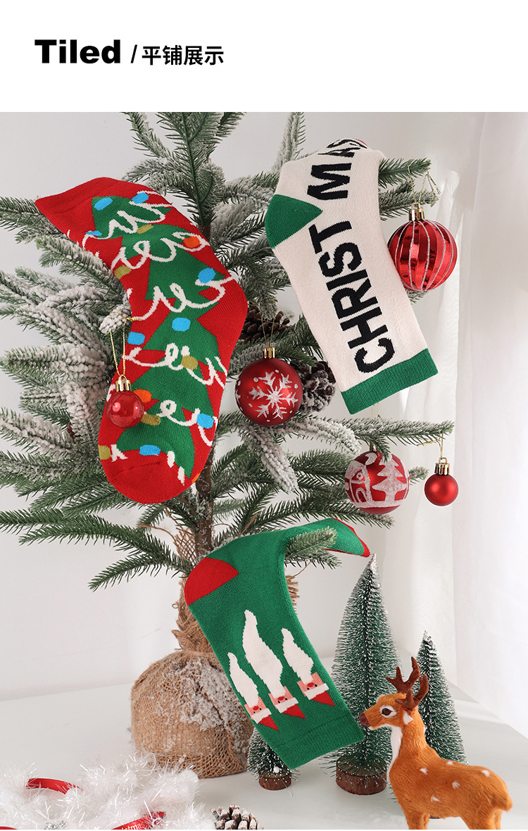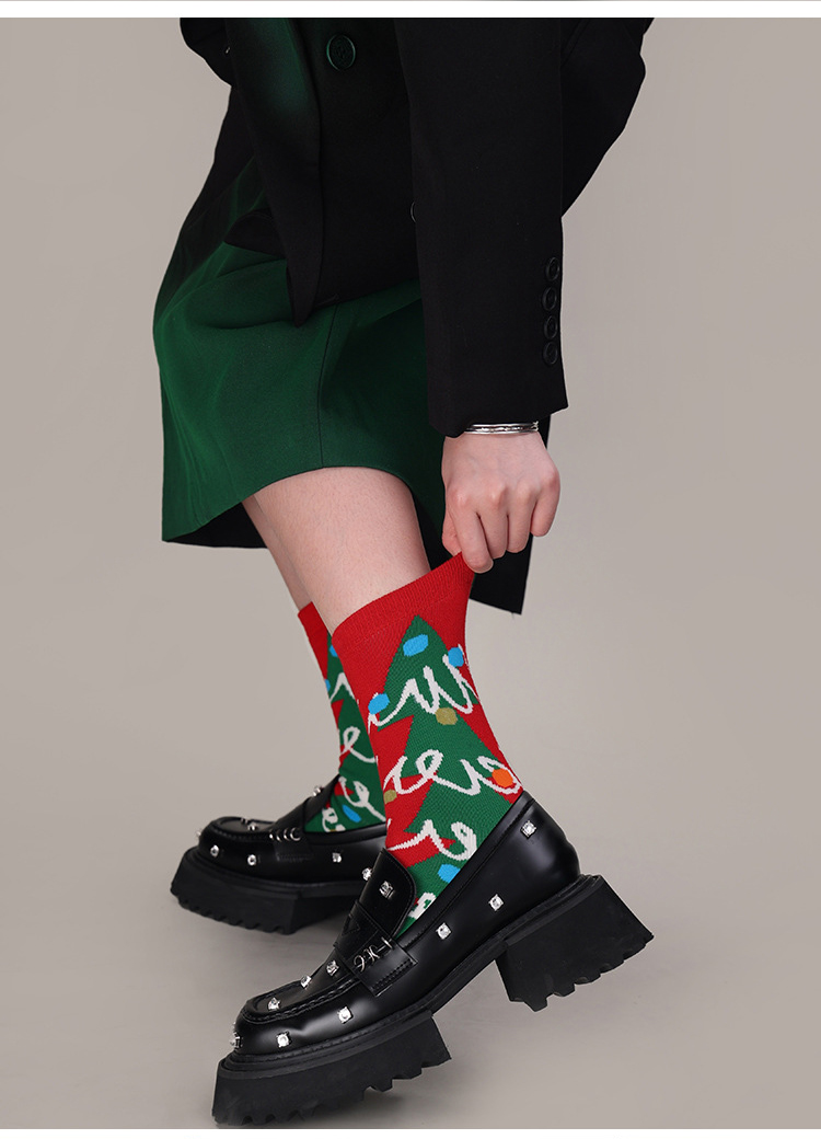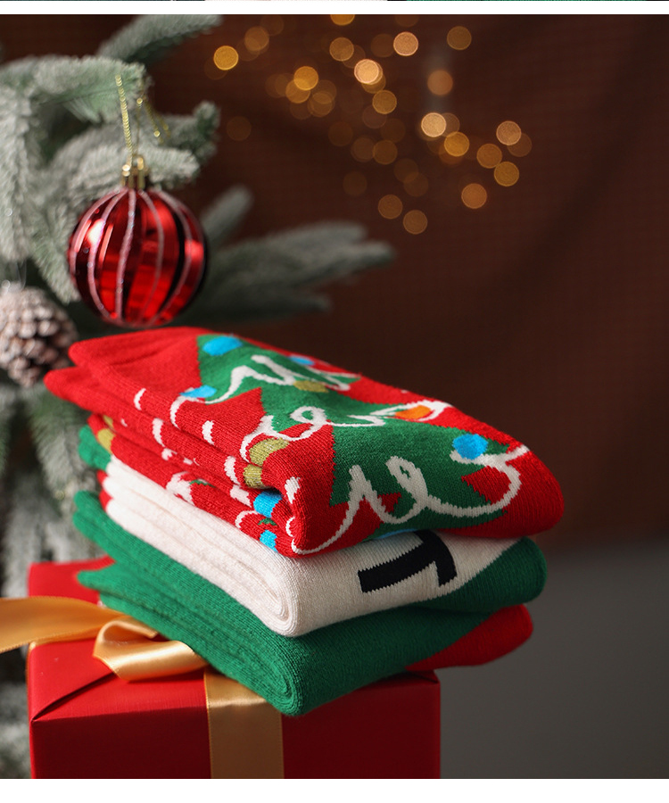 【圣诞礼物】秋冬文艺复兴女袜3双套装圣诞袜 加厚中筒毛圈袜女ins潮流时尚袜
