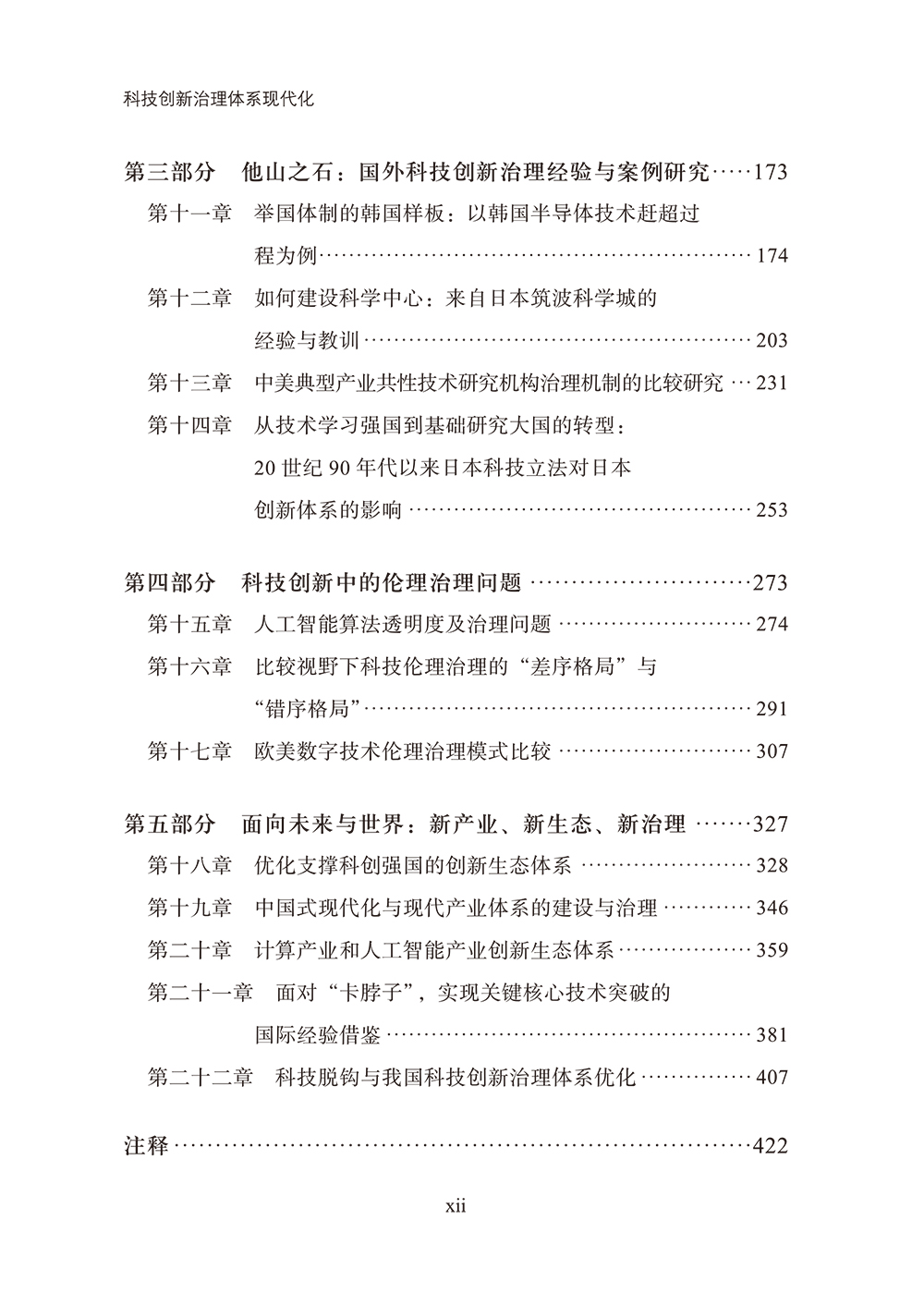 科技创新治理体系现代化的水平已成为一个社会创新生态体系的决定性因素。当前,世界正处于新一轮科技产业革命的窗口期,从基础研究到产业化的速度前所未有,“机会窗口”稍纵即逝,科技创新中的协商治理、敏捷治理、动态治理、精准治理变得很重要。科技创新的现代化良治就是要促进知识链、人才链、产业链、资金链、政策链的协同,提升创新体系的整体效能。从国际来看,科技创新治理涉及全球科技资源的流动、合作和共同治理问题,全球科技创新治理体系之争本质上是世界各国未来发展权之争。本书分为科技创新治理体系理论基础与学术前沿,新时代中国科技创新治理:问题、挑战与改革,他山之石:国外科技创新治理经验与案例研究,科技创新中的伦理治理问题,面向未来与世界:新产业、新生态、新治理等五大部分,集中展示了当代中国学者在科技创新治理理论领域的最新研究成果。