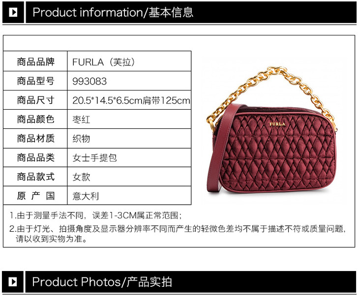 【香港直邮】Furla 芙拉 女士枣红色手提单肩包 993083
