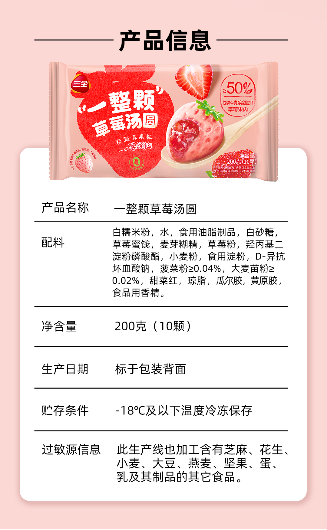 三全一整颗草莓汤圆200g
