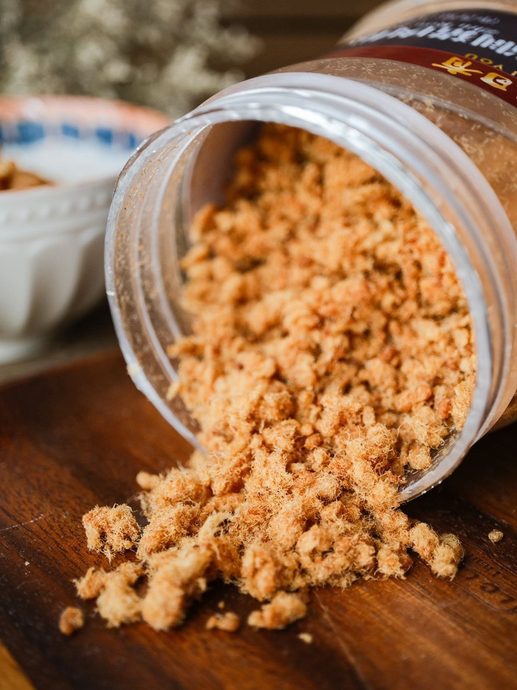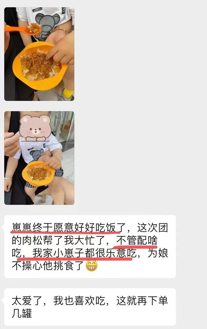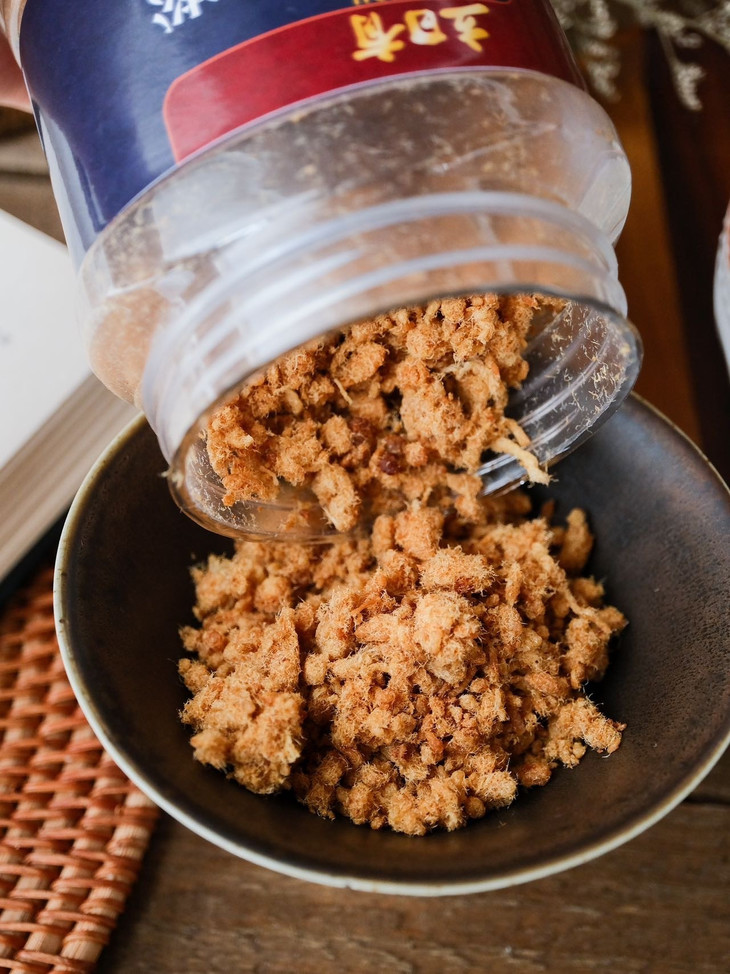 肉松蓬松,鲜香酥软 不管空口吃还是搭配面条、饭粥 都巨巨巨香啊!而且越嚼越香! 肉松颗粒细微均匀色泽金黄,酥香可口 有它我能吃下2碗白粥!!有点废粥哈