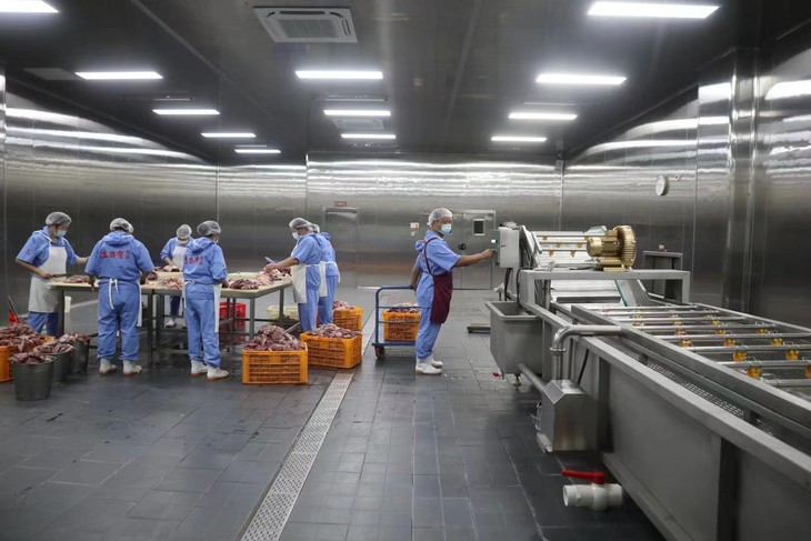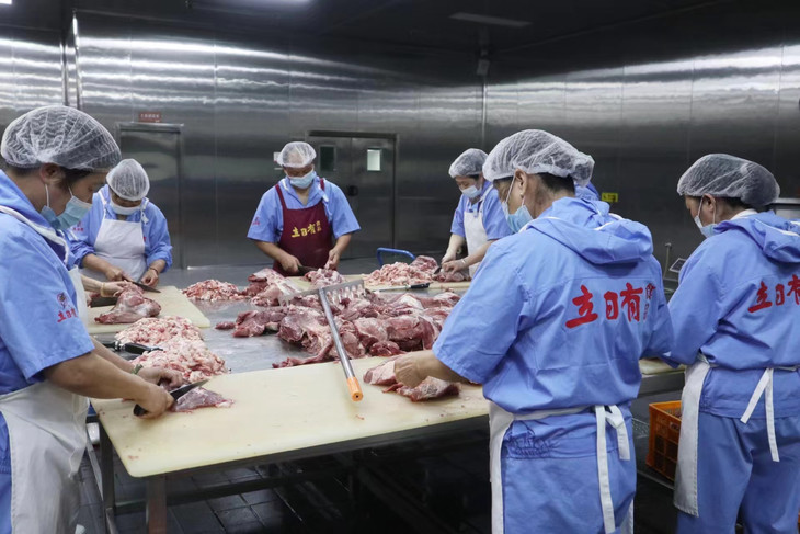 每日清晨从定点屠宰厂采购新鲜猪后腿肉 沿袭祖传的切肉法,仔细的把附着的肥肉与肉筋剔膜除干净 新鲜猪后腿肉高压冲洗干净,投入清水中大火熬煮2个小时左右 等至肉纤维松软时再炒制加工,加入融化好的猪油加以拌和直到成品