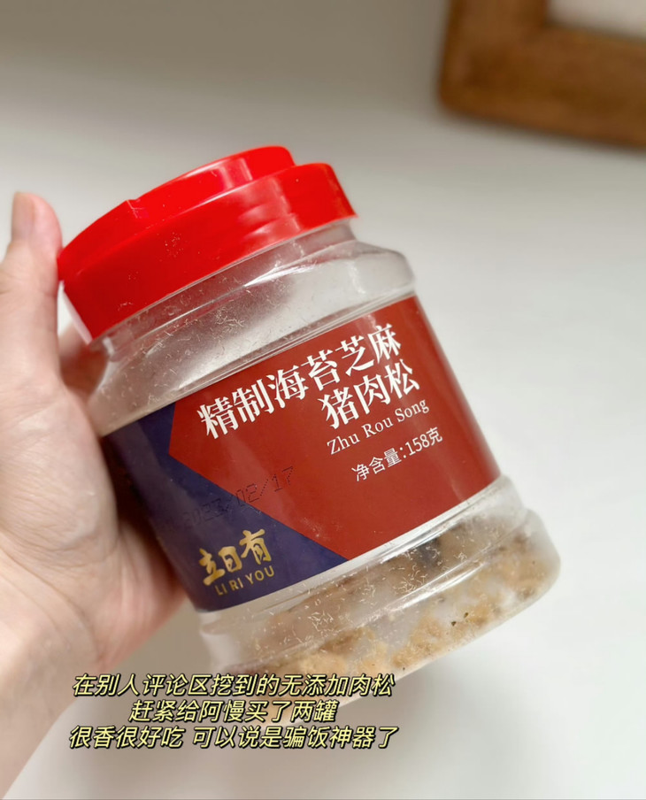 两种口味,原味➕海苔味 ✓ 原味肉松 打开就有扑鼻的焦香 肉味浓郁,不油不干 空口吃都很香,不腻口 一勺一勺根本停不下来!