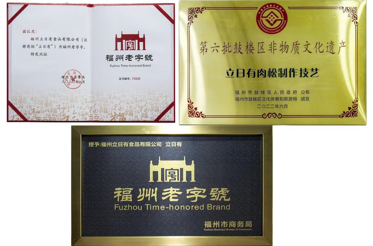 中国福建福州老字号【立日有】 味道好用料更好 即便是身为福州人的你,可能也并不知晓这个咸中带甜、让人趋之若鹜的金黄色肉松,其实源起于福州 说到肉松到哪里去买,多数福州人都会应上一句:立日有肉松老铺。 立日有肉松制作技艺还被列入非物质文化遗产!