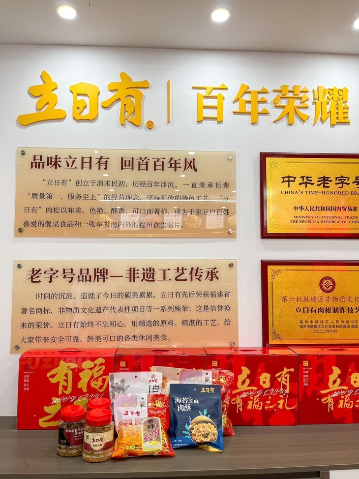 保持传统、货真价实、热忱服务”是“立日有”肉松的经营宗旨。 是福州老百姓值得信赖的老品牌。 现在在福州有多家分店,上下杭店、达明路店、石井巷店...每家店都有其独特的魅力。 走进店里,仿佛能感受到那份传统的气息和现代的融合。 如果你去福州旅游,它真的是必不可少的伴手礼