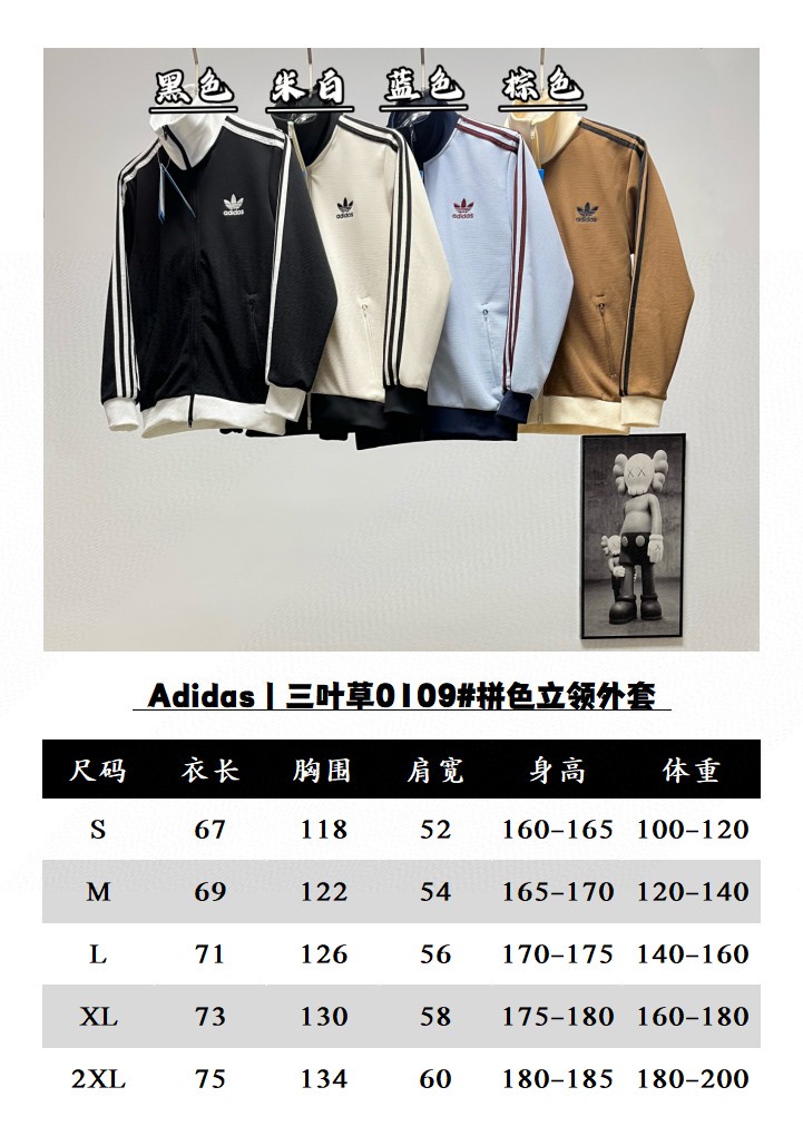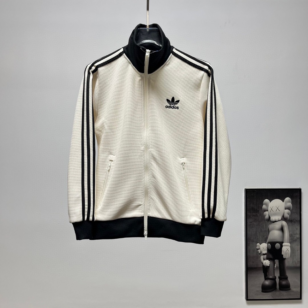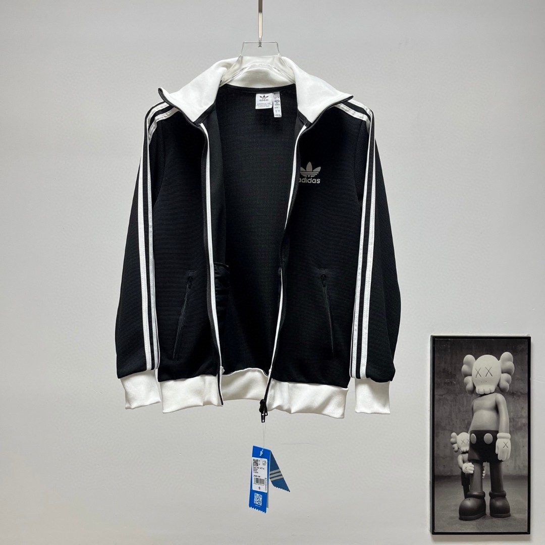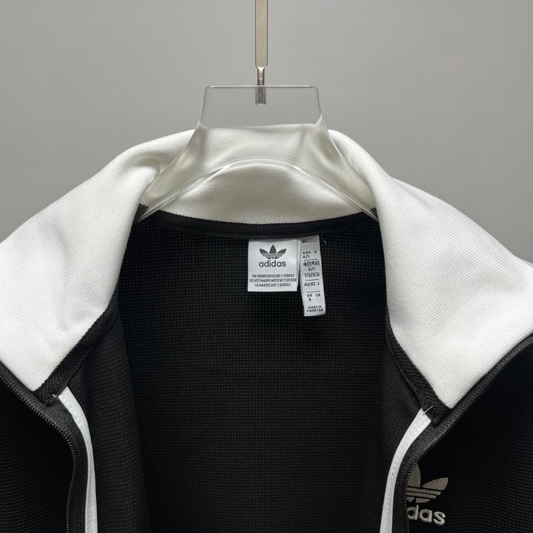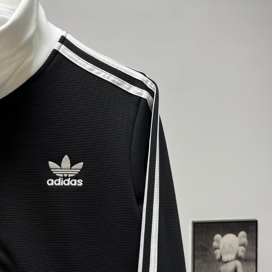 阿迪达斯三叶草拼色立领情侣拉链外套