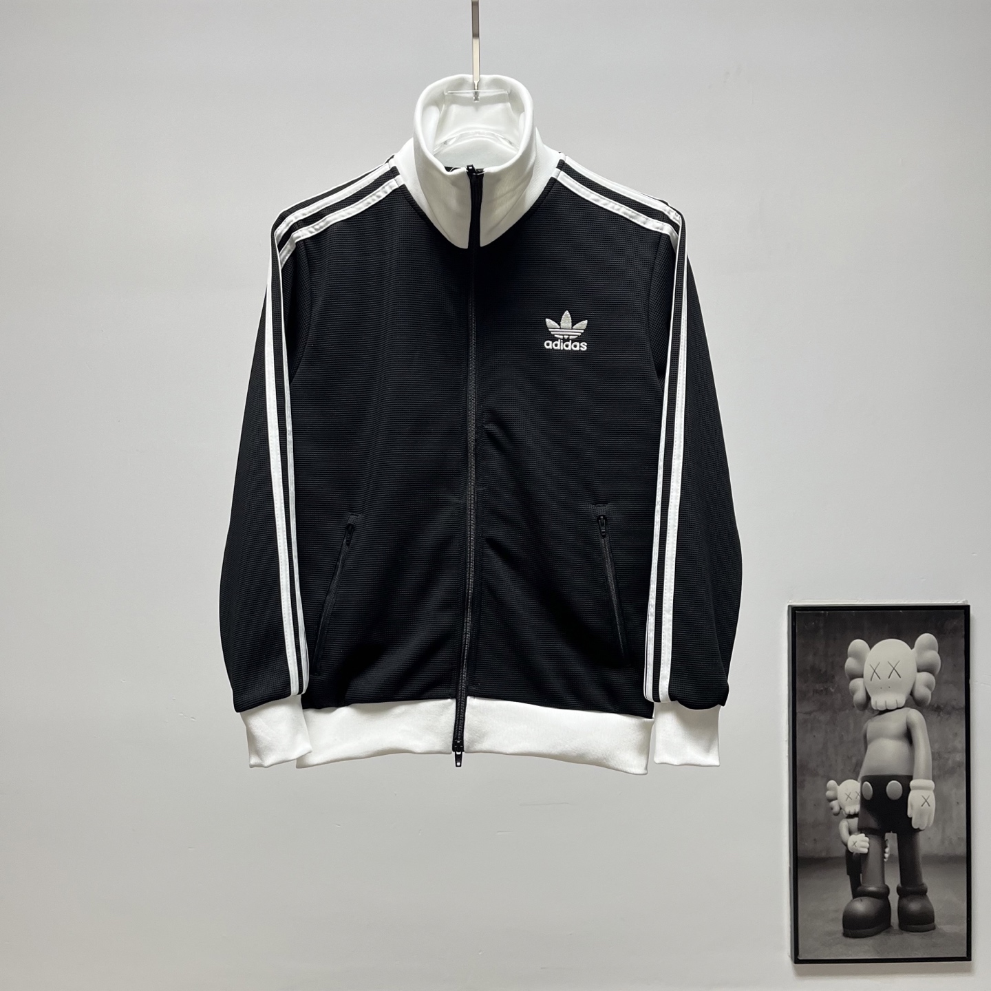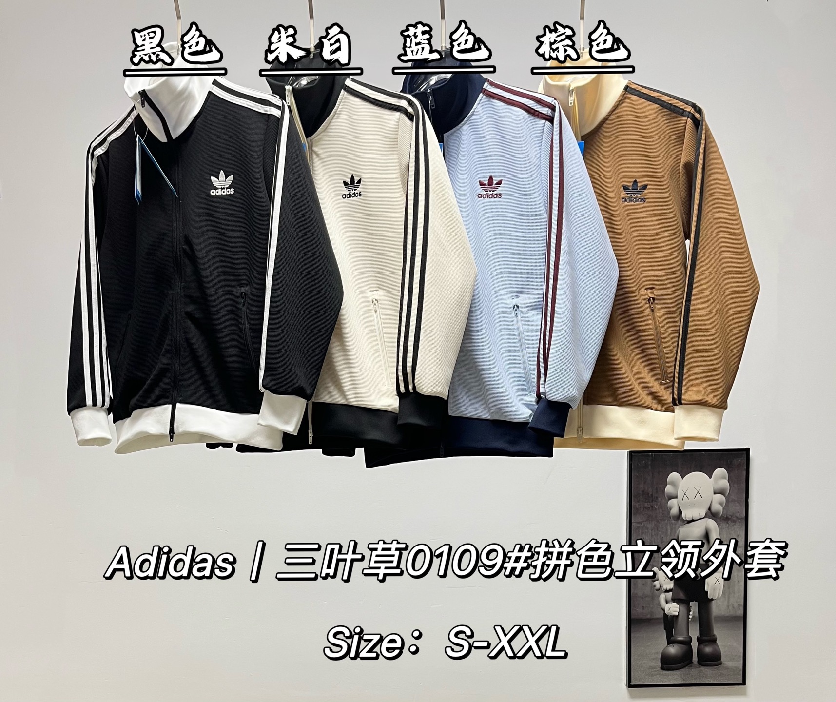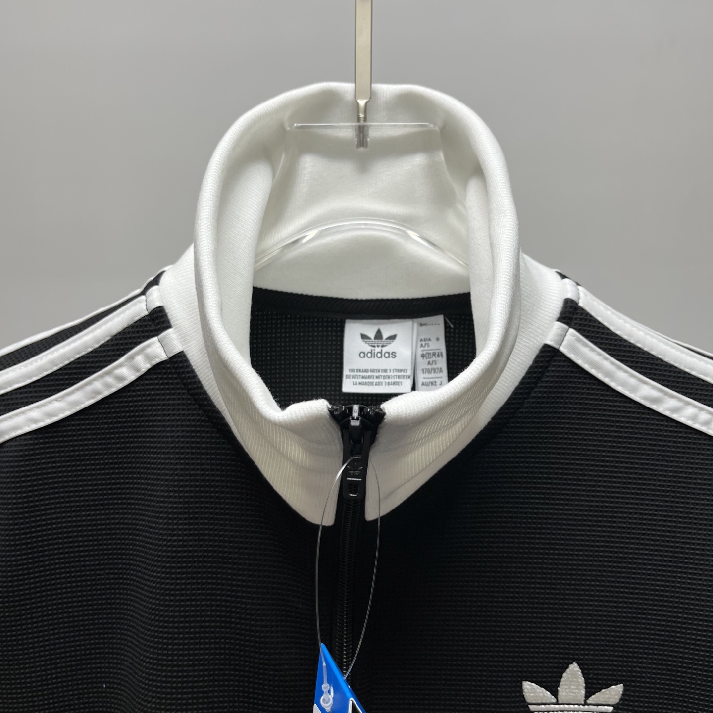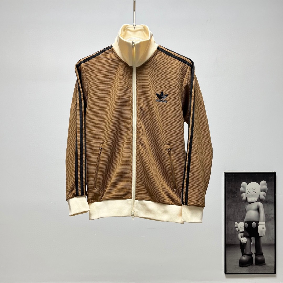 阿迪达斯三叶草拼色立领情侣拉链外套