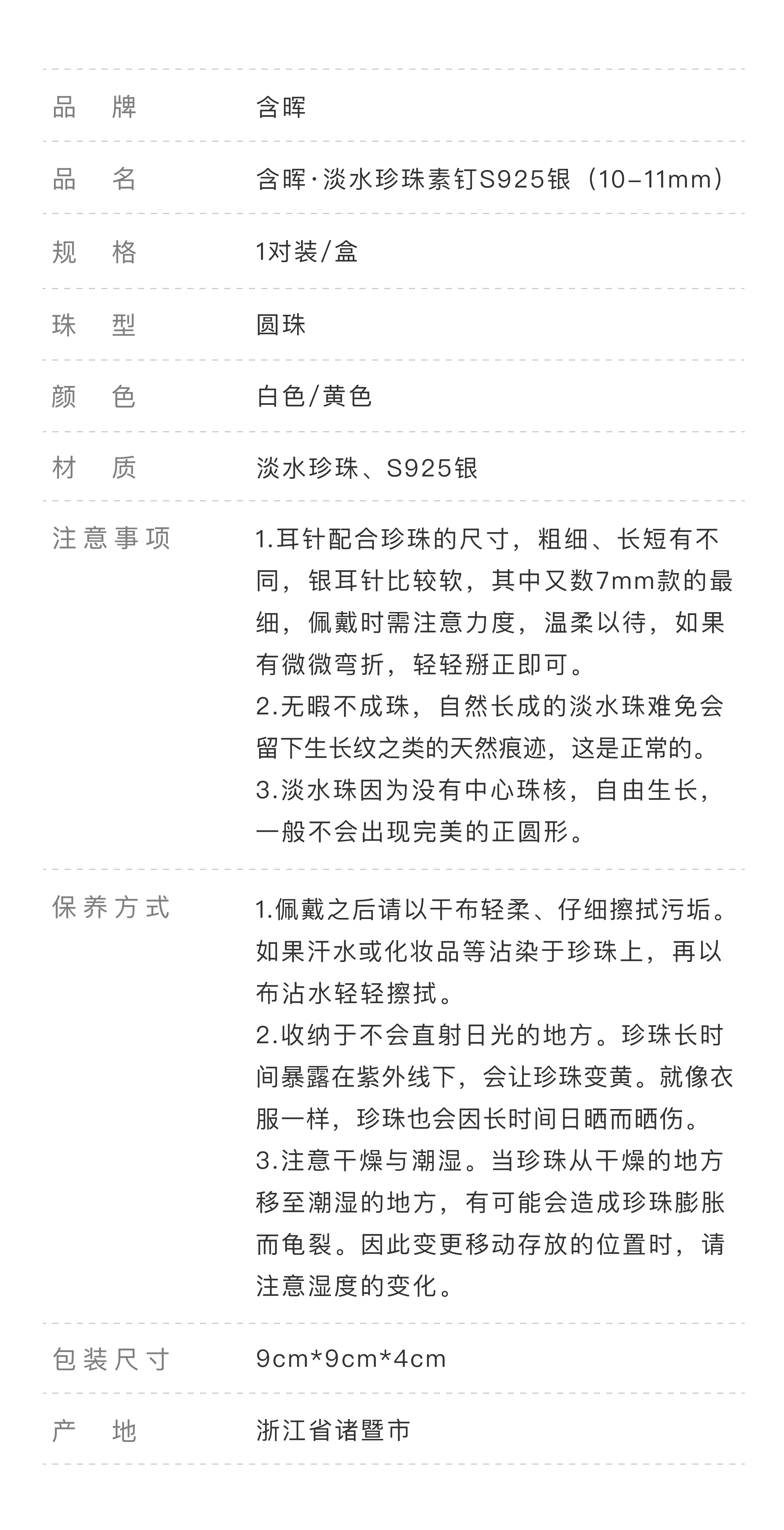 含晖·淡水珍珠素钉S925银(10-11mm)白/黄