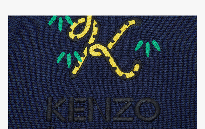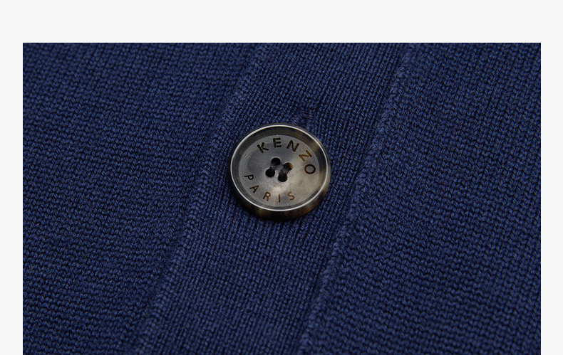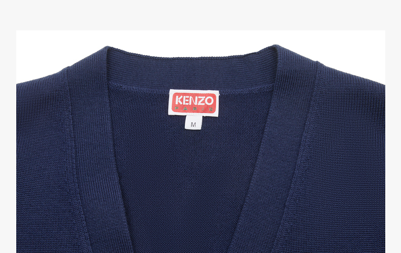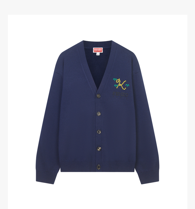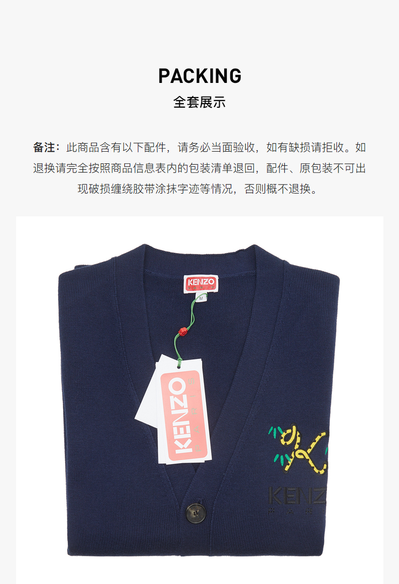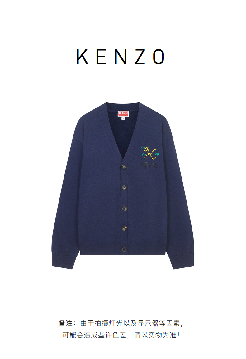 KENZO 高田贤三 男士logo虎尾刺绣V领针织开襟衫 蓝色 FC65CA3423LA
