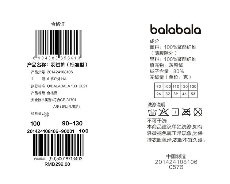 巴拉巴拉童装儿童长裤男童冬季羽绒裤工装裤保暖束脚裤子户外百搭