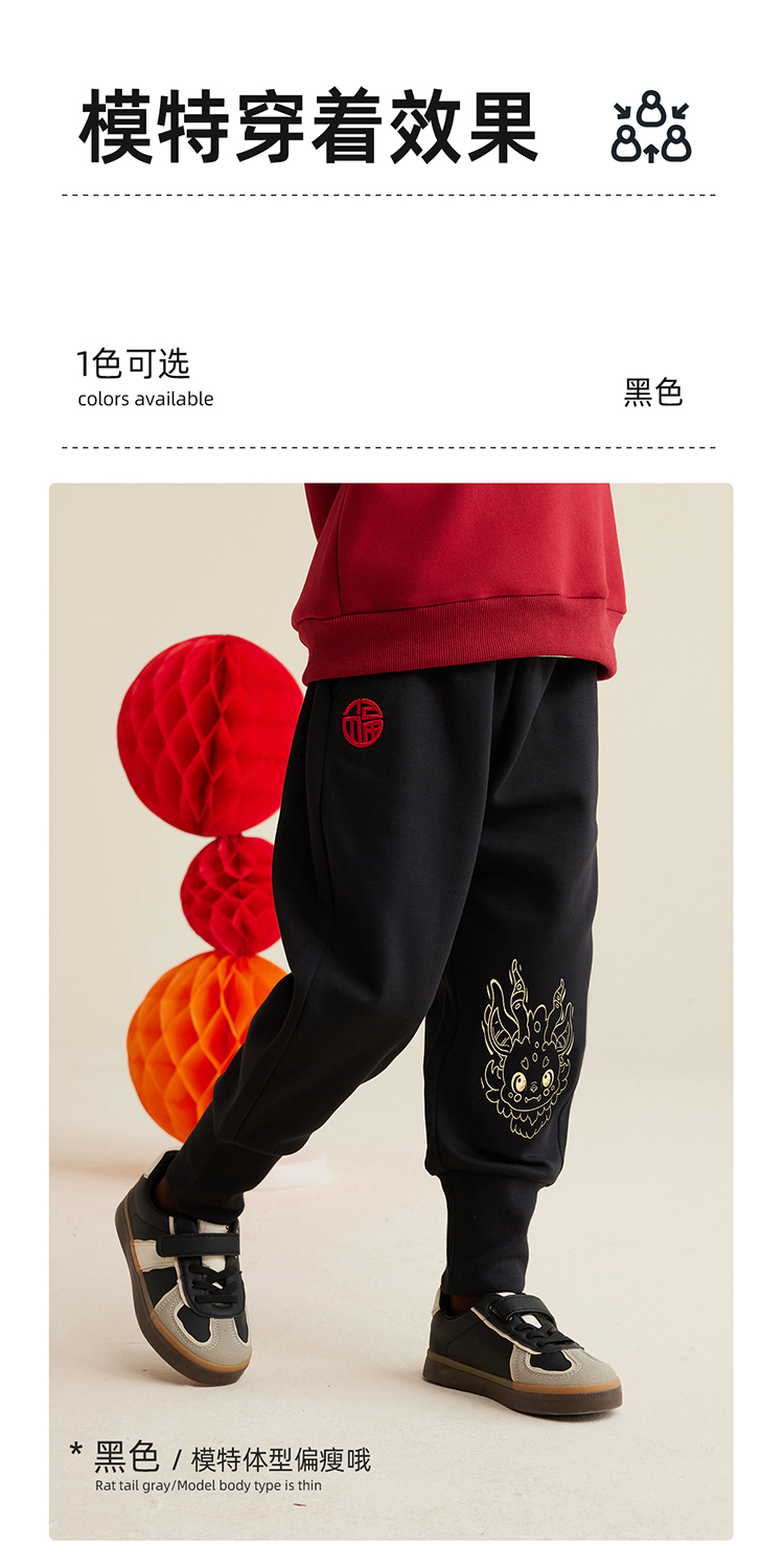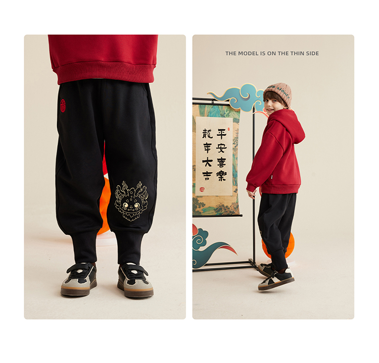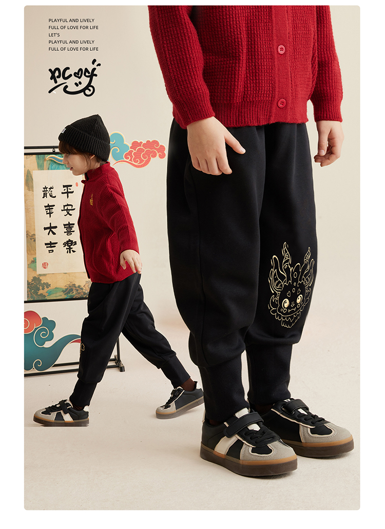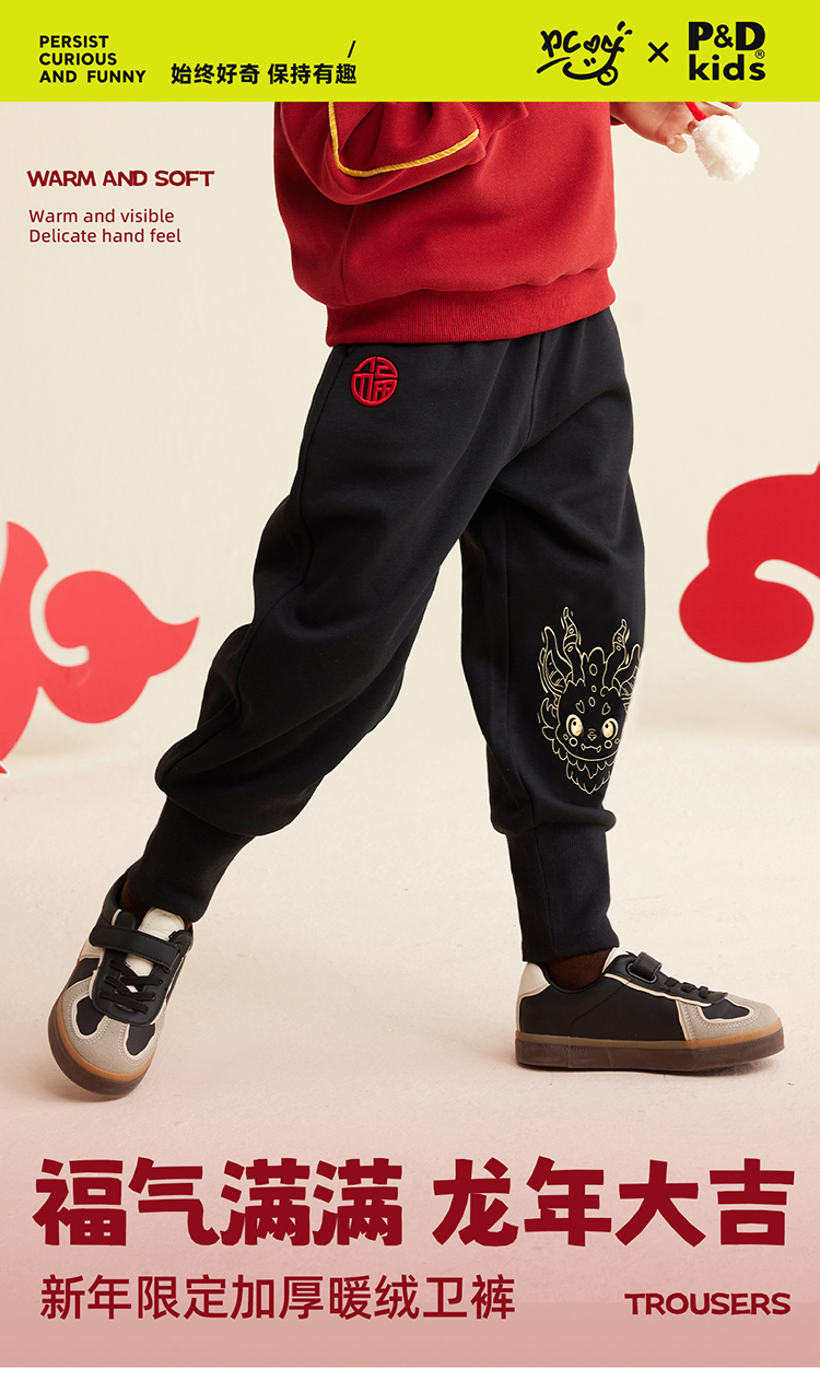 【拜年服 把祝福穿在身上】加厚暖绒国潮刺绣年服卫裤 PDK2309