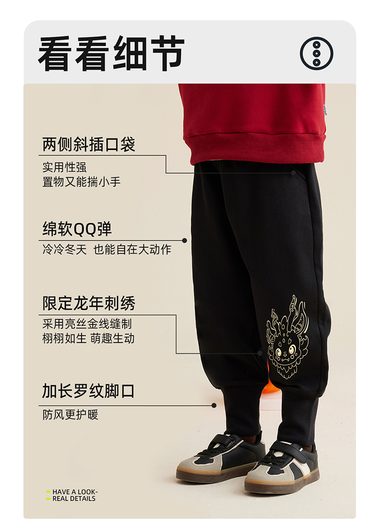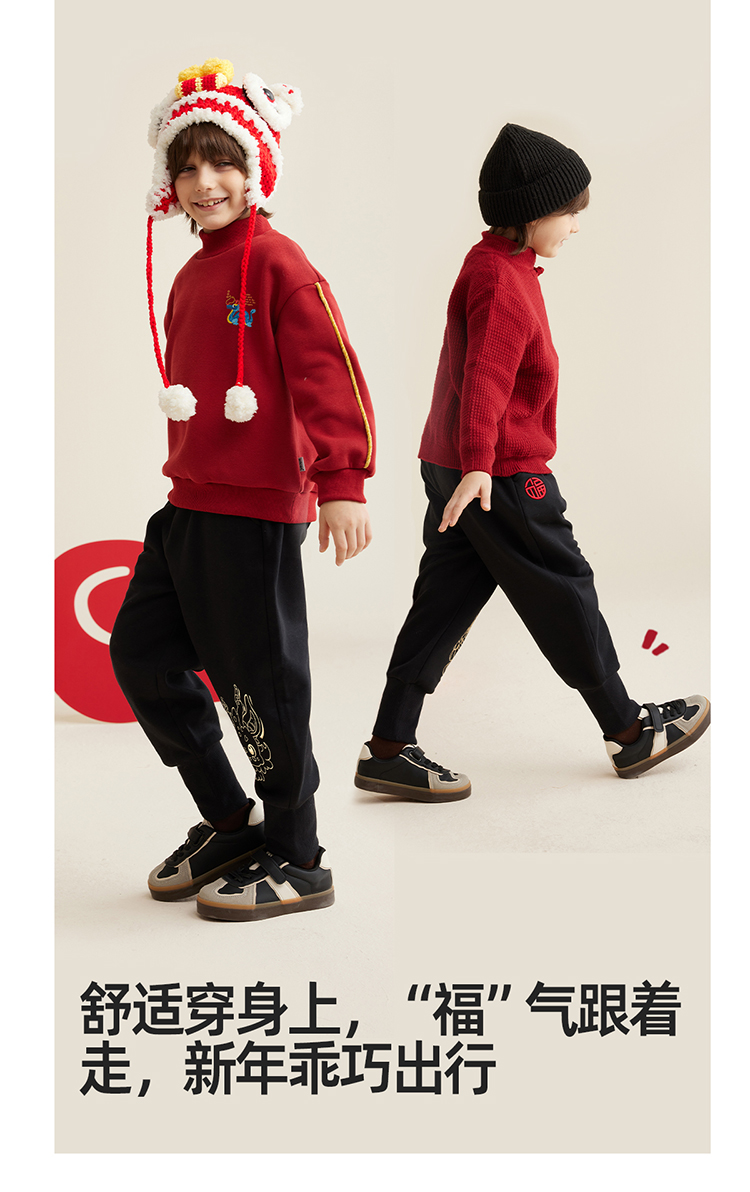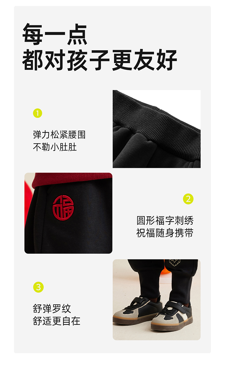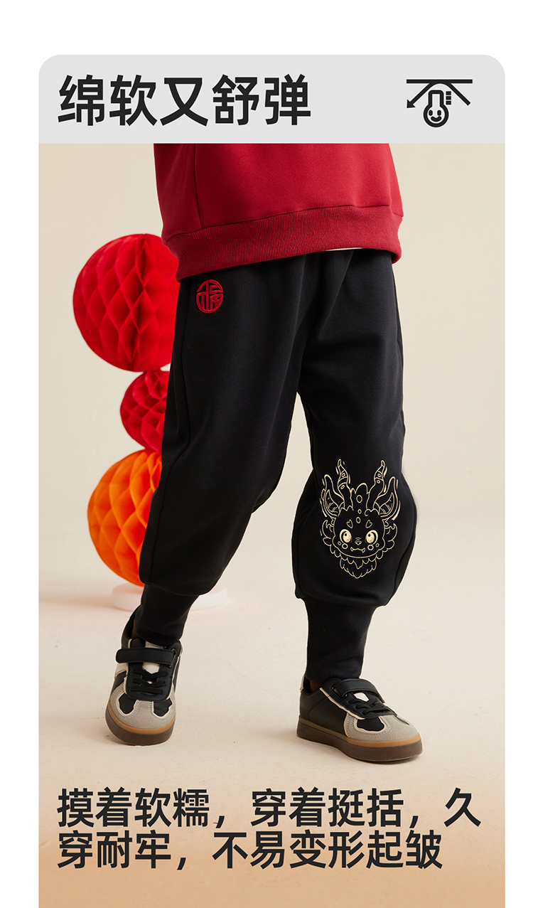【拜年服 把祝福穿在身上】加厚暖绒国潮刺绣年服卫裤 PDK2309