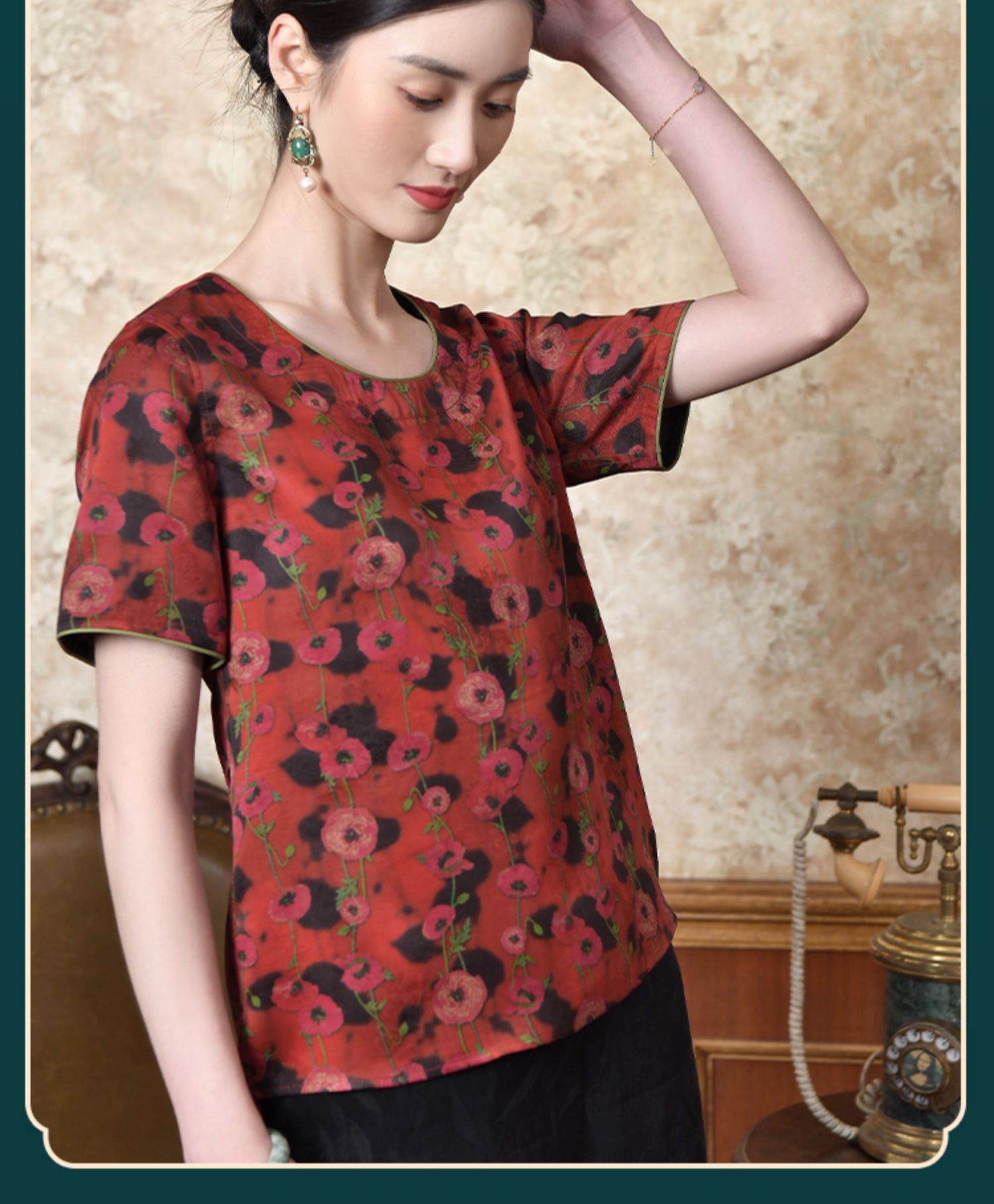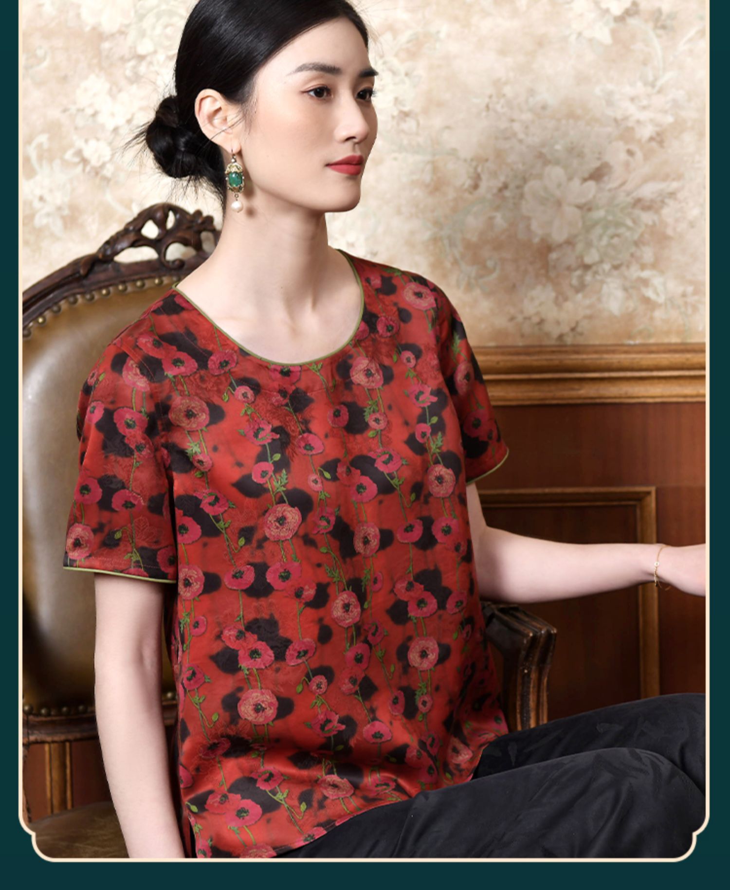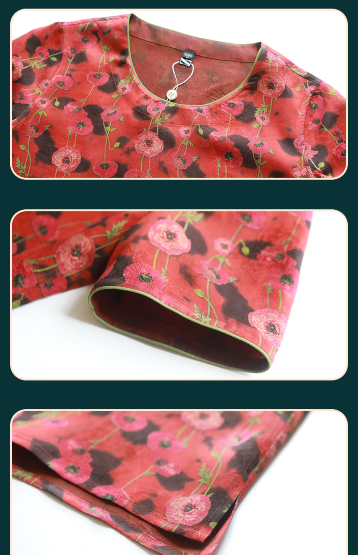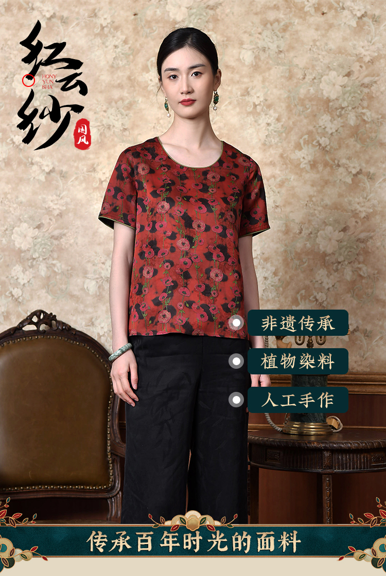 佐尔美2022夏季新款 红云纱真丝桑蚕丝桑波缎提花衬衫女E22CS40