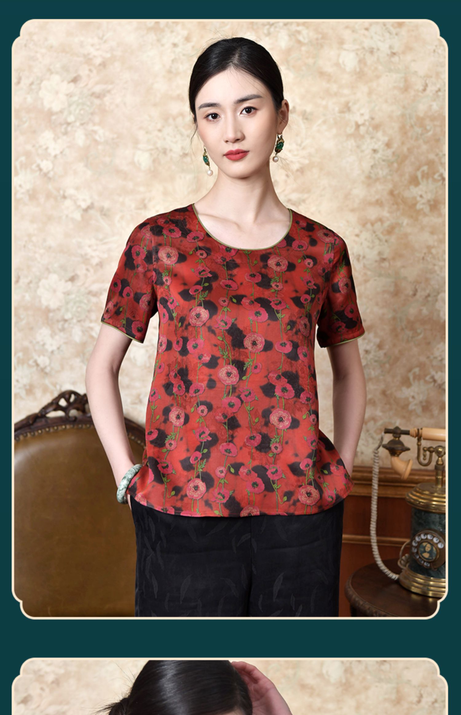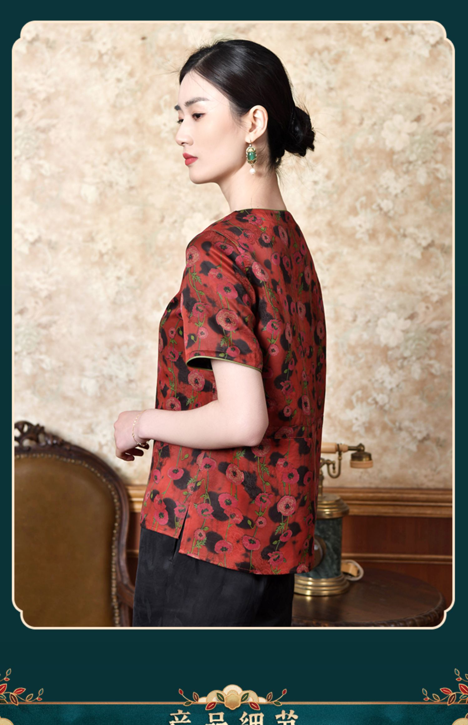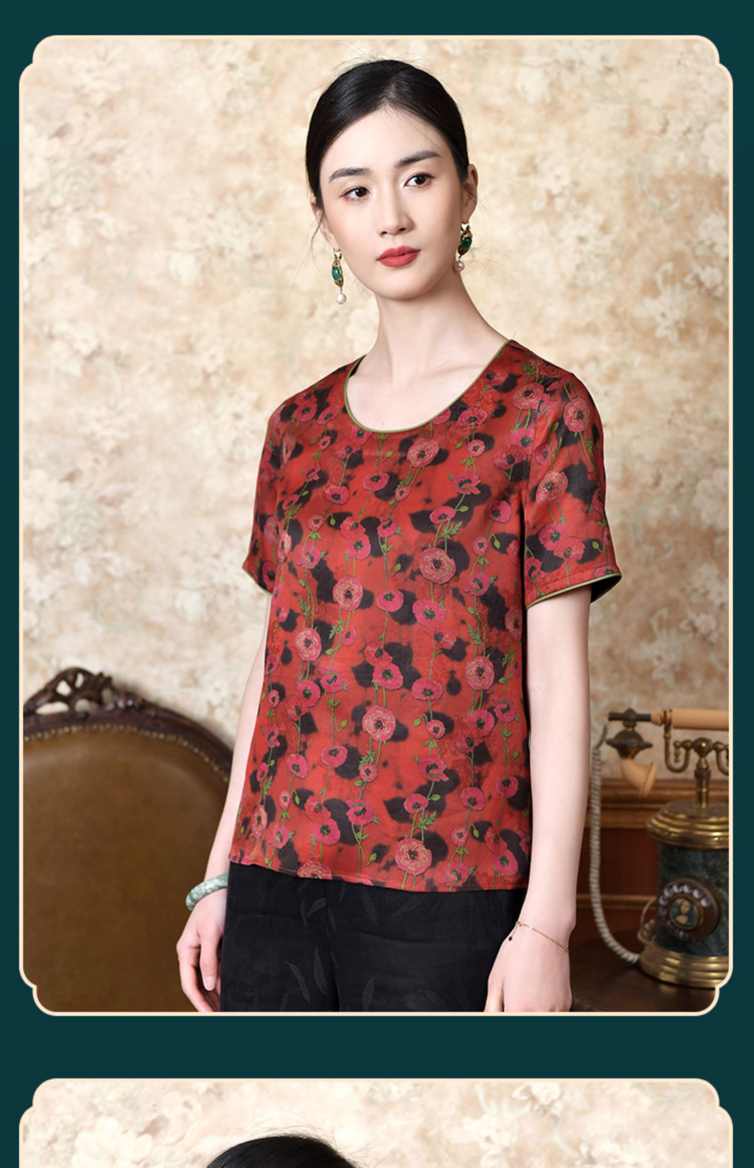 佐尔美2022夏季新款 红云纱真丝桑蚕丝桑波缎提花衬衫女E22CS40