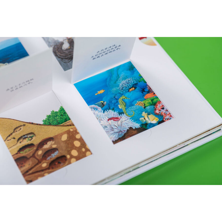 书中极尽了洞洞、插卡、推拉页、拨盘页、翻翻页、超长拉页、透明胶片等多种工艺,独具匠心地将知识的呈现与特殊工艺巧妙结合,为孩子精心地设计了不同寻常的获得知识的体验,在阅读中实现了互动探索式学习,如同一堂充满启发的科学课。