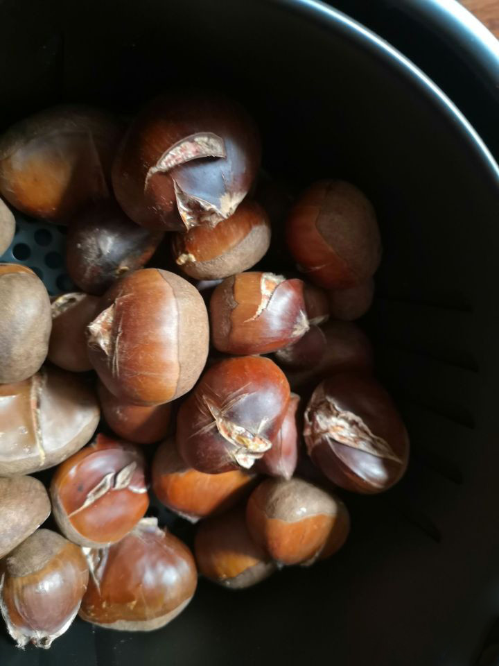 烤栗子。剪开口直接放进去烤,栗子本身很甜,所以不用放糖,嫌弃干的可以滴点蜂蜜。刚出锅热乎乎特别好吃。