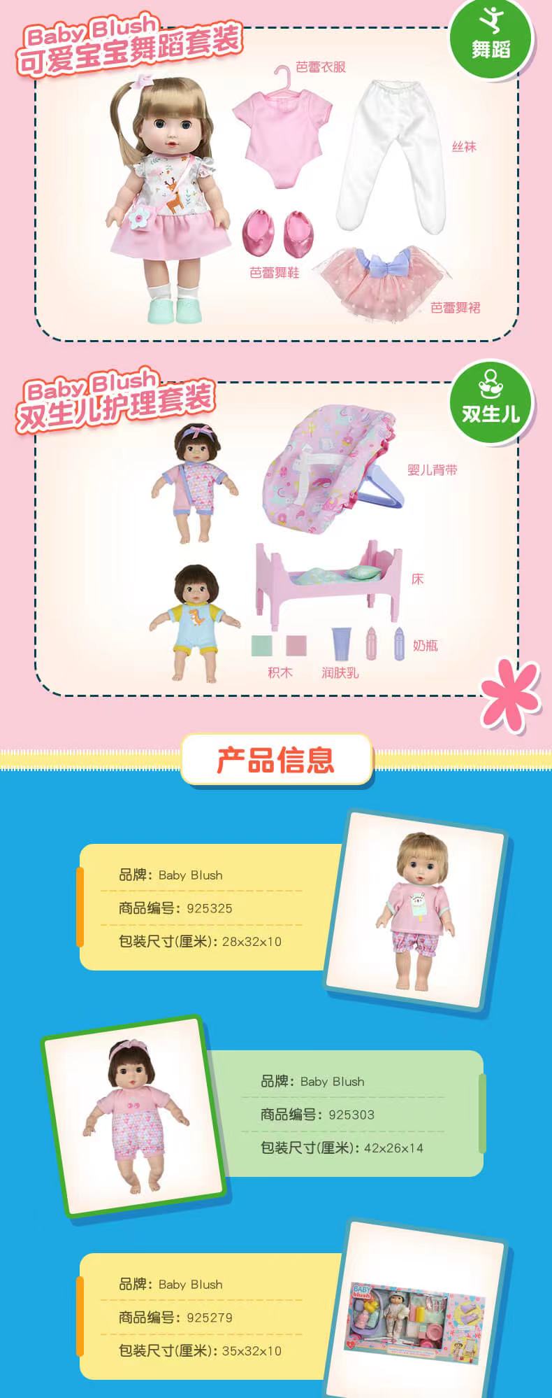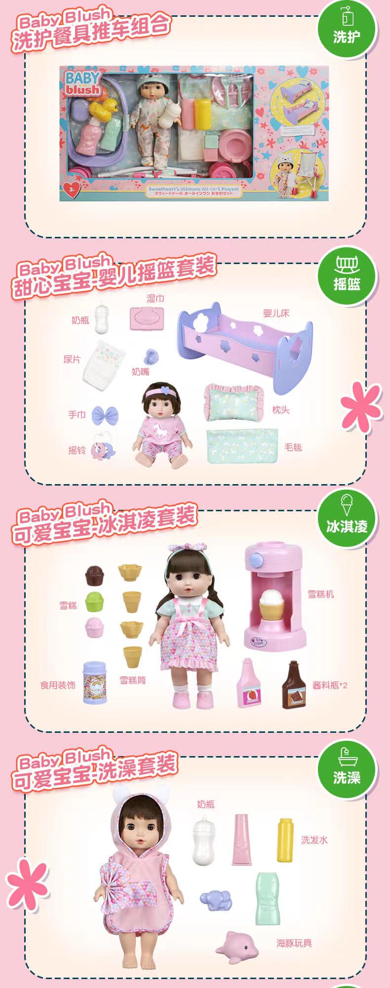 Baby Blush粉小贝 12寸可爱宝宝洗护餐具推车组合 925281
