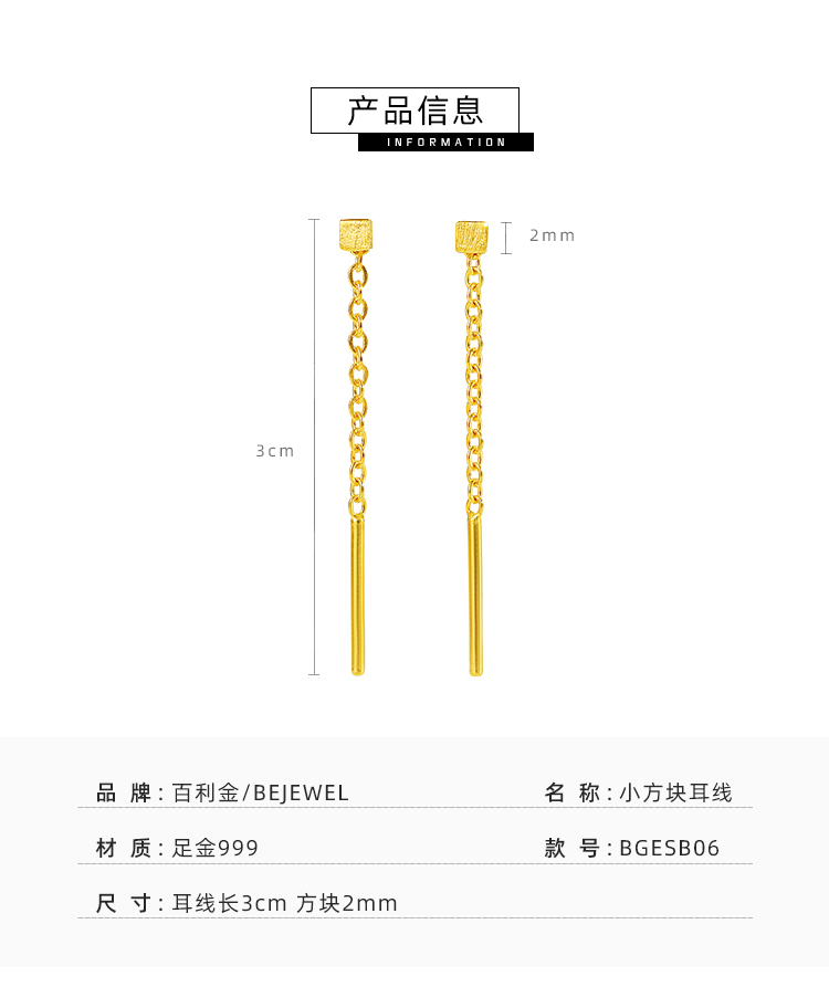 百利金-小方块耳线 0.83g 一对【包邮直发】