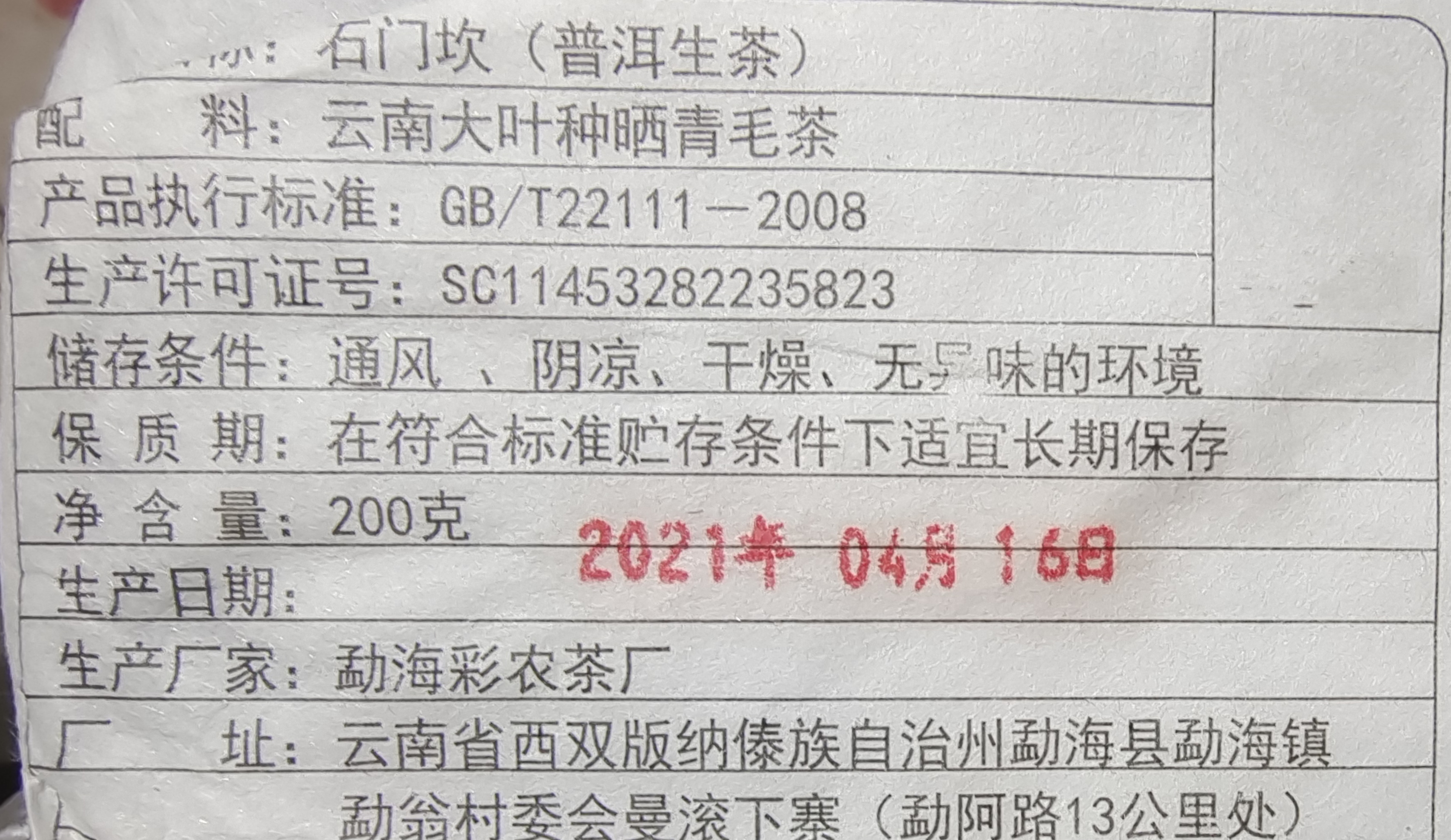 彩农茶|麻黑石门坎2021头春古树青饼