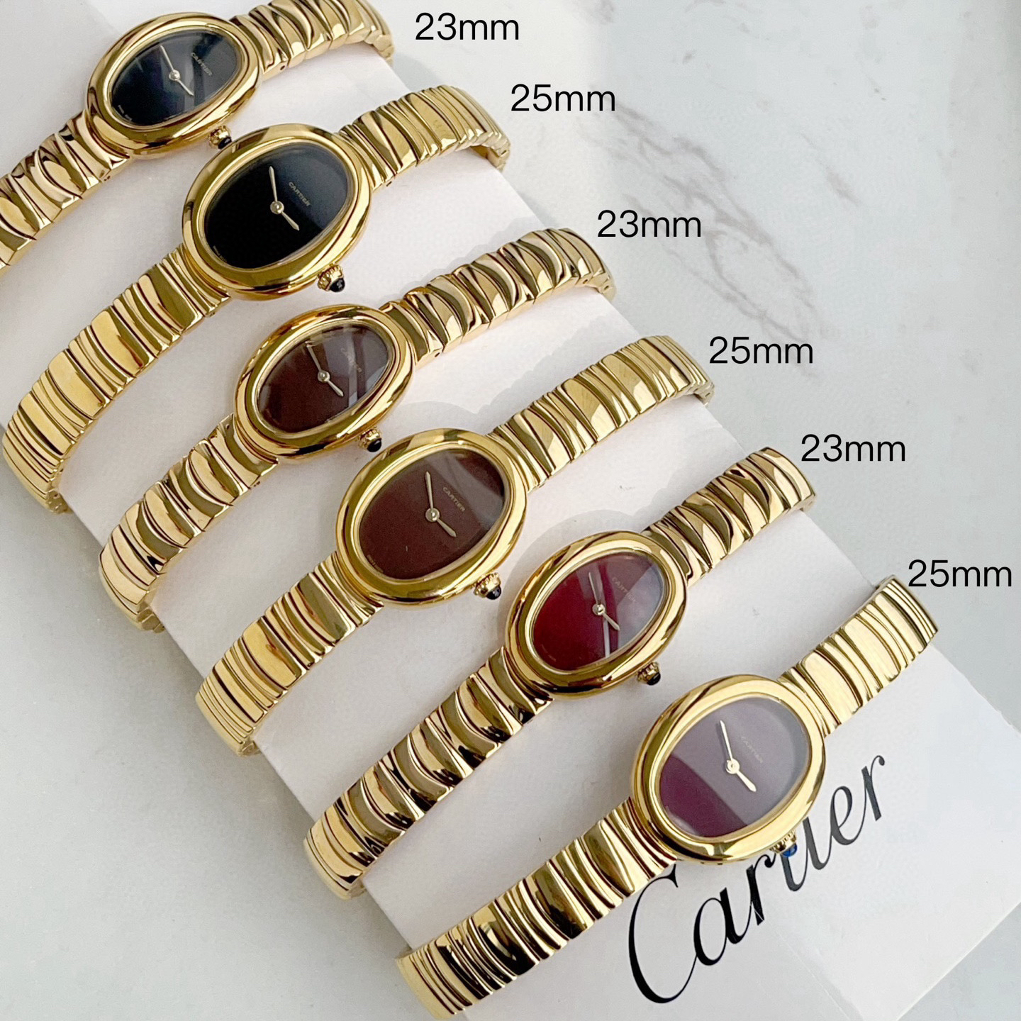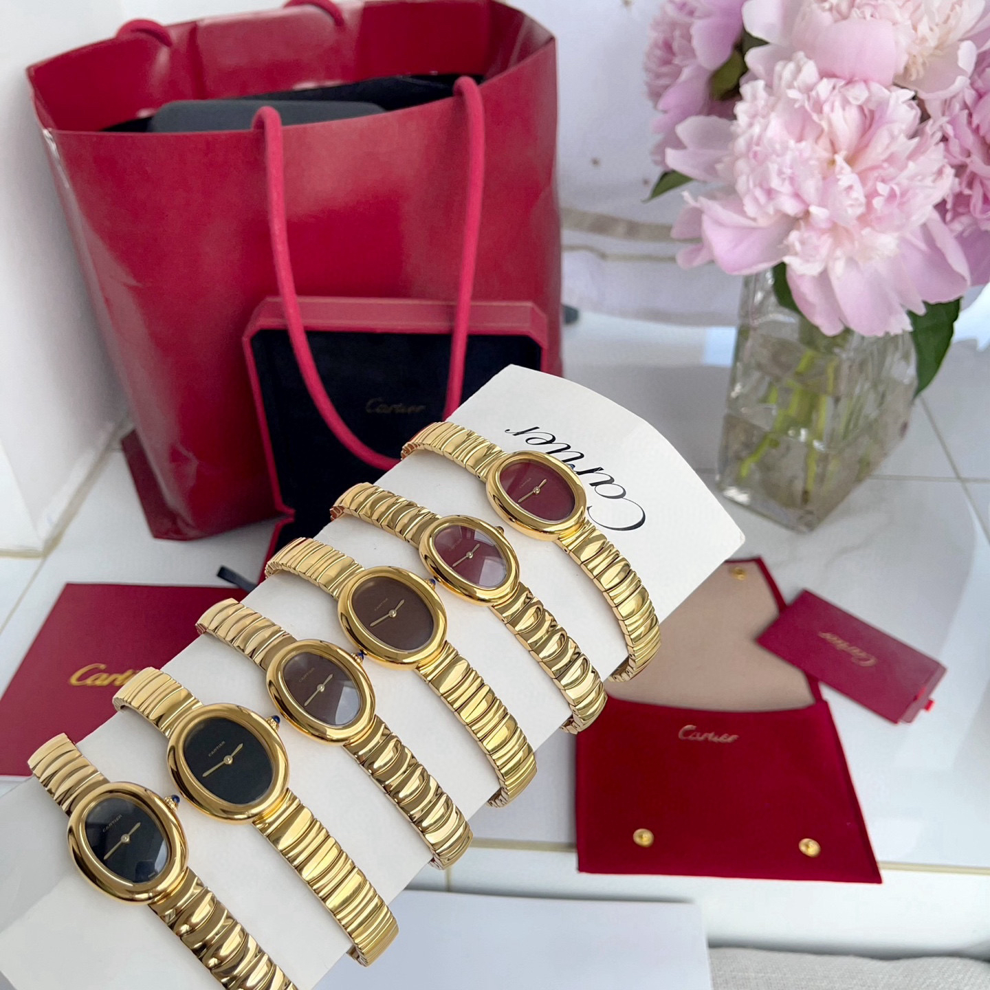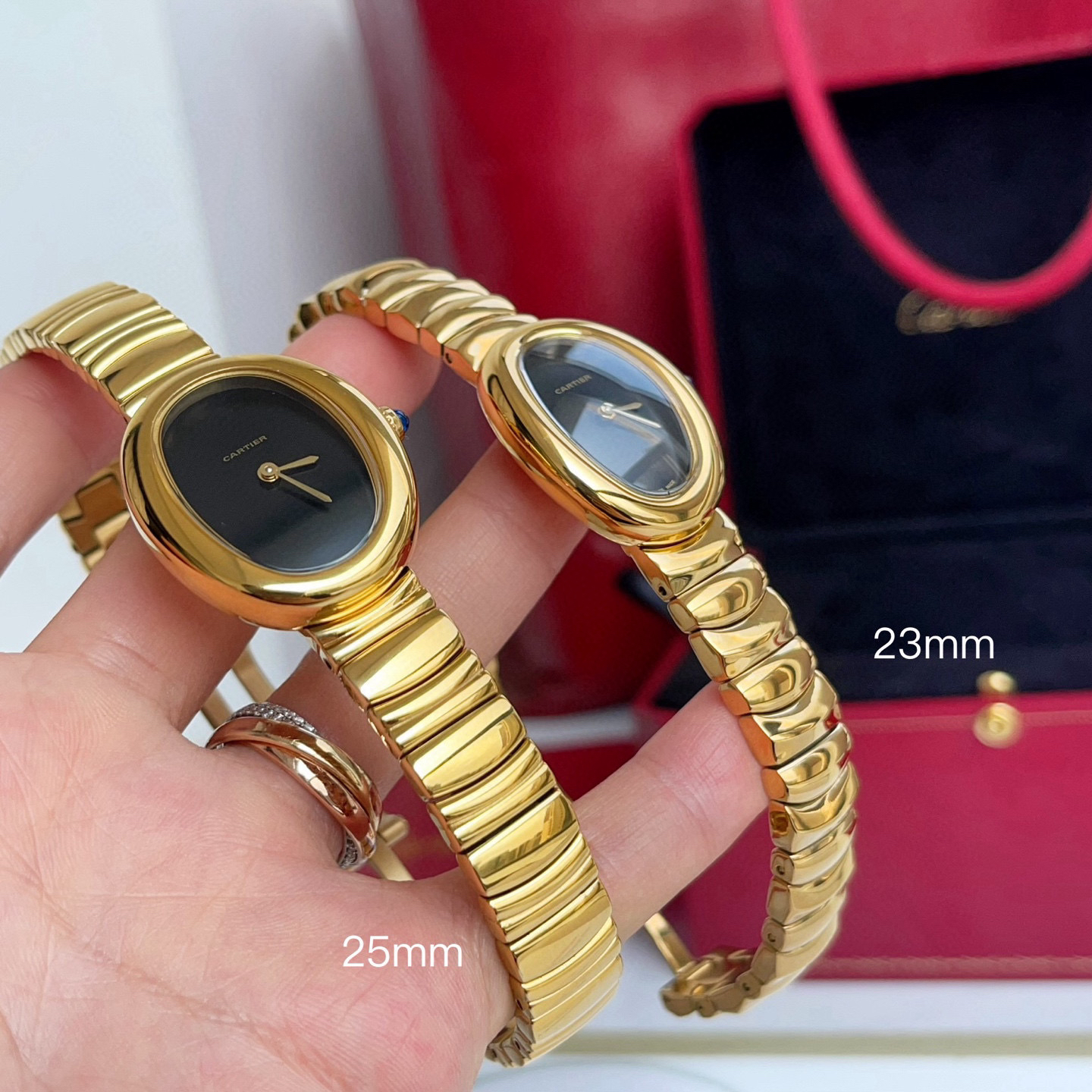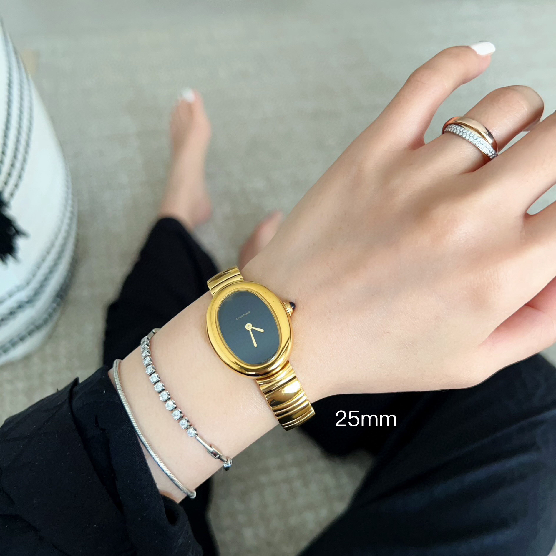 卡地亚浴缸Baignoire1920手镯系列,进口瑞士石英机芯,316L精钢表壳表扣,剑型黄金色指针,标志性金色logo印记,弧形水晶镜面,极简黑色表盘,展现复古单色美学❕❕❕